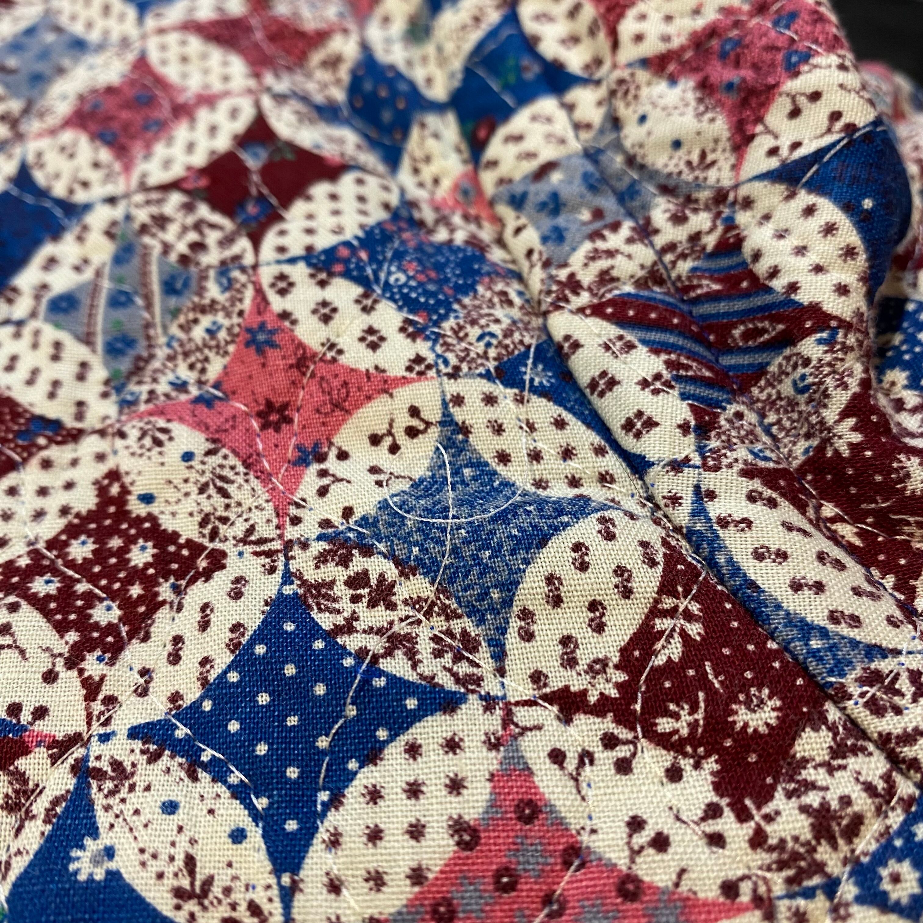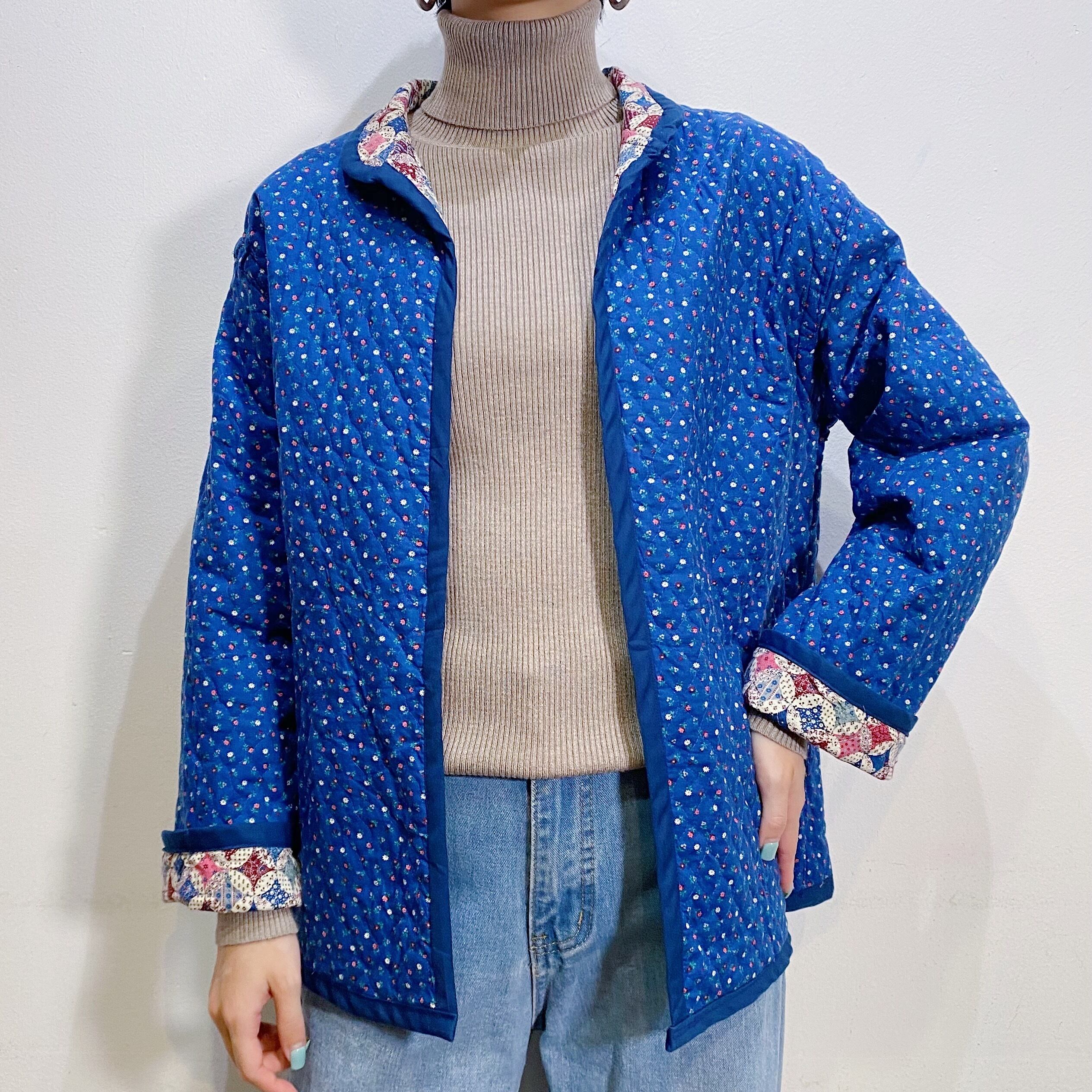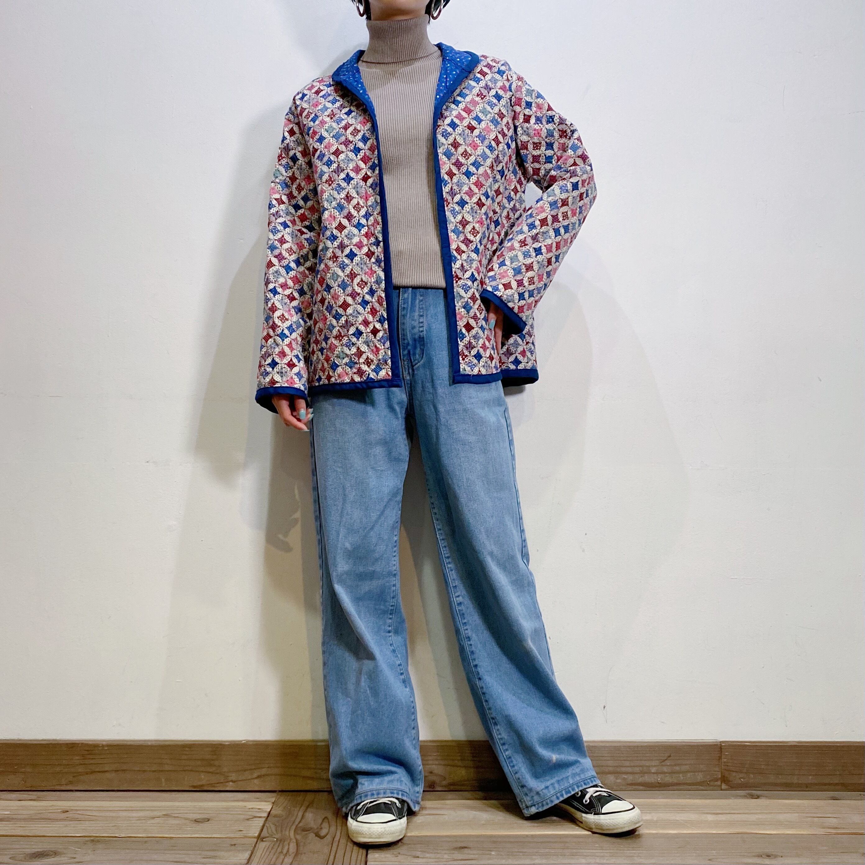 タイルのようなテキスタイルが可愛い、キルティングジャケットです。