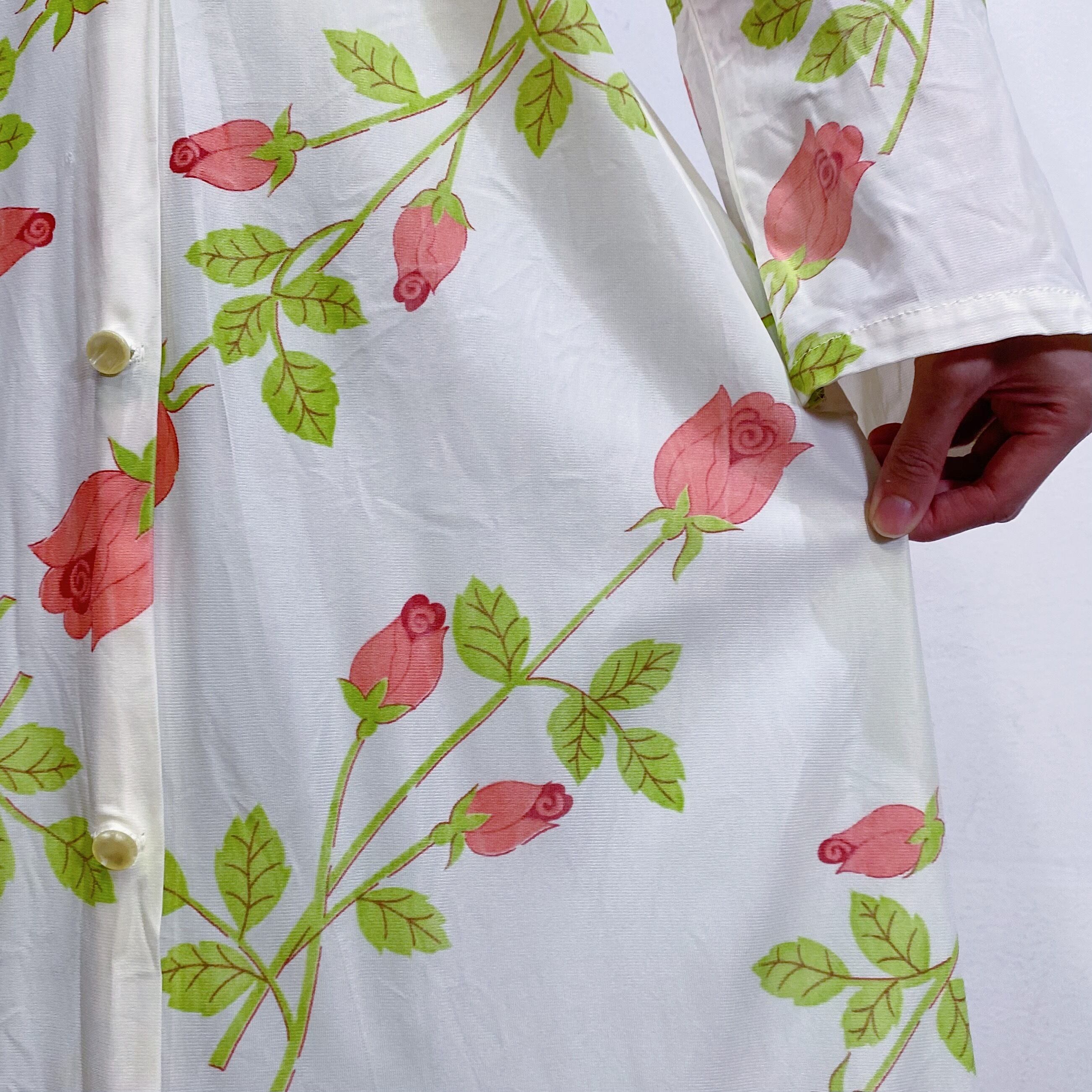 ホワイトベースにバラのプリントが可愛い、70年代のワンピースです。