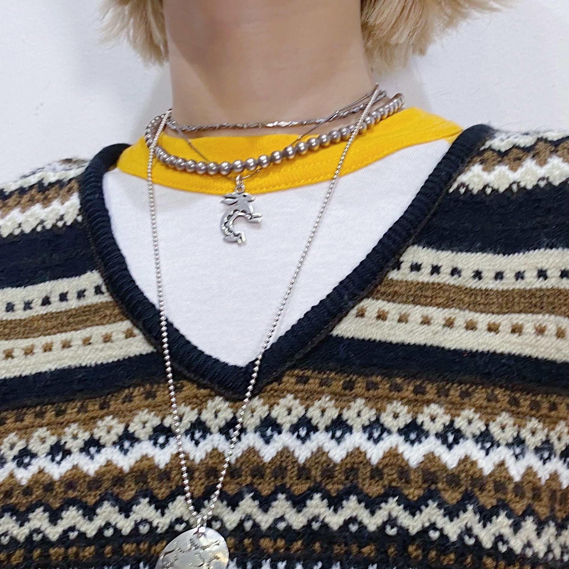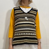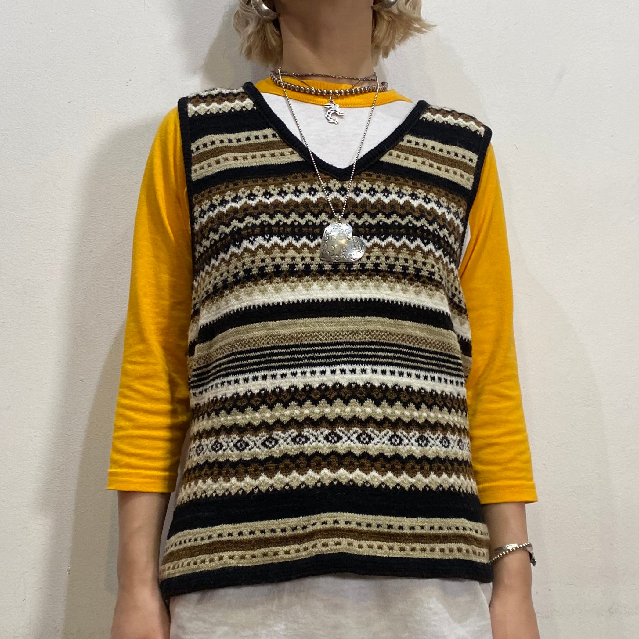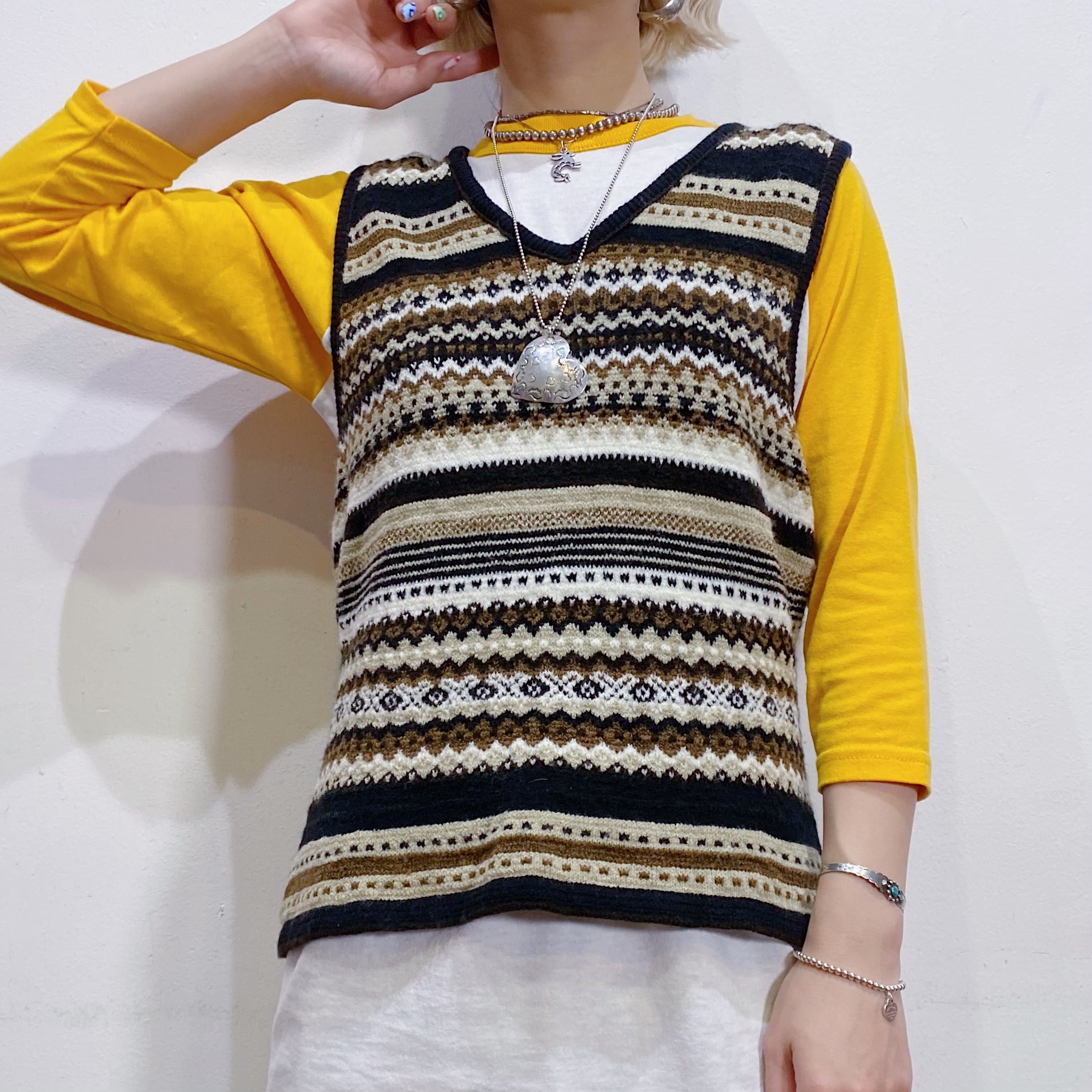 ブラウン・ブラック・ホワイトのモノトーンカラーのボーダー柄が可愛い、80年代のニットベストです。