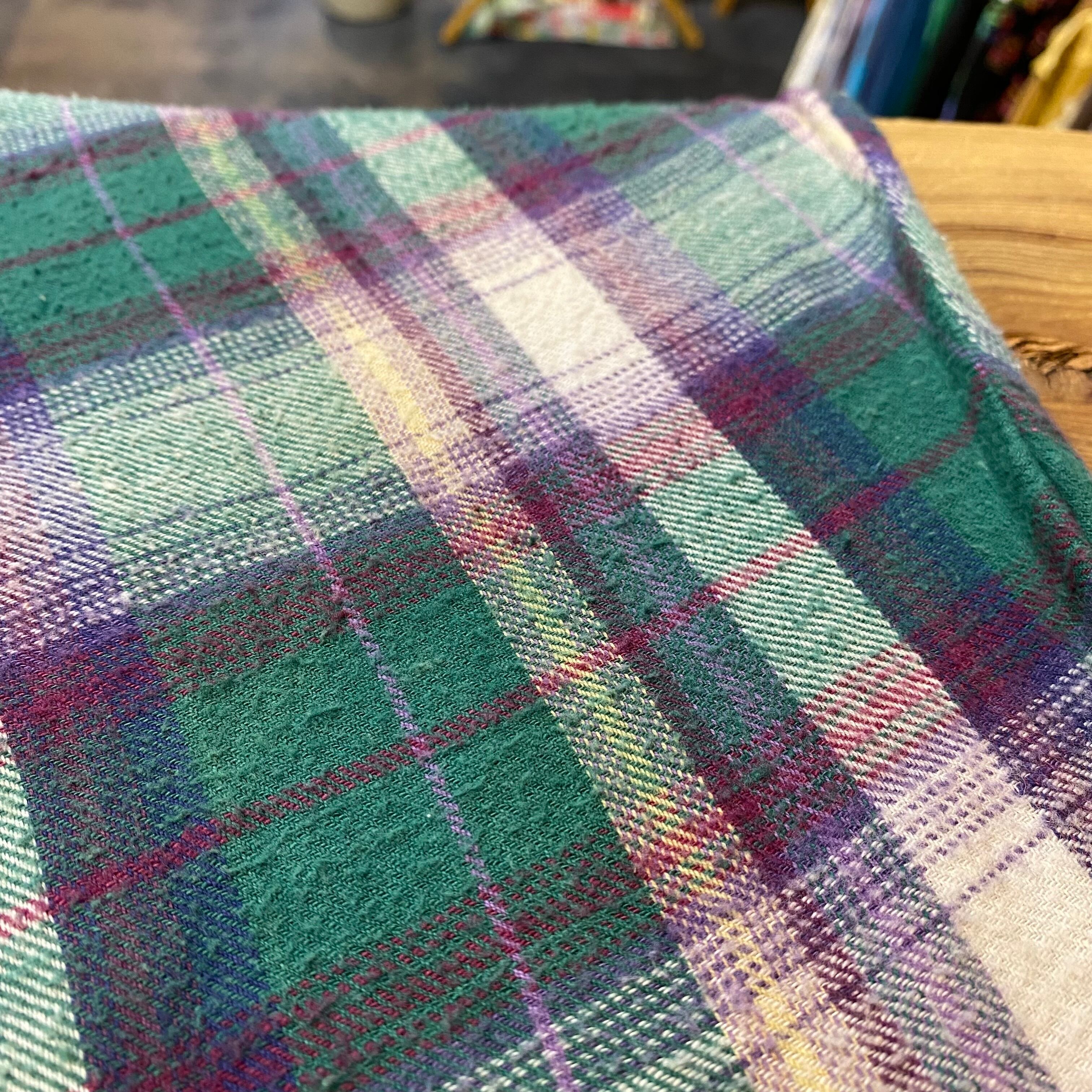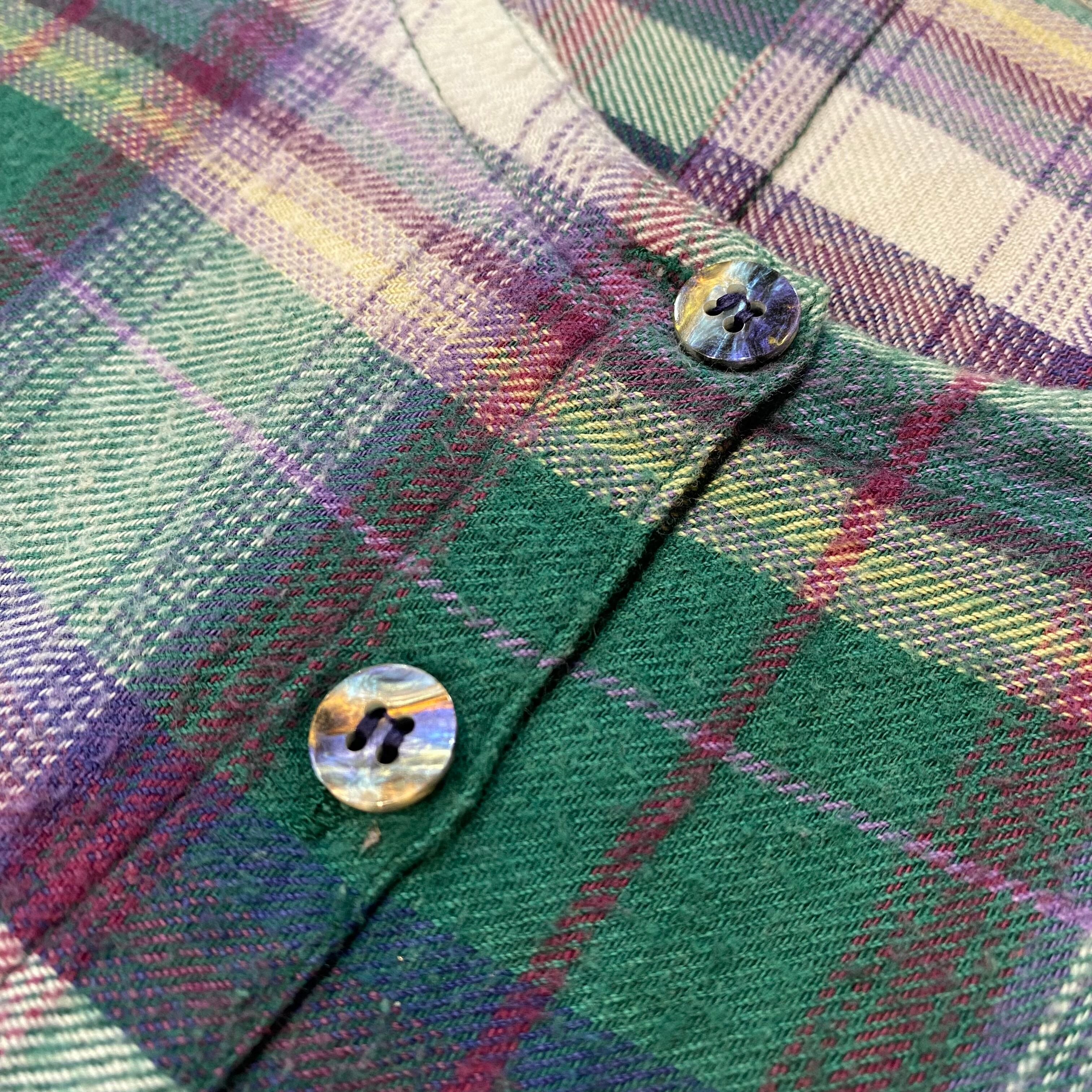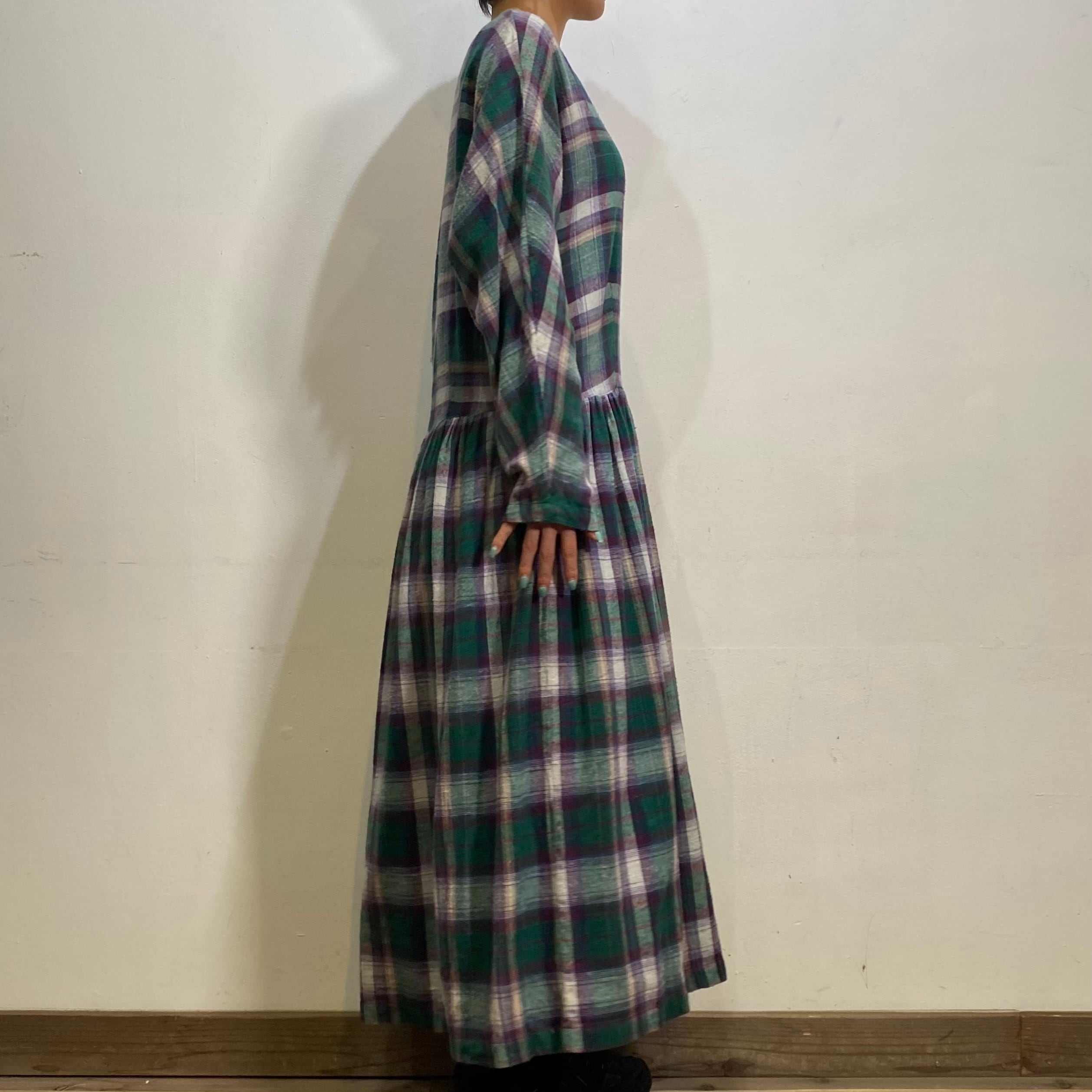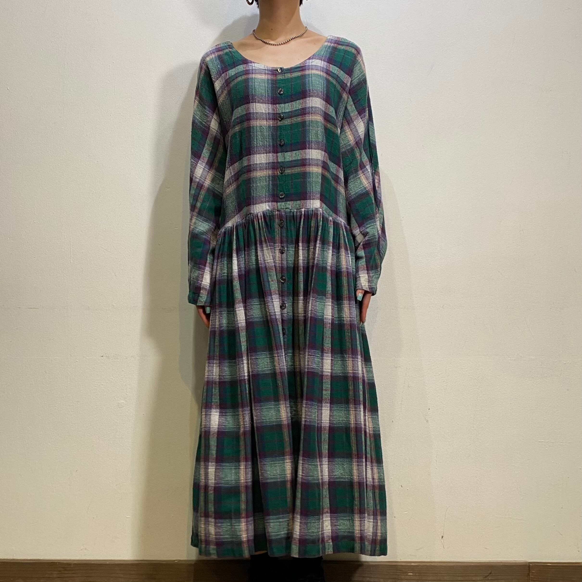 グリーン×パープルのチェックが可愛い、長袖ワンピースです。