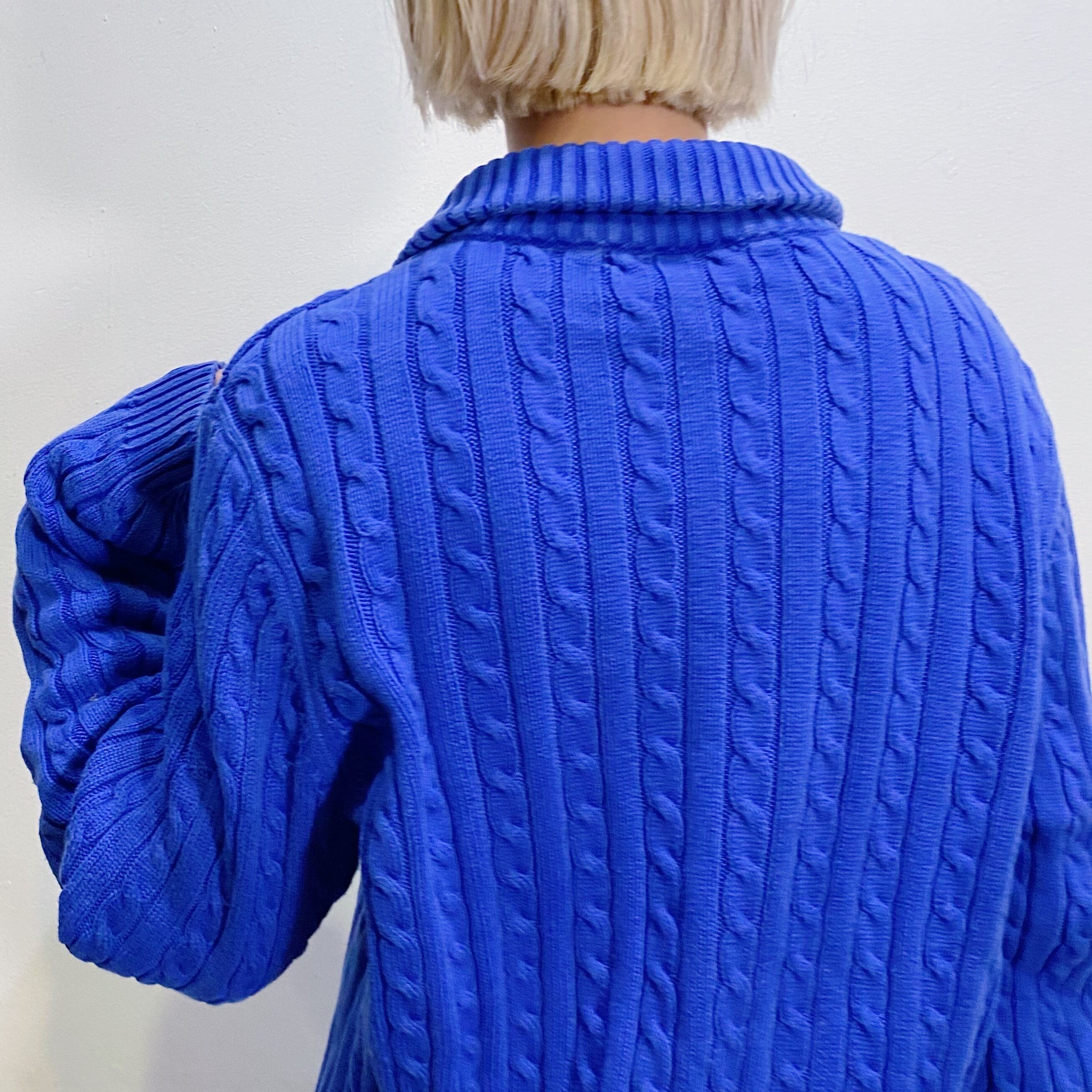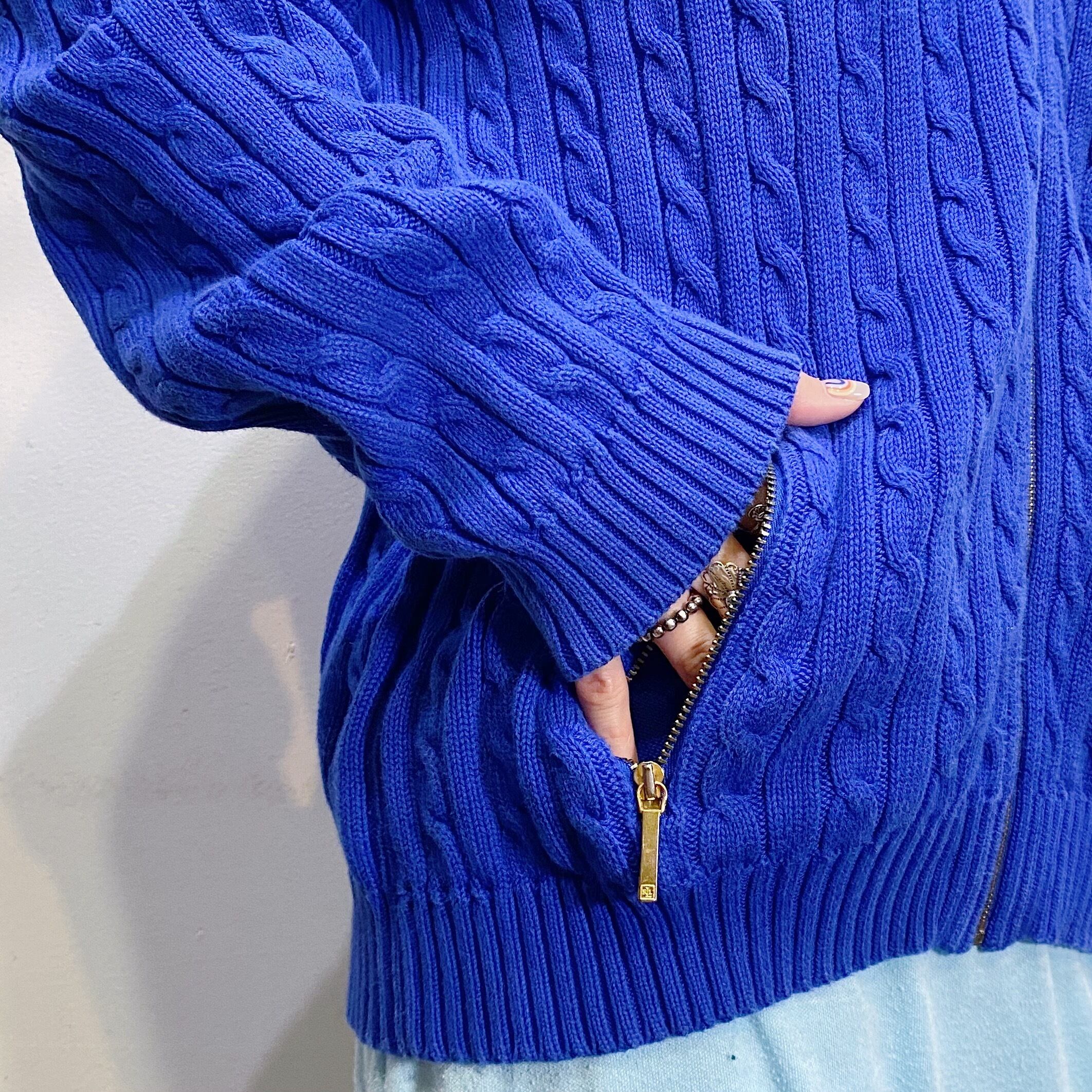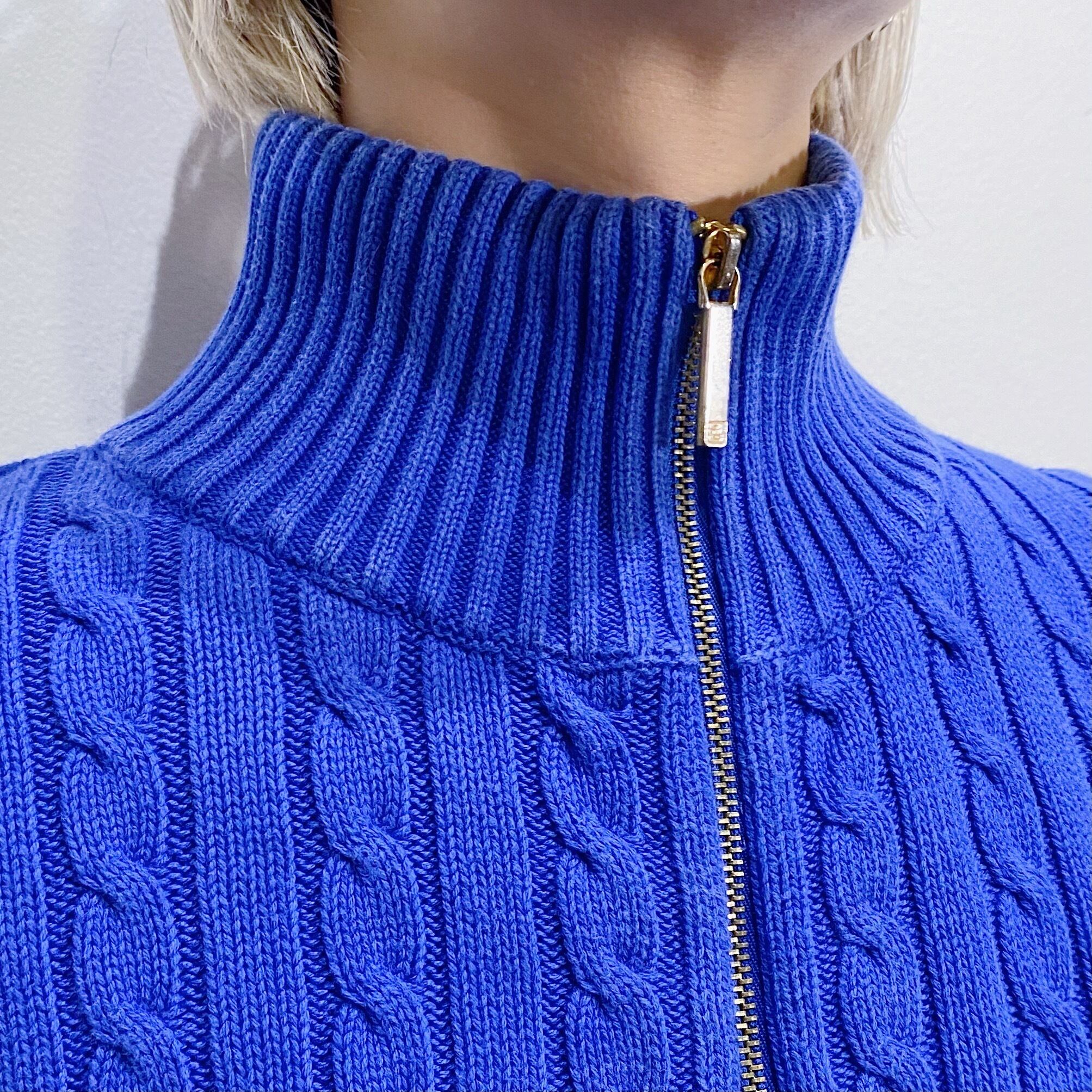 鮮やかなブルーがパッと目を惹く、ラルフローレンのジップアップセーターです。