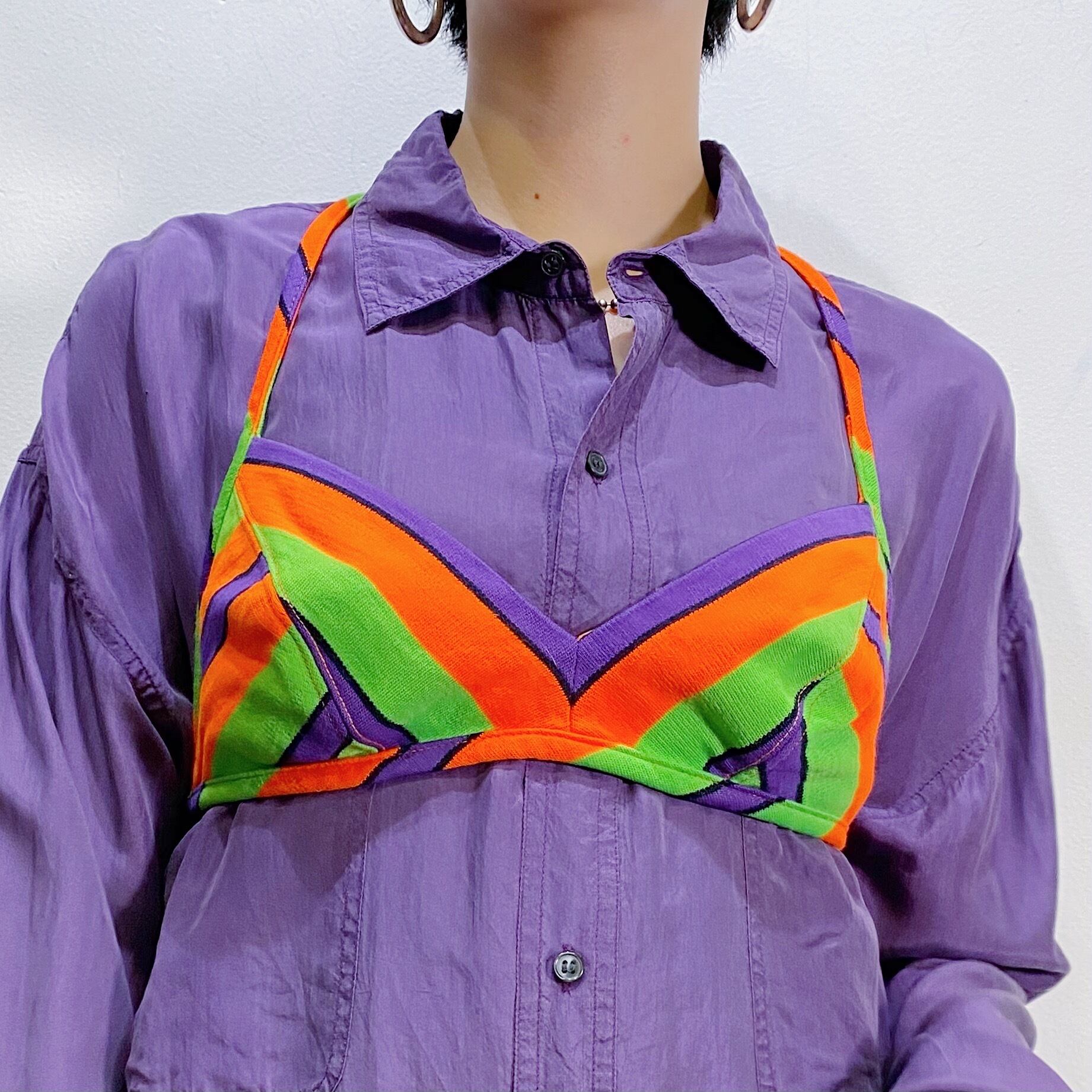 70s purple and orange stripe bra top