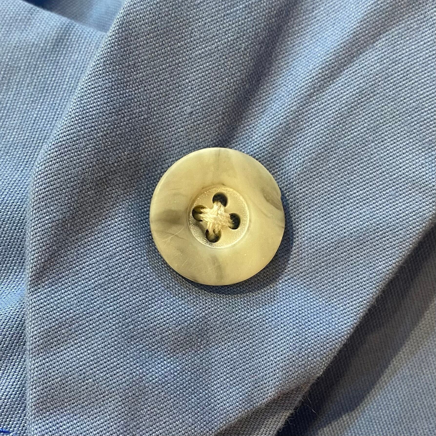 サックスブルーの色合いもコーデに取り入れやすく、柄アイテムとも相性良く着られるのが嬉しいですね。