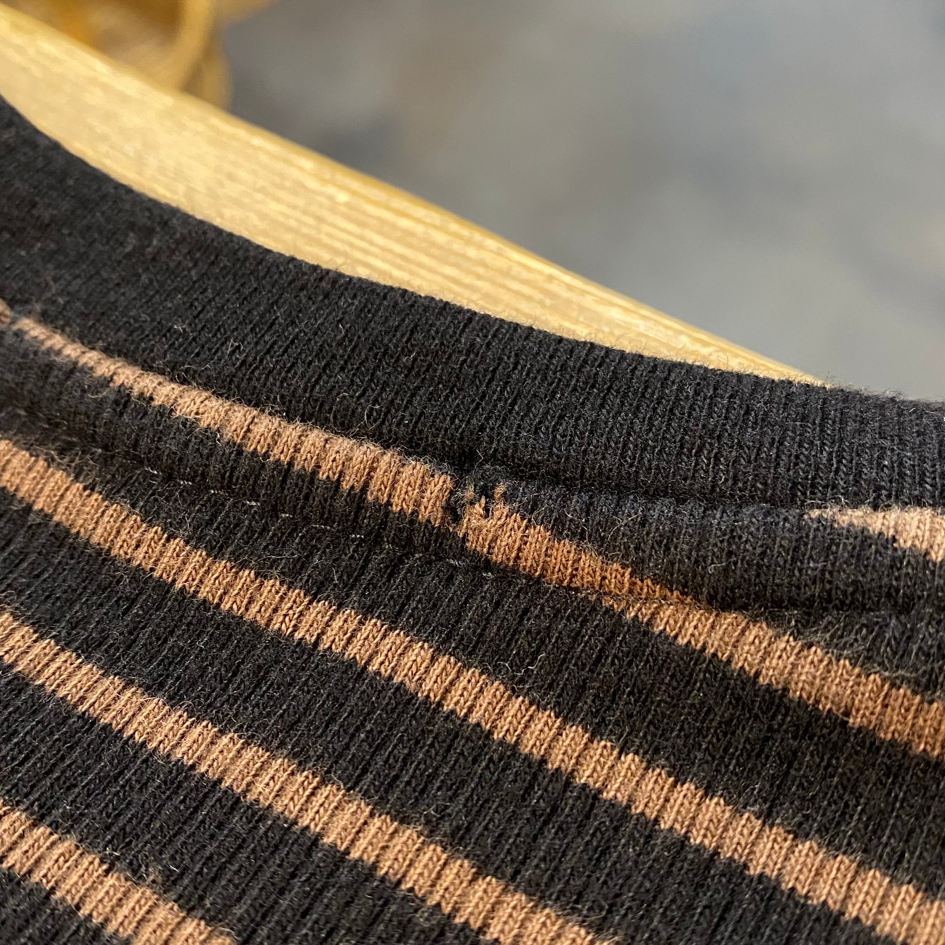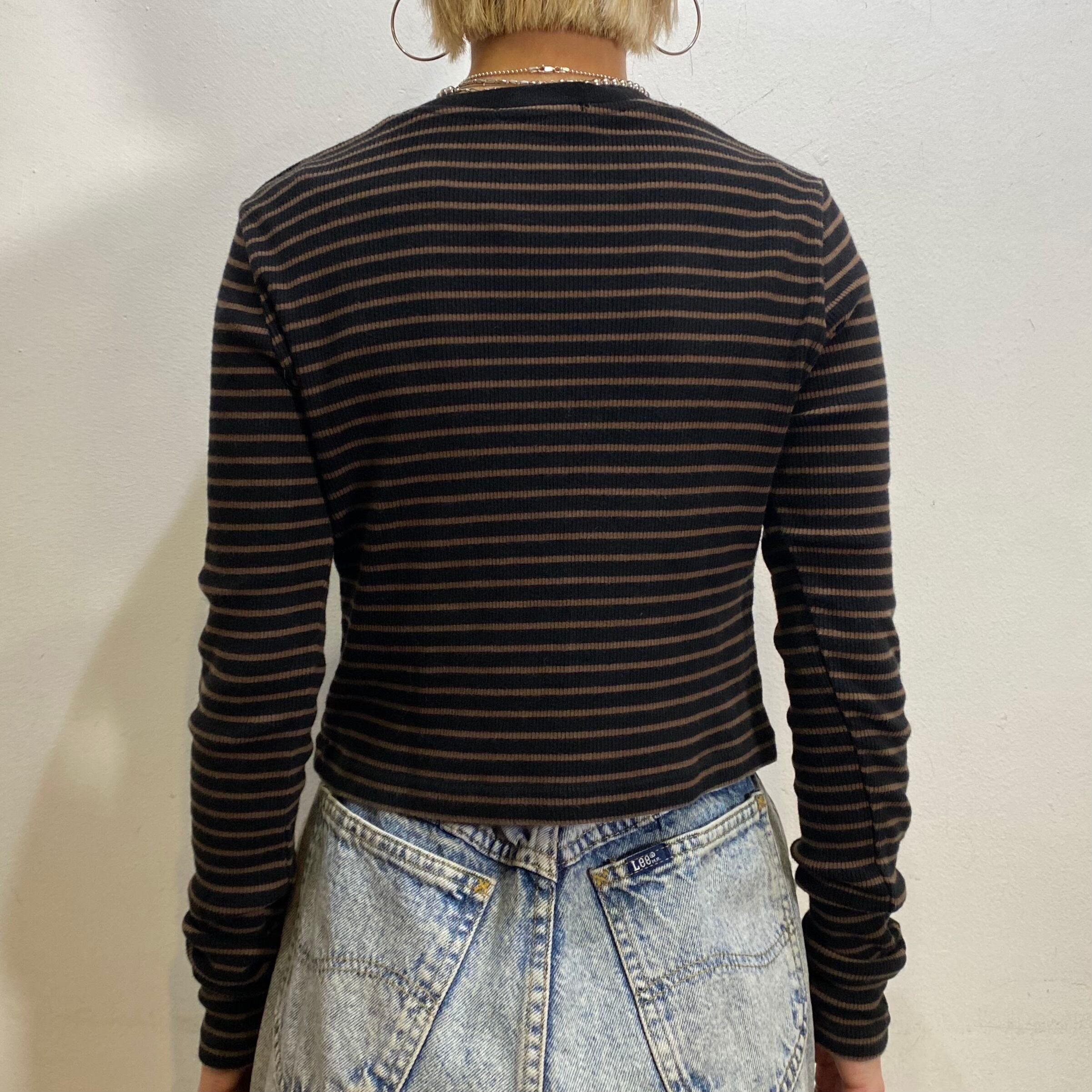 ブラウン×ブラックの組み合わせで着こなしやすい、ボーダートップスです。