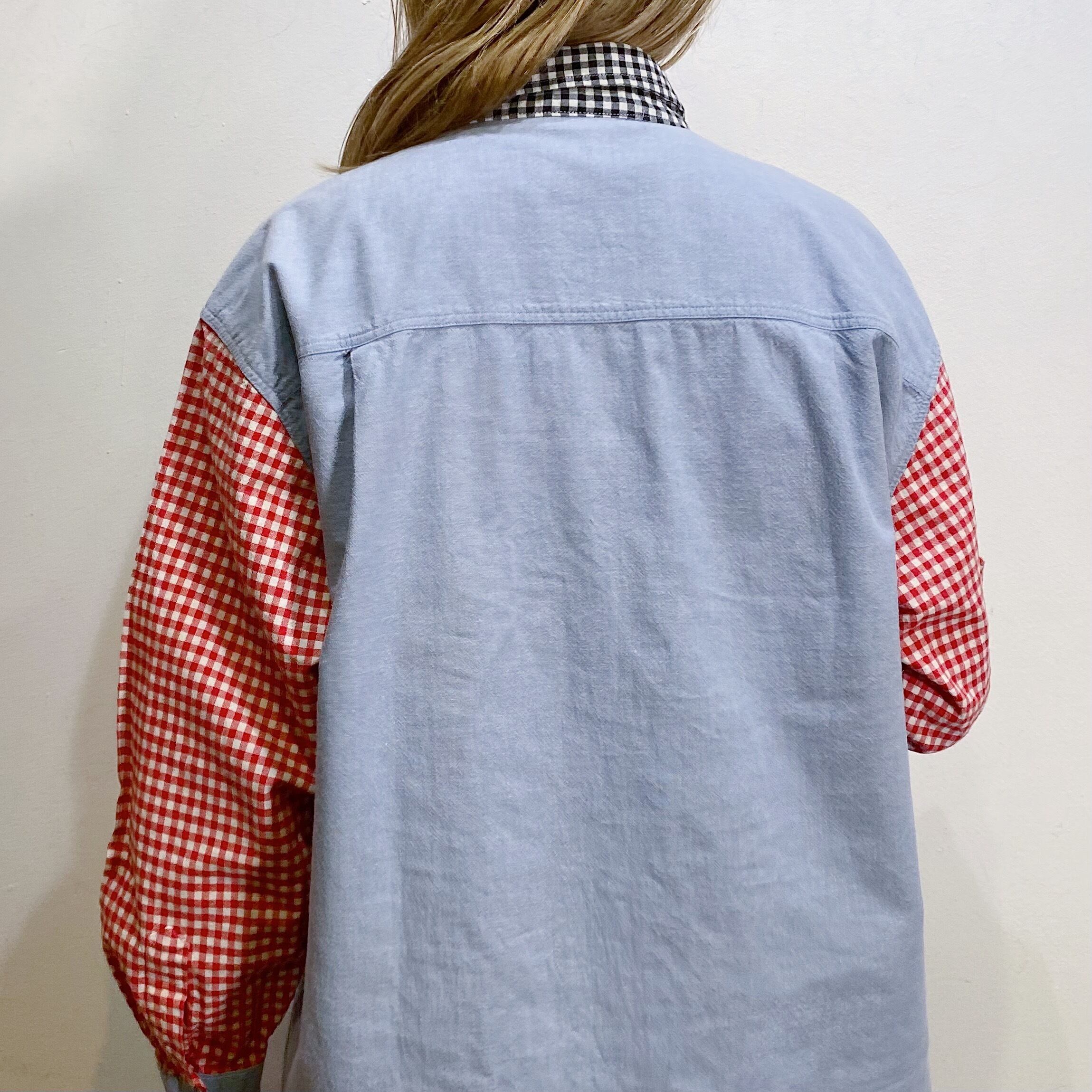 シャンブレーにギンガムチェックの切り替えがとってもキュート。