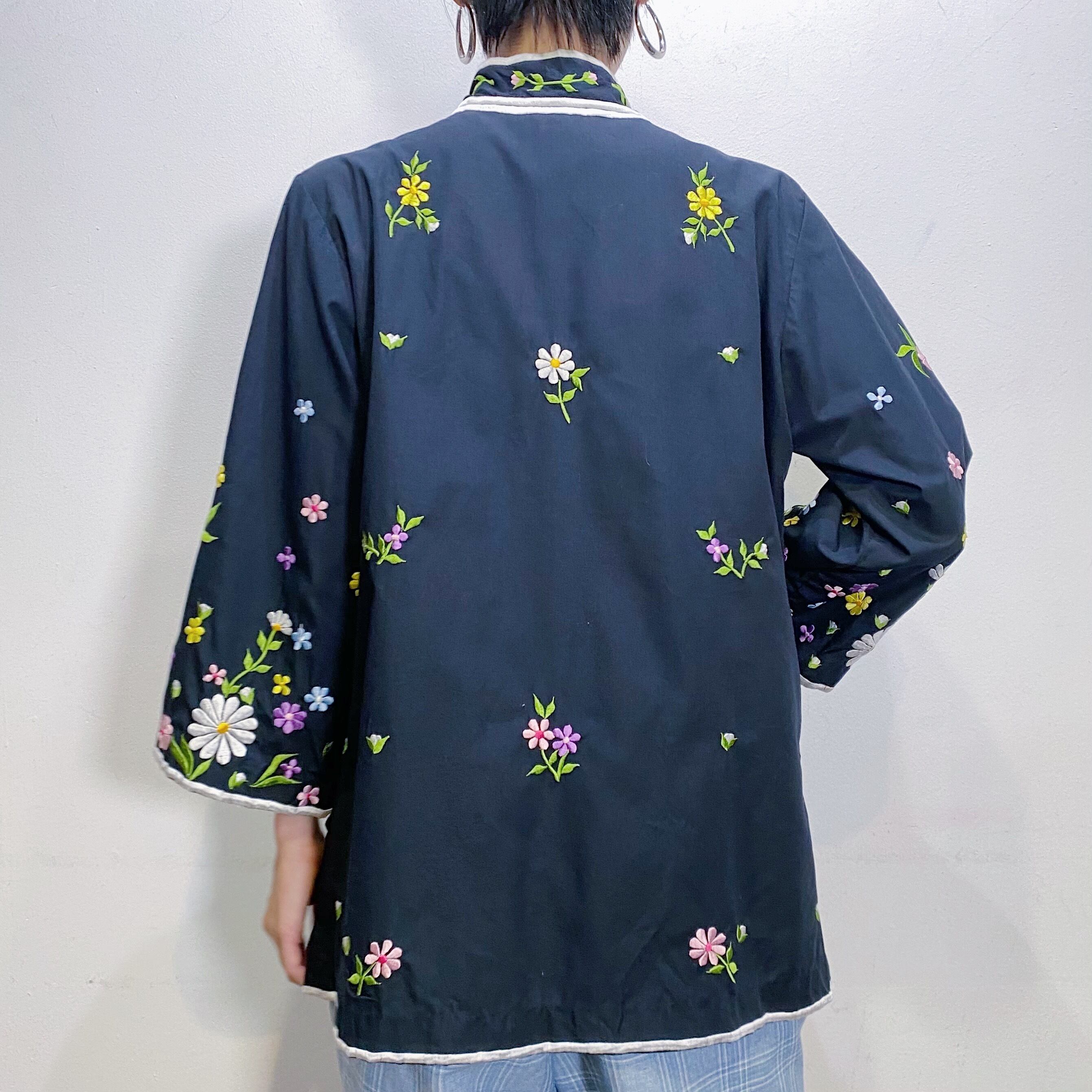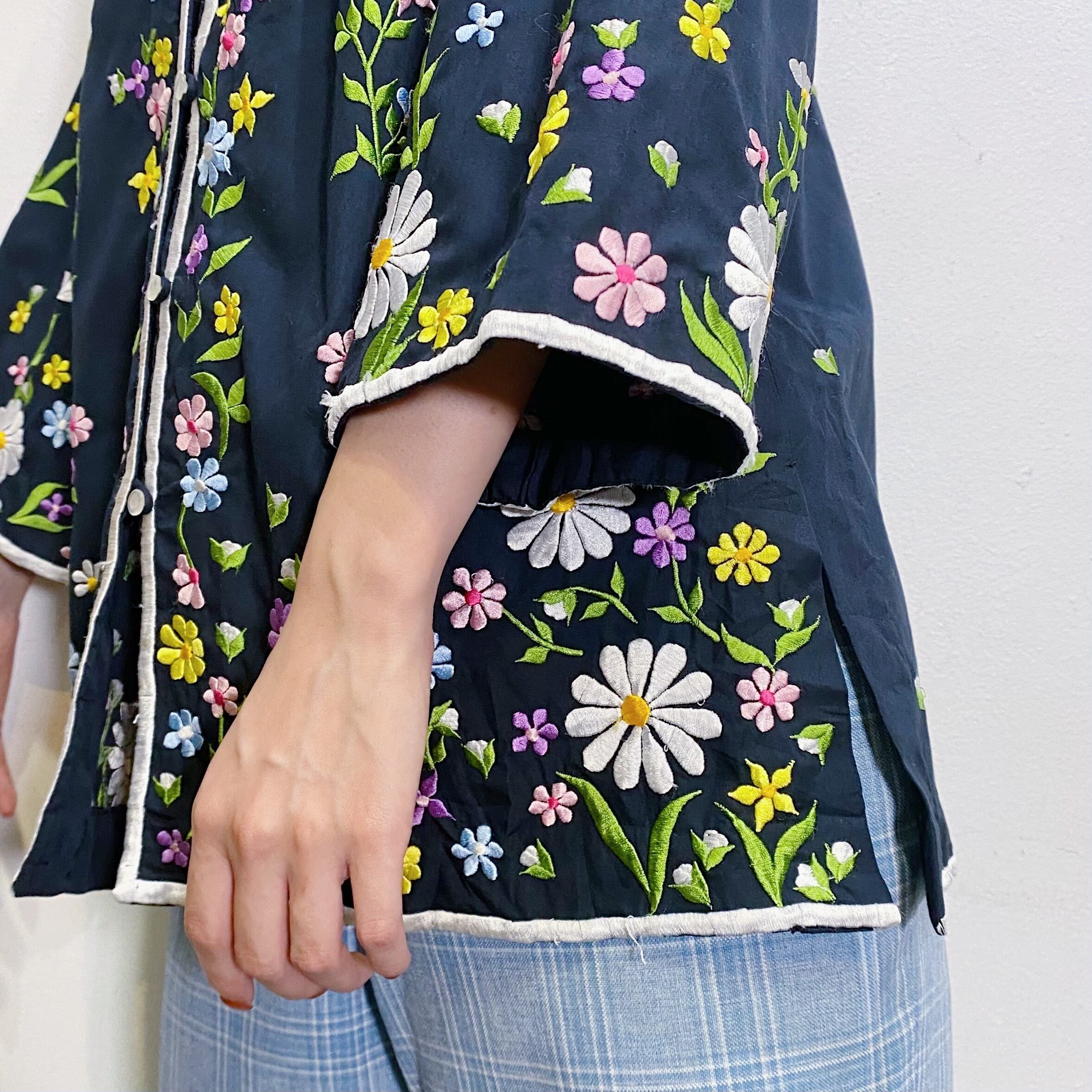 全体にびっしりとお花の刺繍が施された、フィリピンの長袖シャツです。
