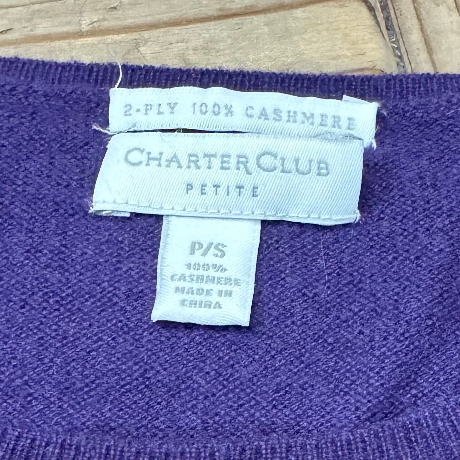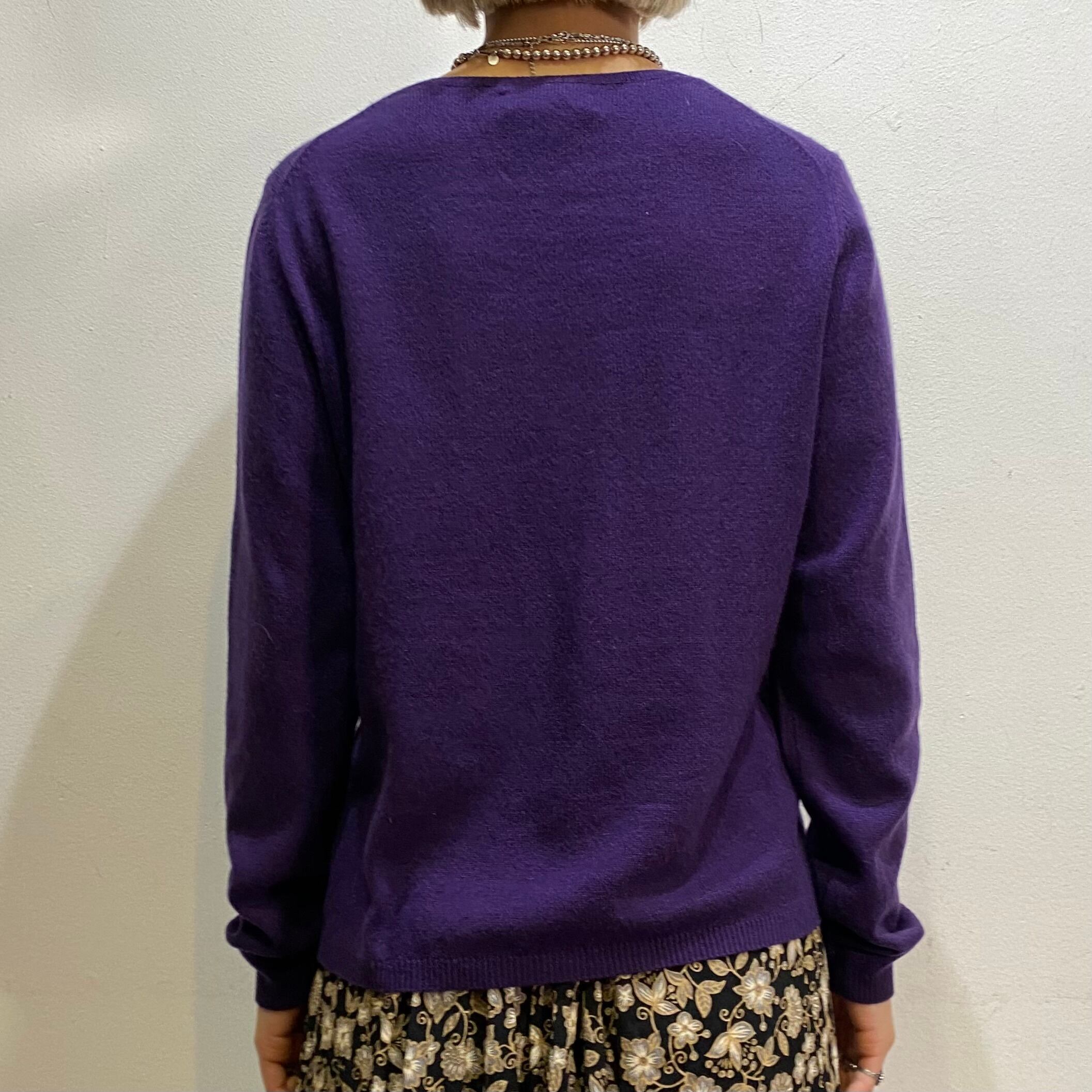 こっくりとしたパープルの色合いが可愛い、カシミヤセーターです。