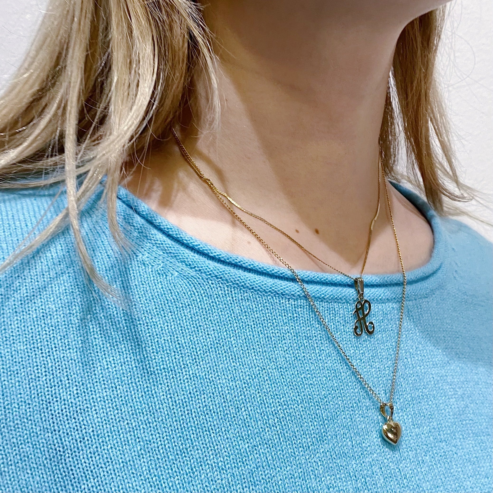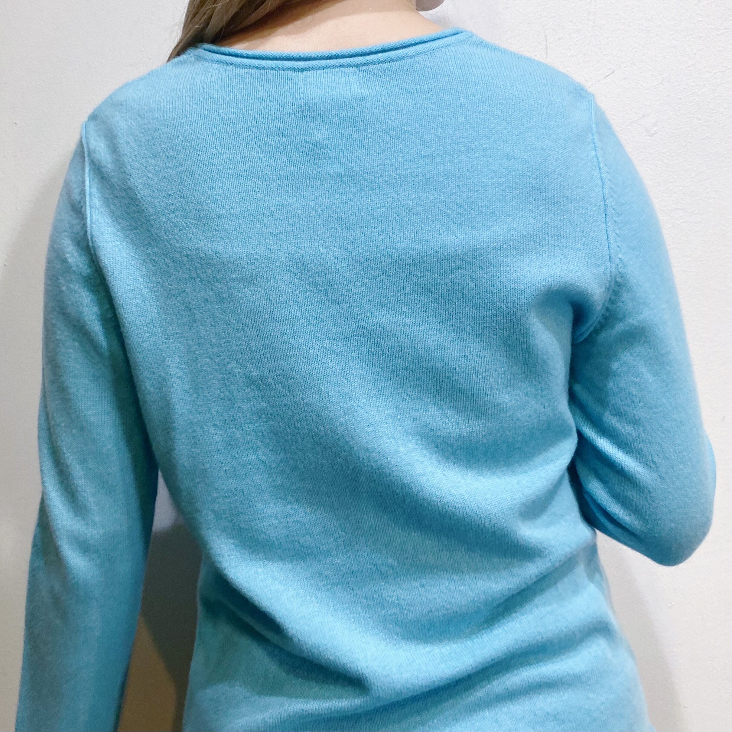 爽やかなサックスブルーの色合いが可愛い、L.L.Beanのカシミヤセーターです。