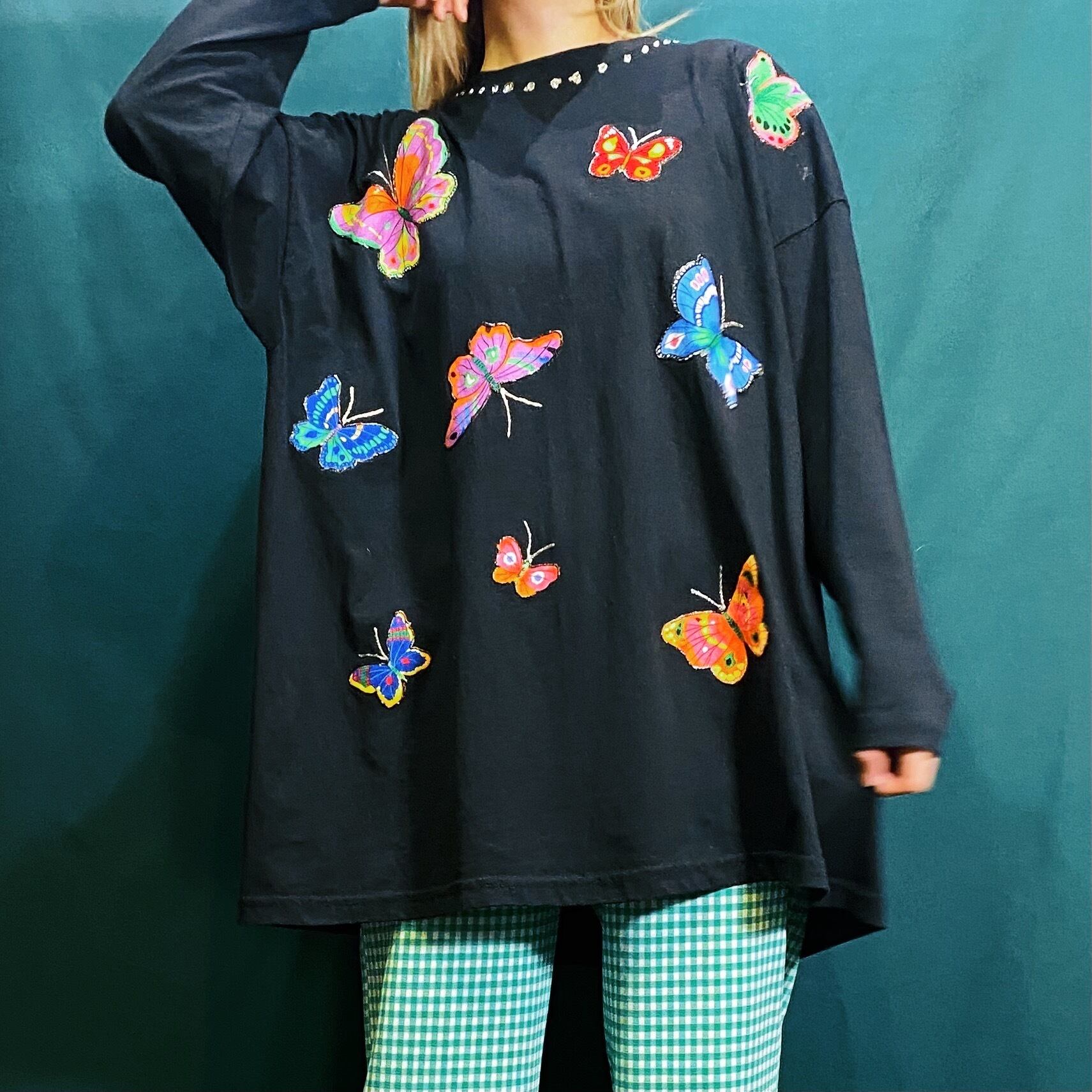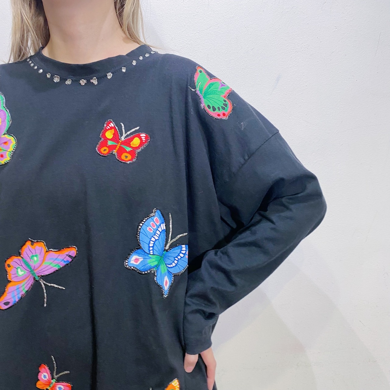 カラフルな蝶々のプリントが可愛い、80年代のロンTです。