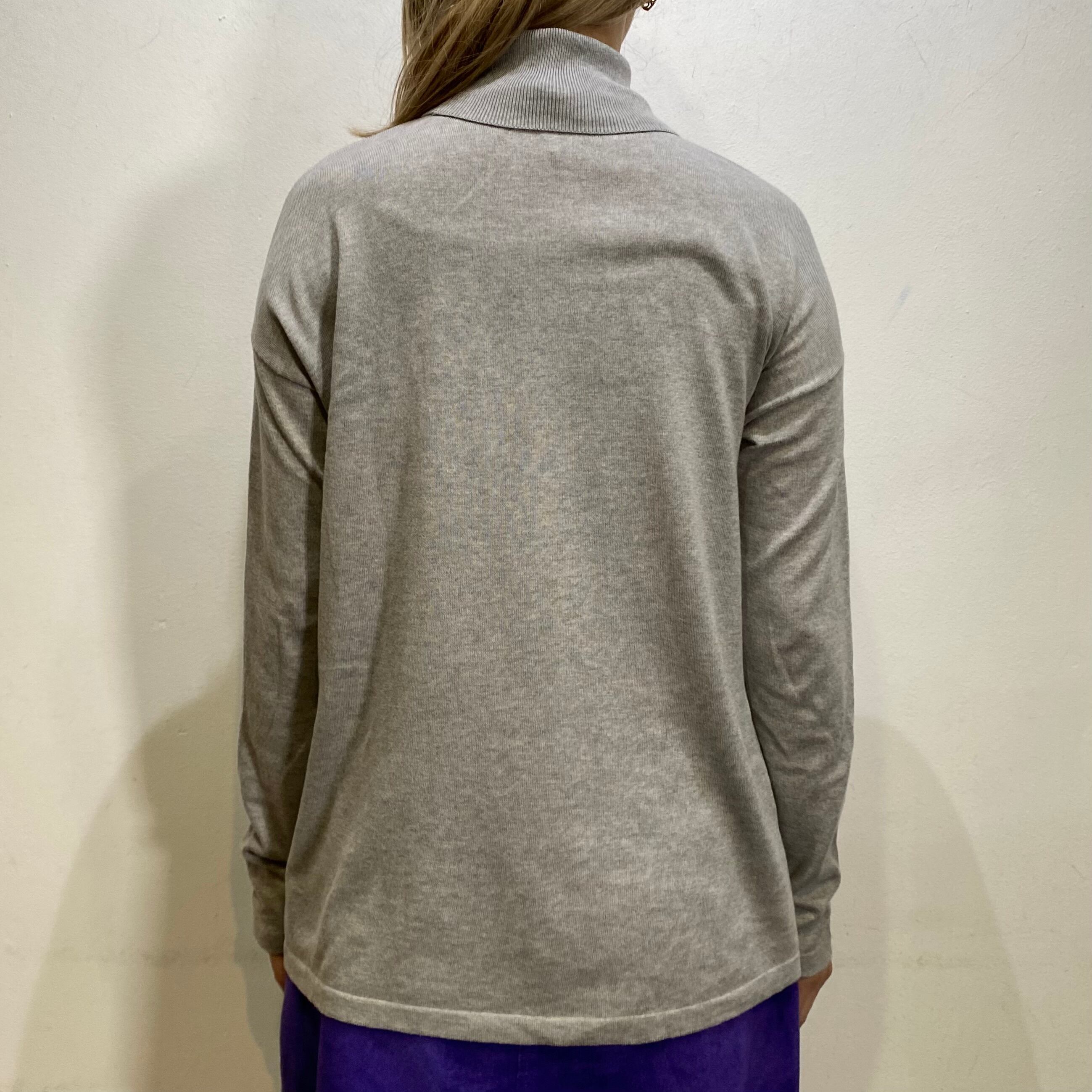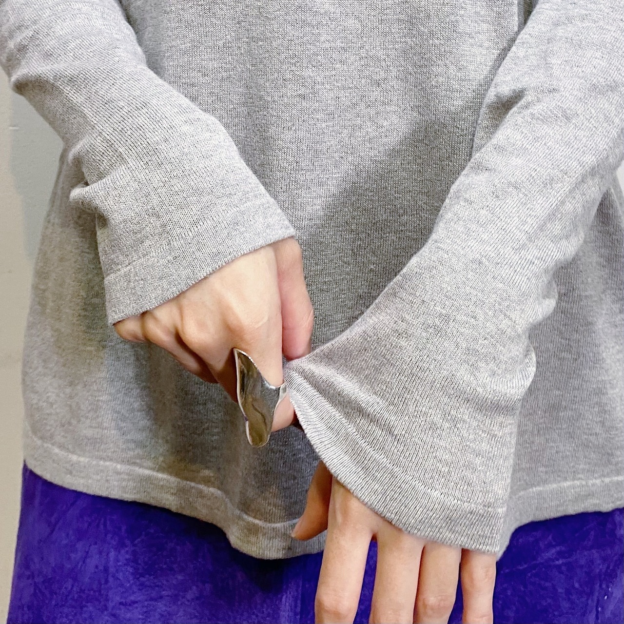 ライトグレーカラーで使い勝手のいいハイネックトップスです。