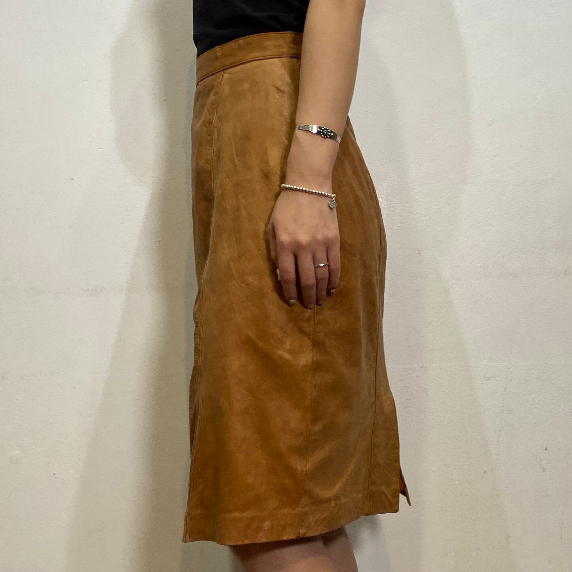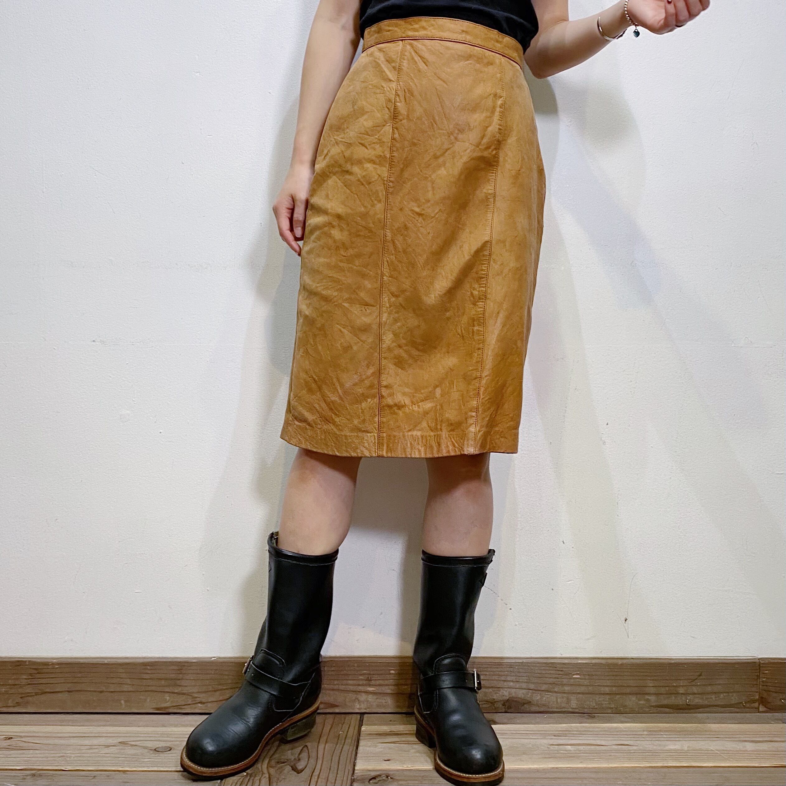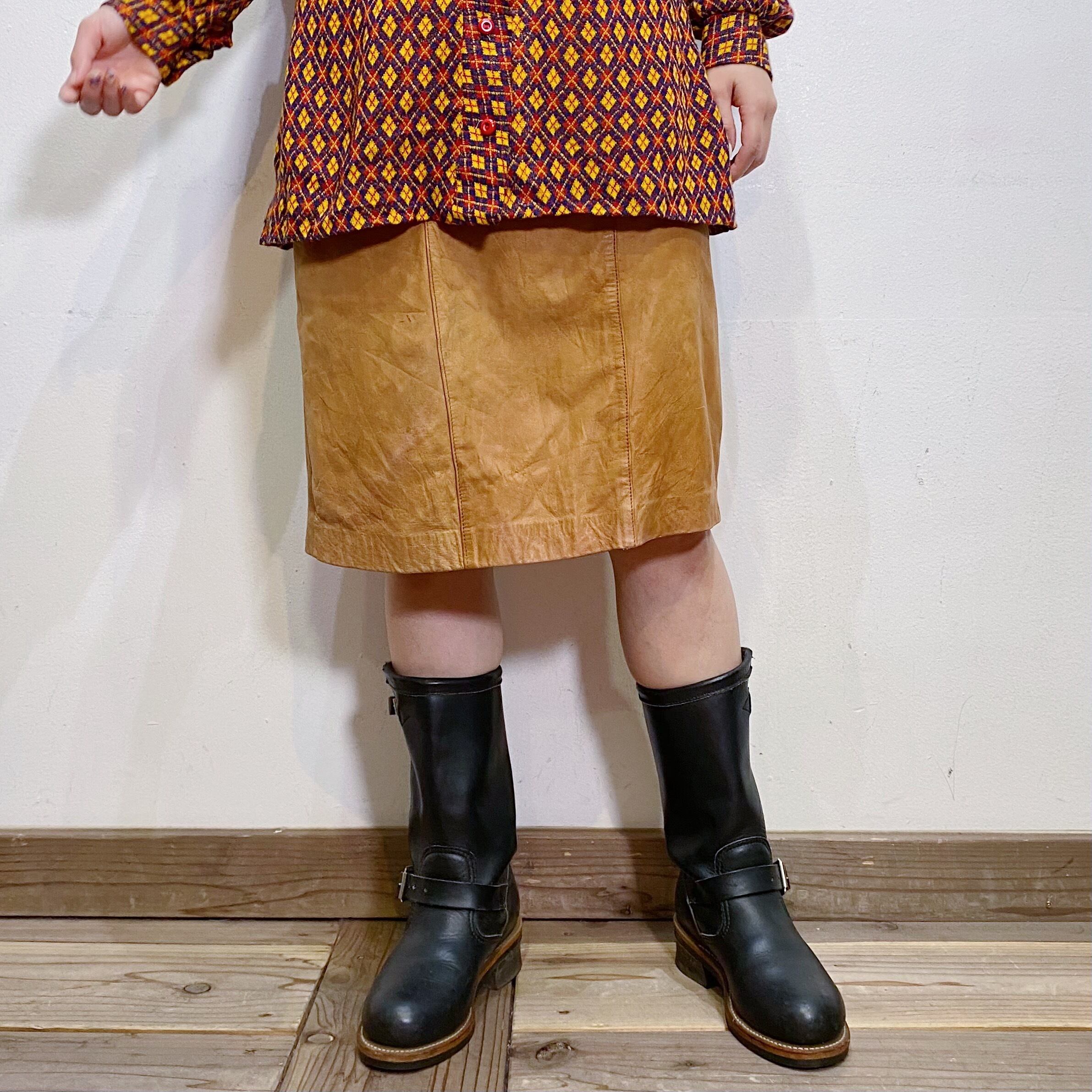 キャメルカラーで使い勝手の良い、レザースカートです。
