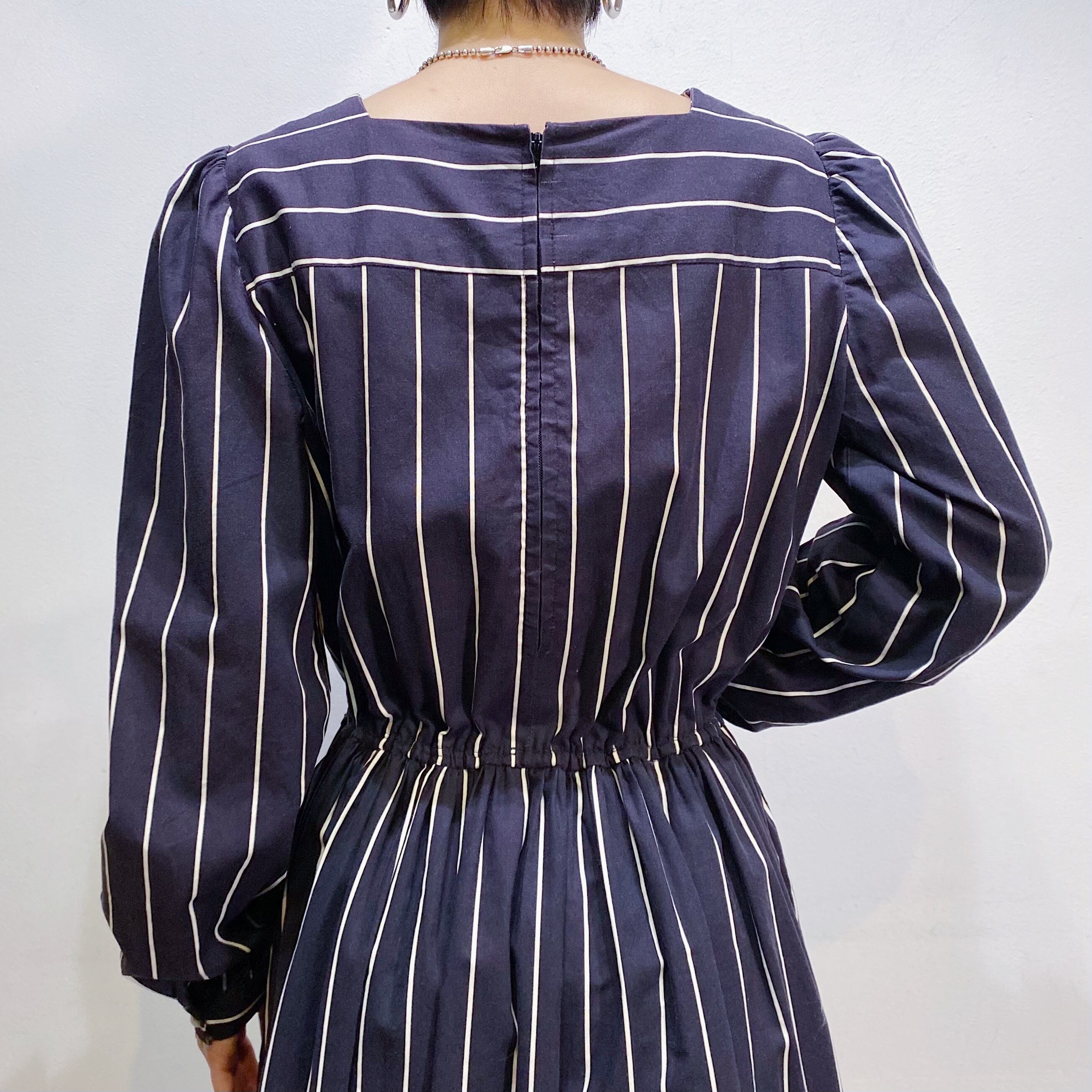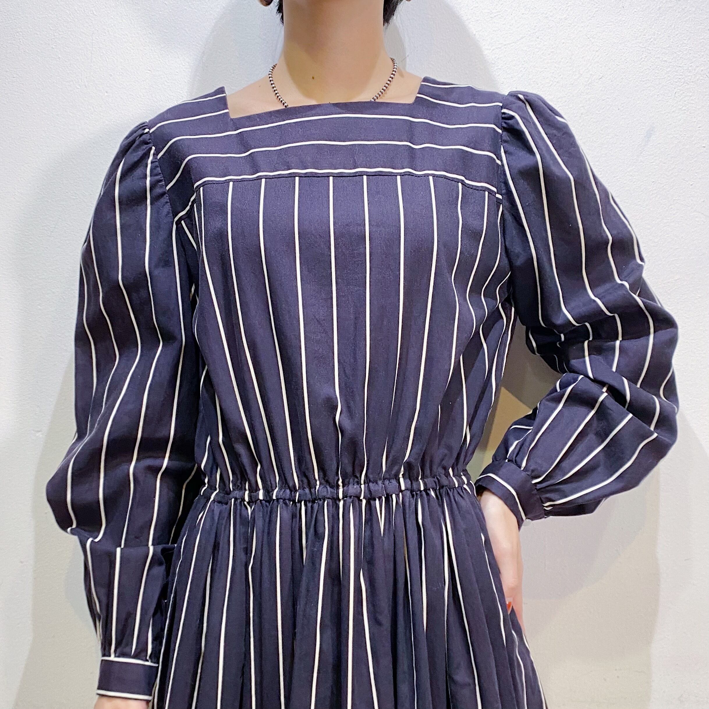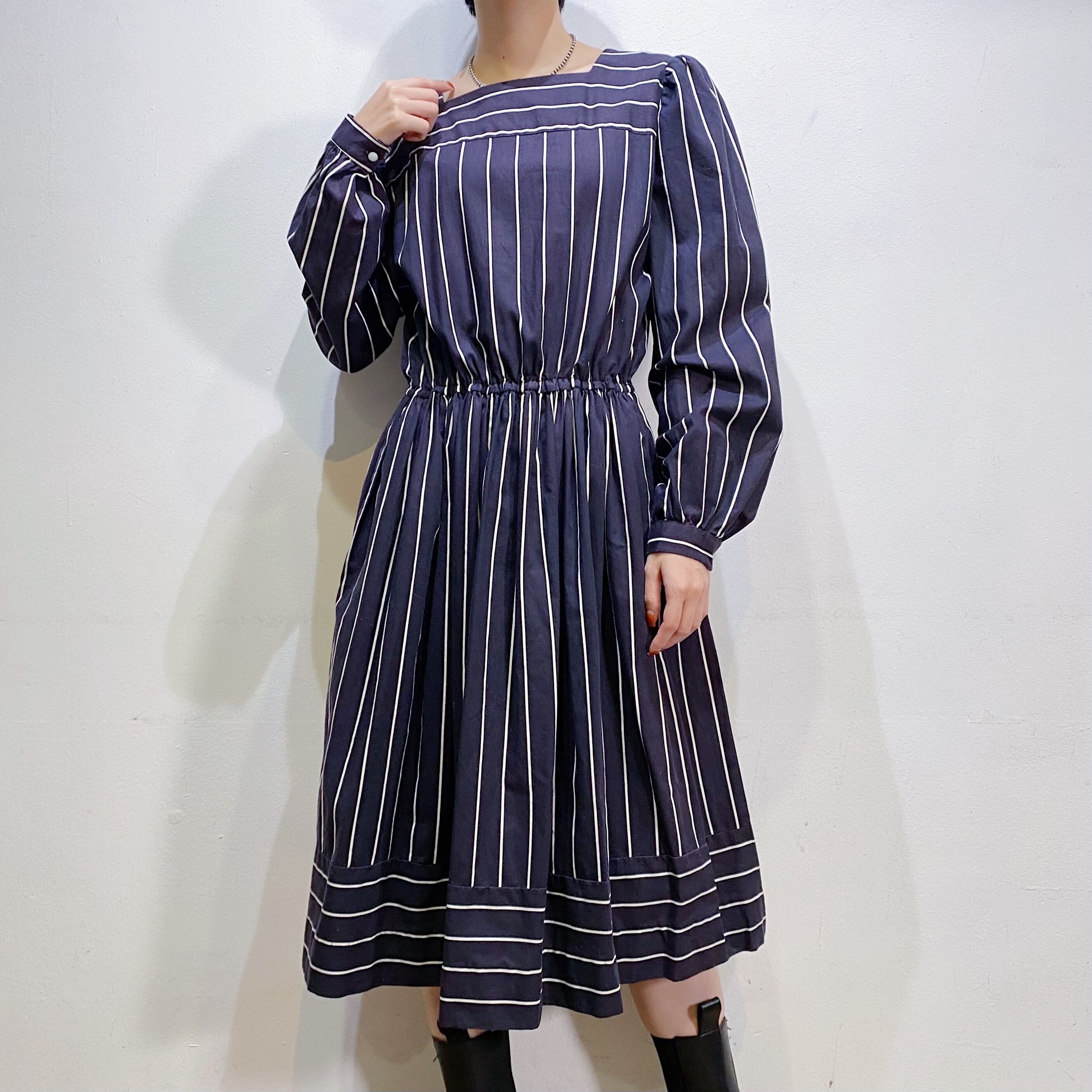 モノトーンカラーのストライプが可愛い、80年代のワンピースです。