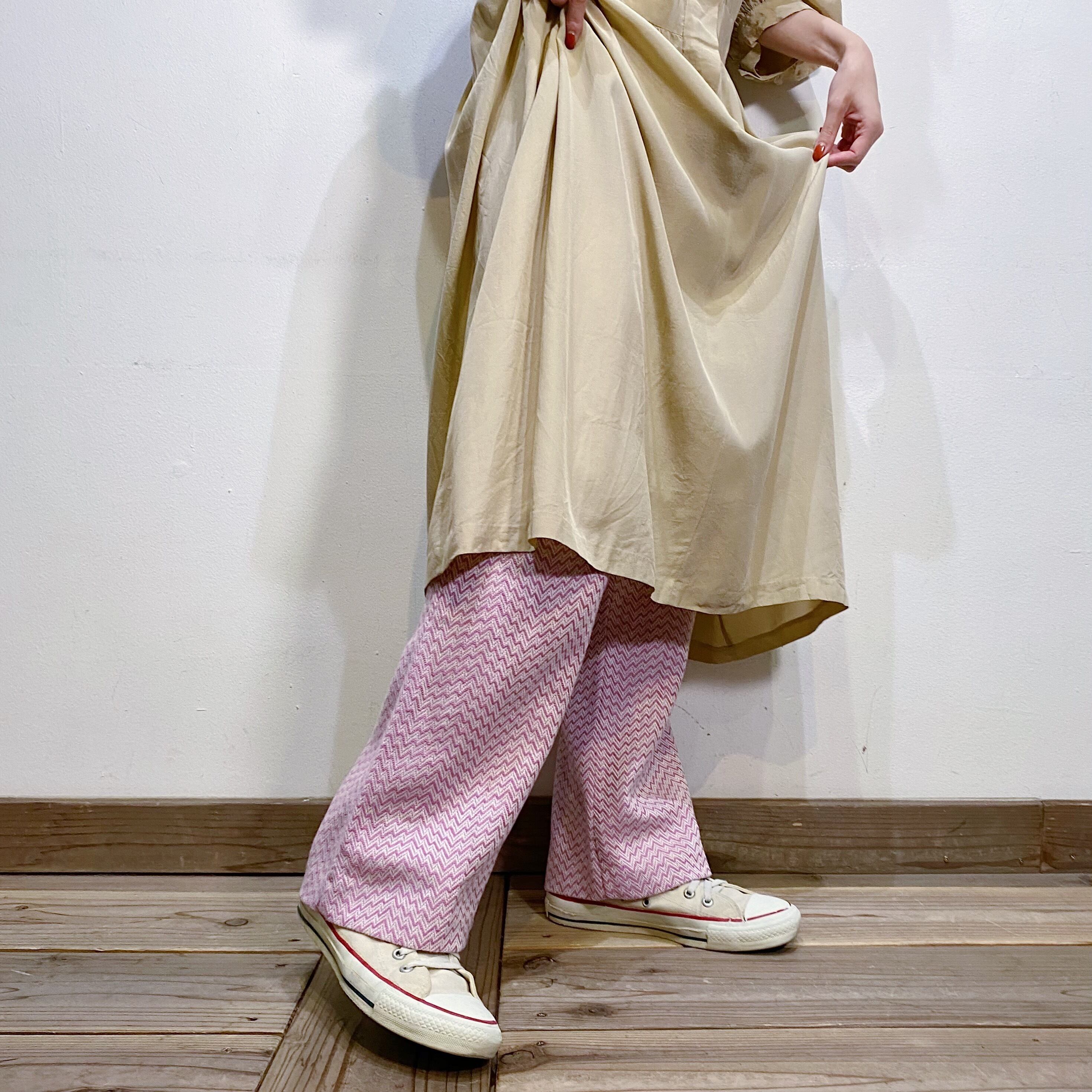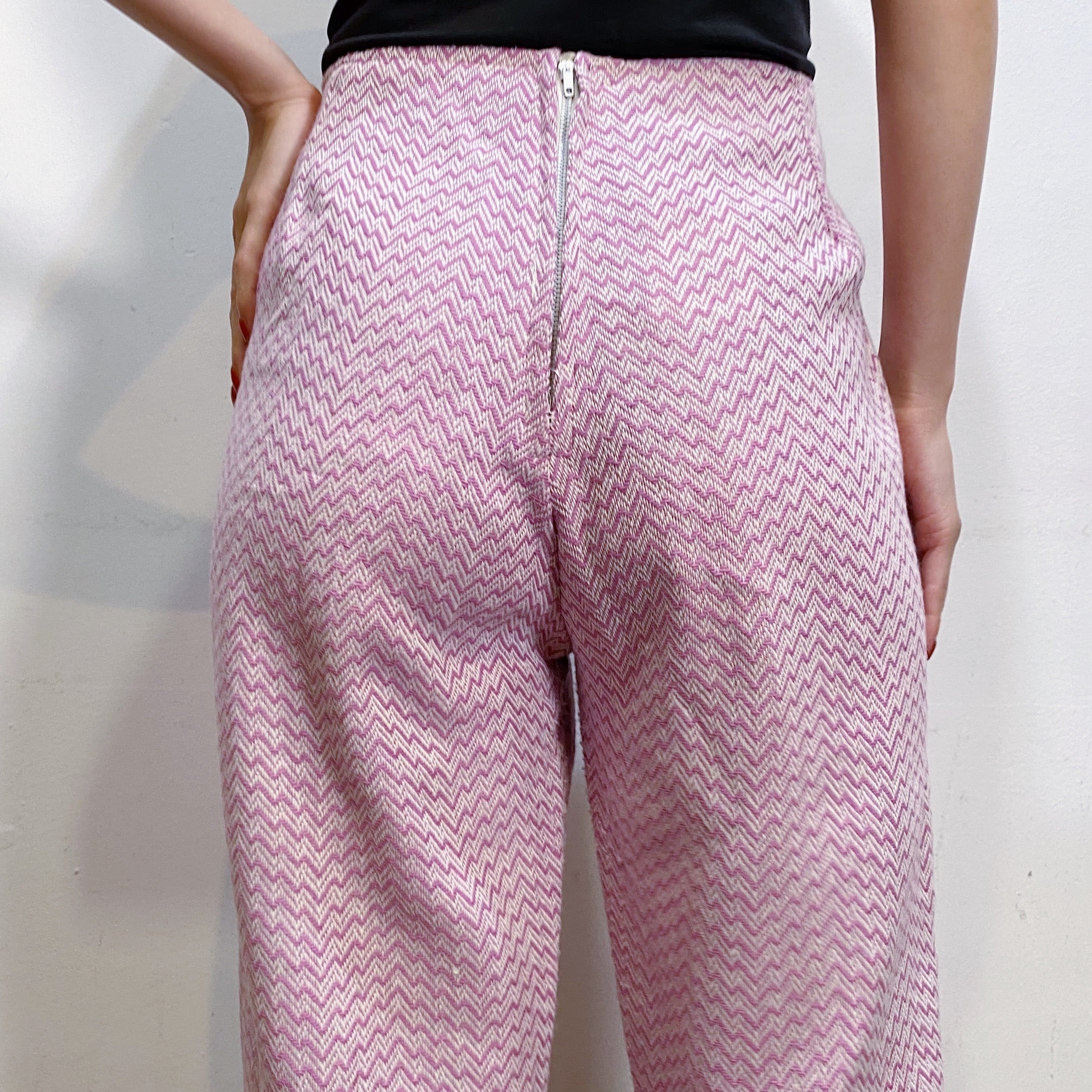 ピンクとホワイトのジグザグ模様が可愛い、60~70年代のフレアパンツです。