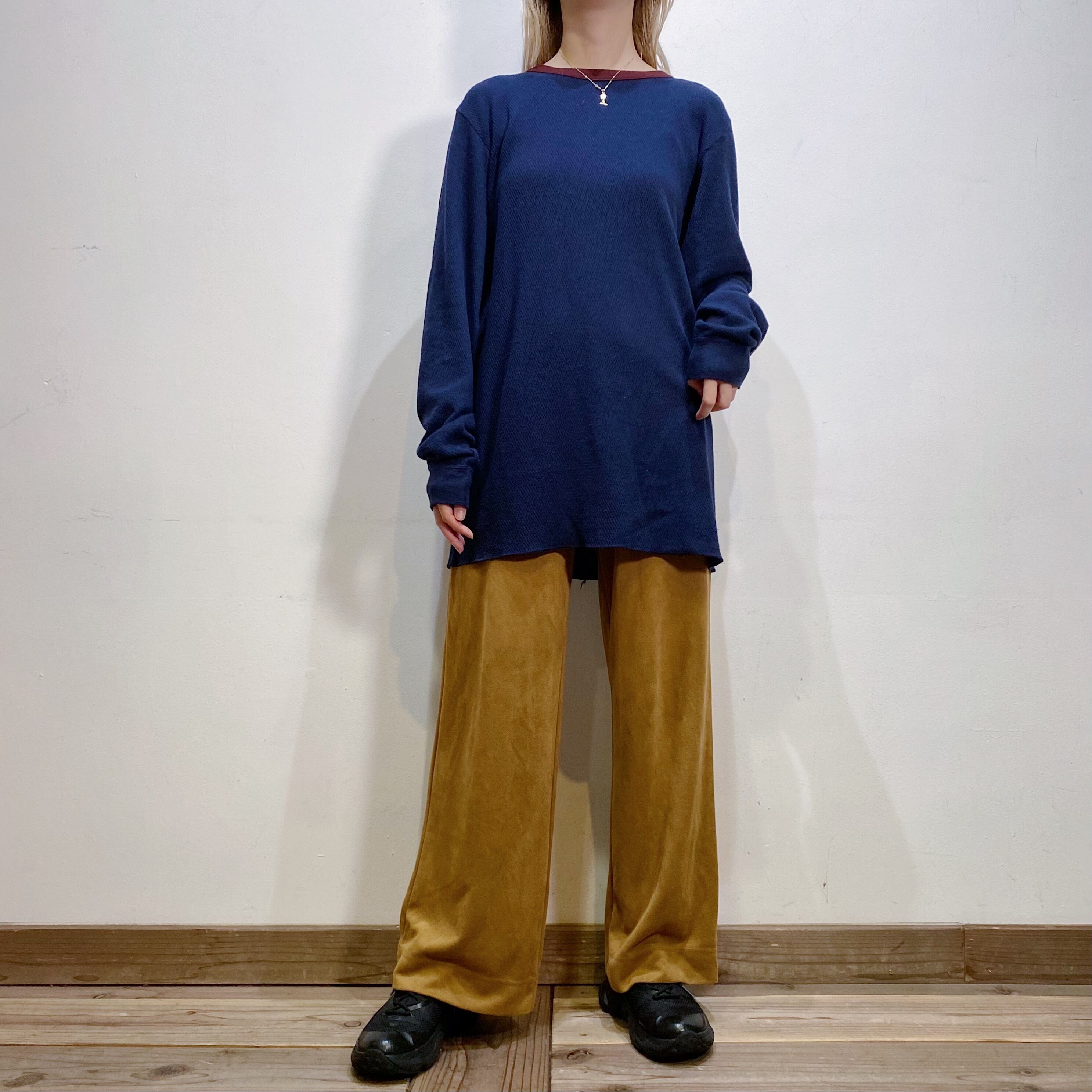 無地なのでどんなアイテムとも合わせやすく、着回しにも抜群なアイテムですよ。