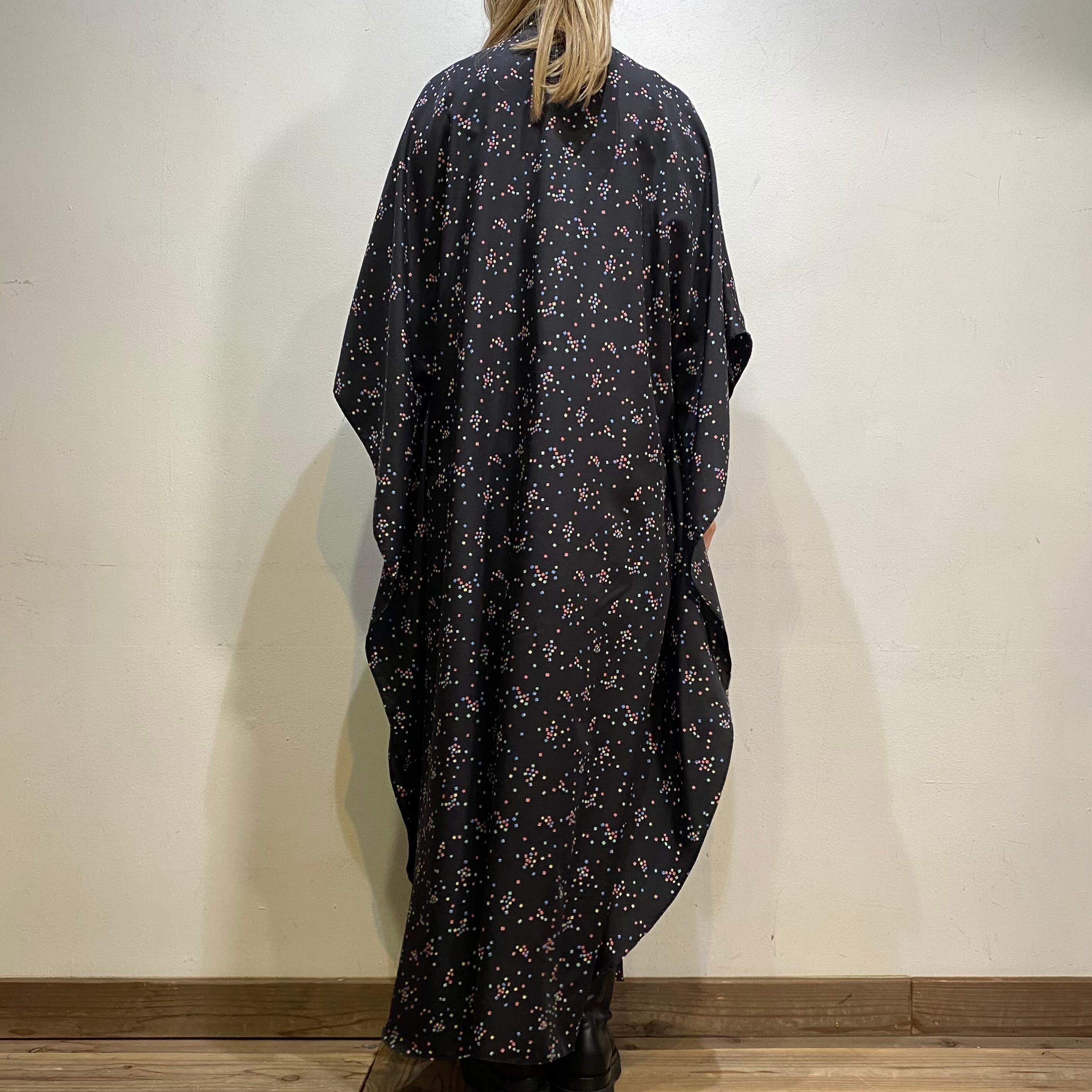 ポンチョのようなユニークなデザインが魅力の、70年代のワンピースです。