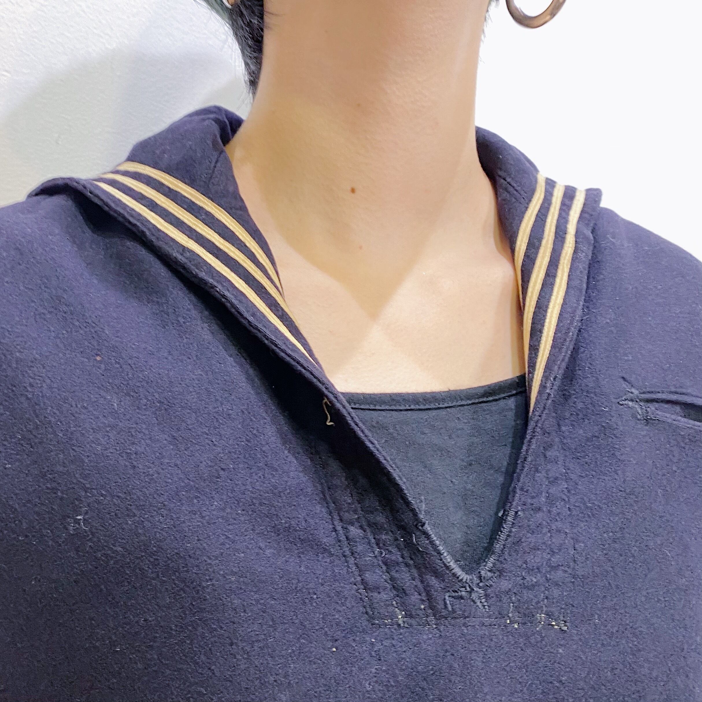 アメリカ海軍で実際に着られていた、セーラーカラーが可愛い50~60年代のマリントップスです。