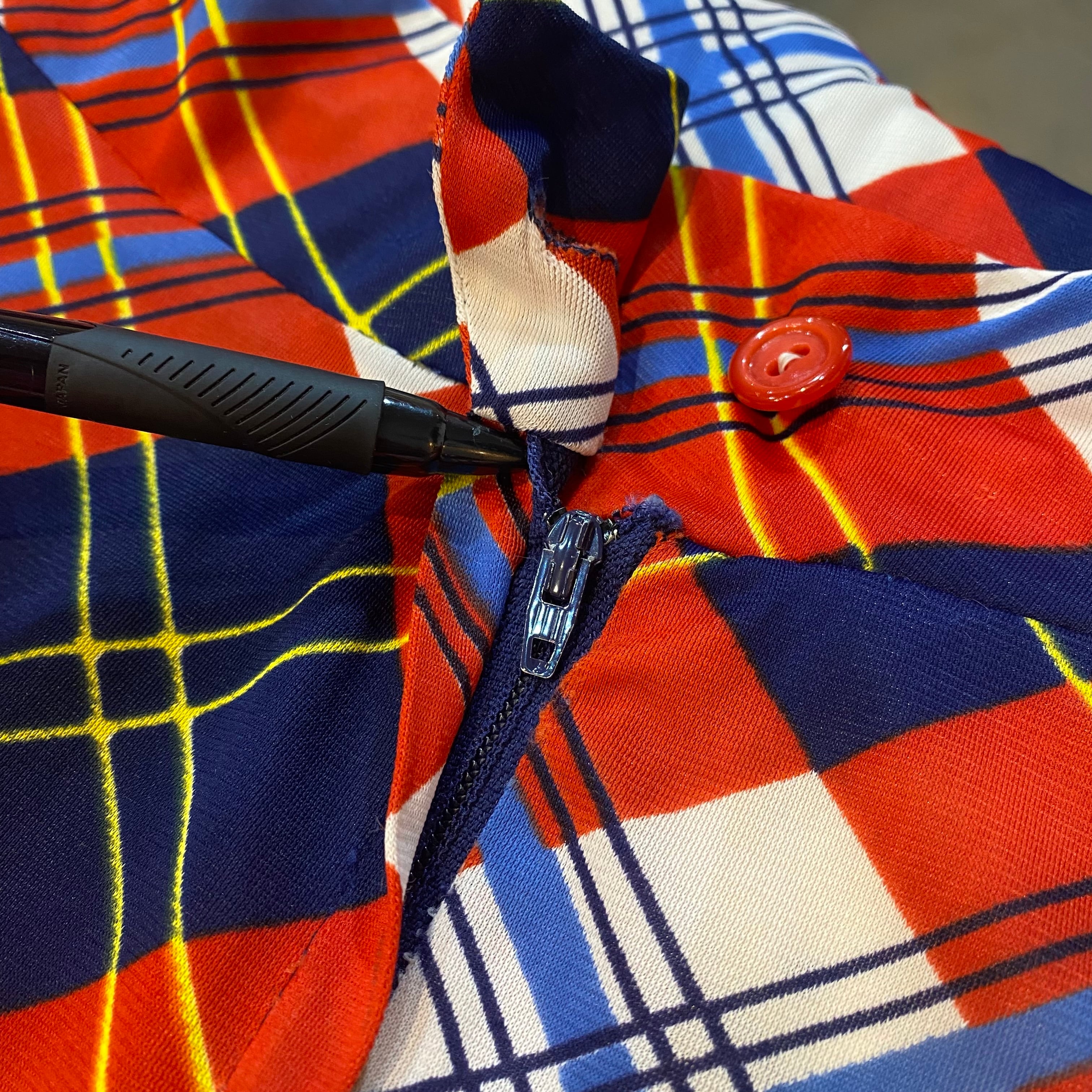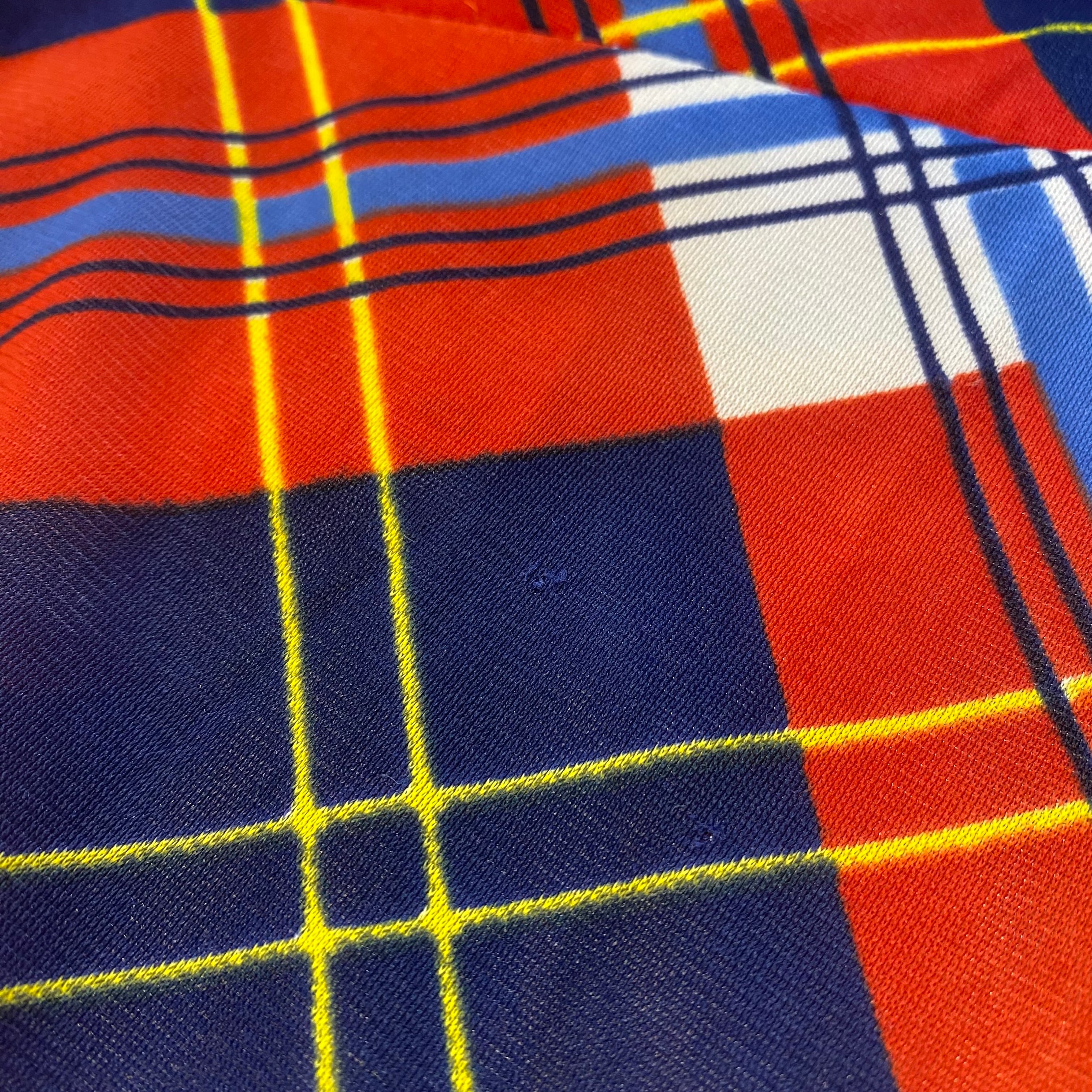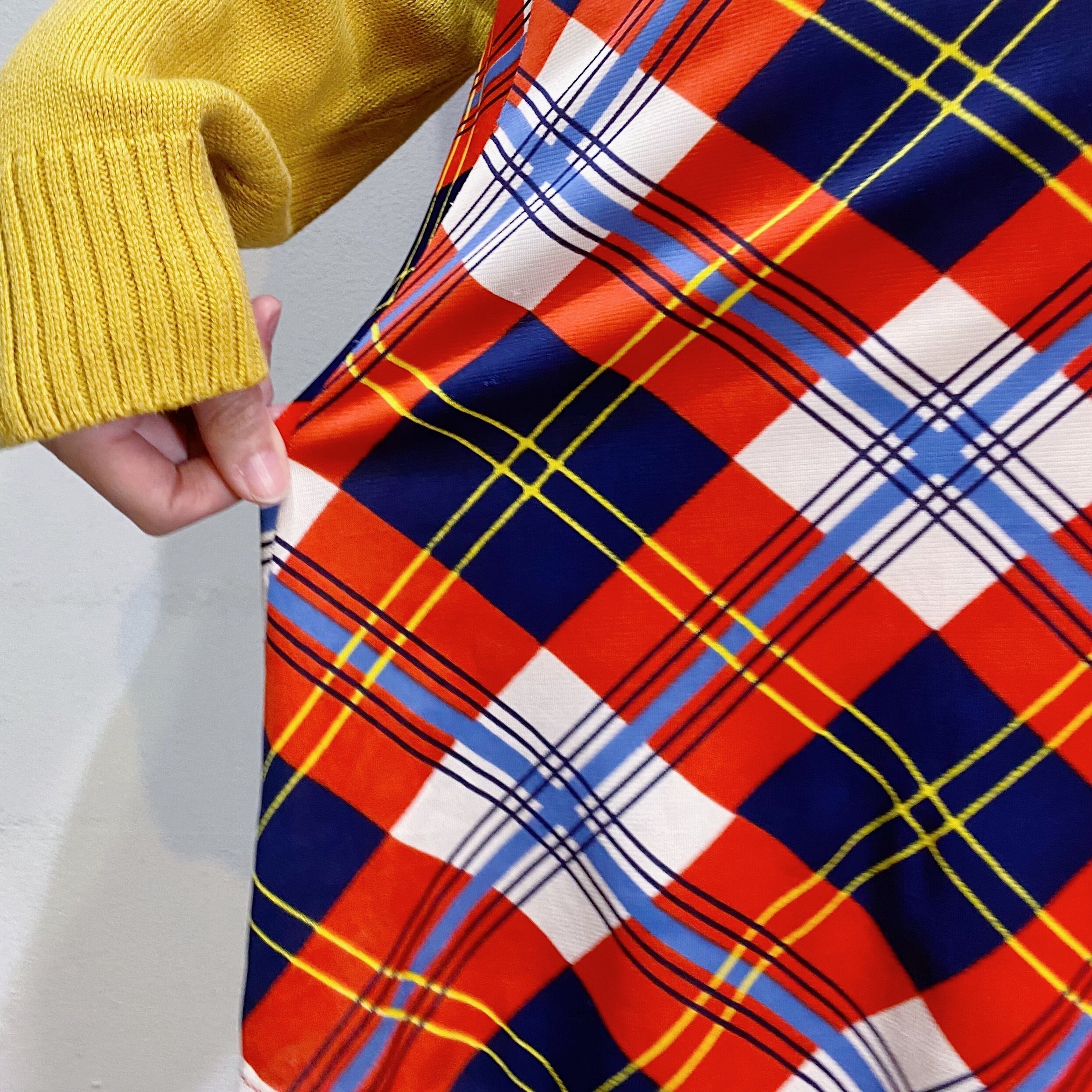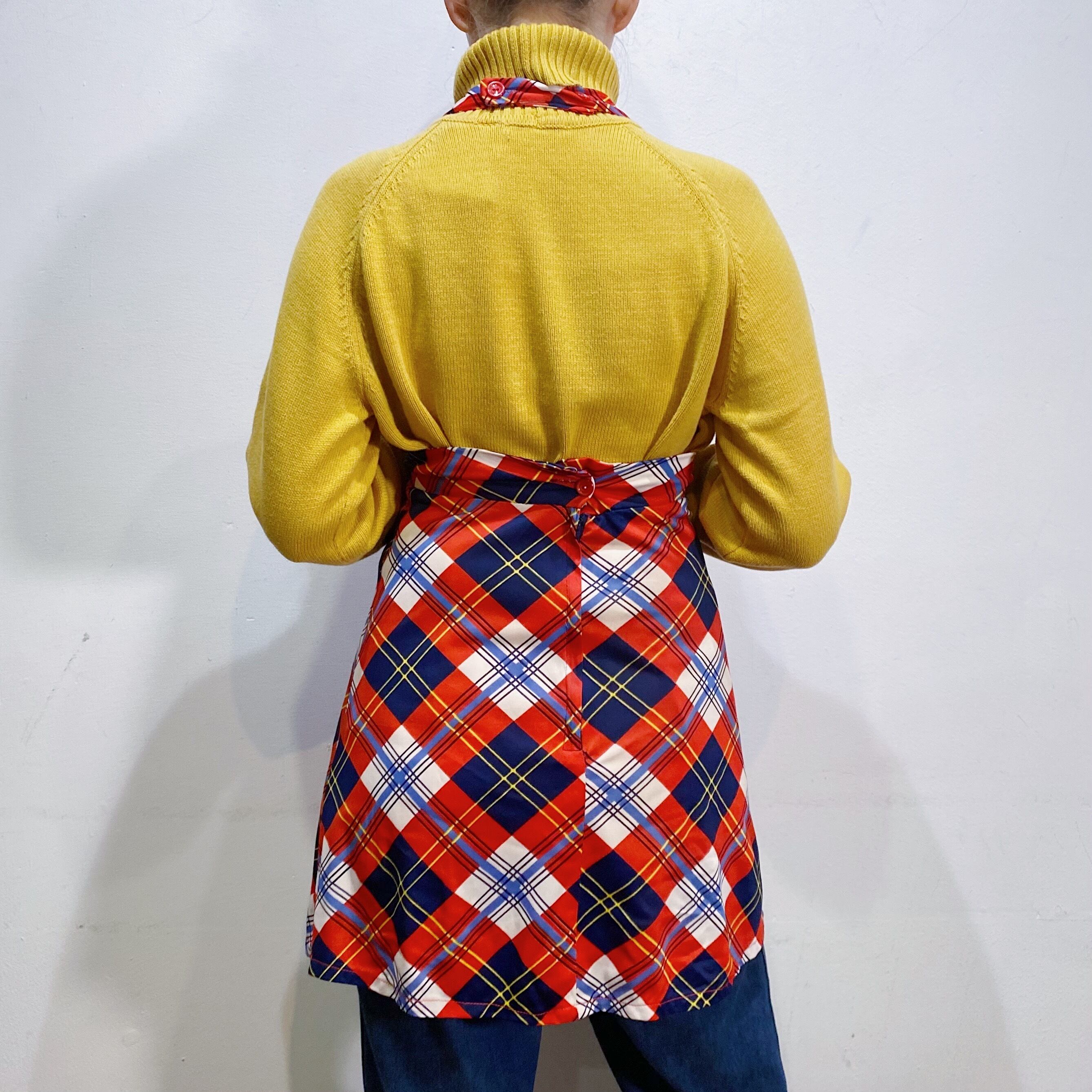 赤やネイビーなどの色合いが可愛い、70年代のチェック柄トップスです。