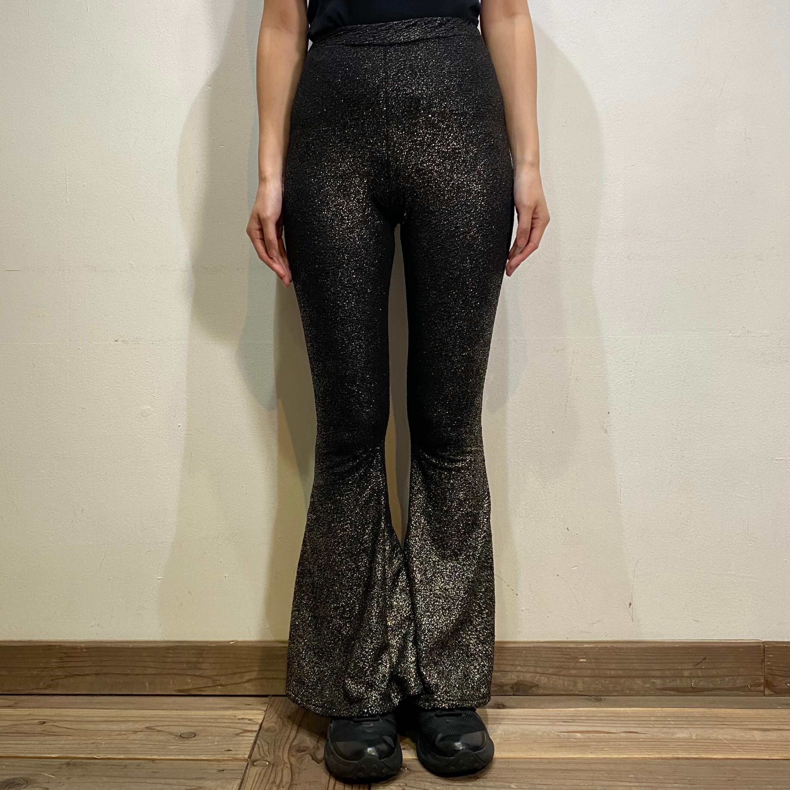 ブラックカラーにゴールドのラメが可愛いフレアパンツです。