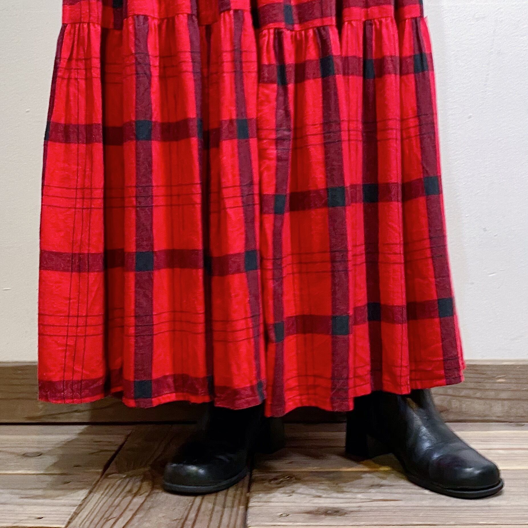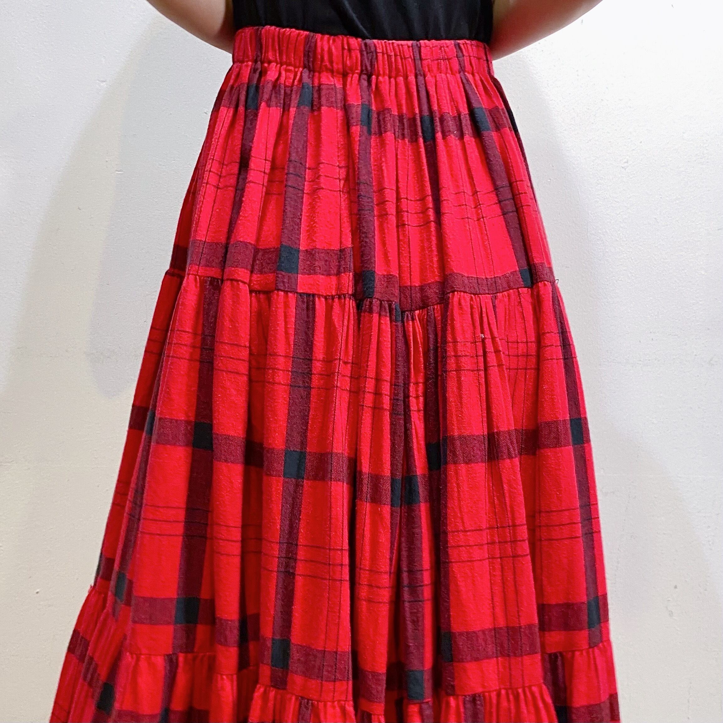 赤×黒のチェックが可愛い、80年代のスカートです。
