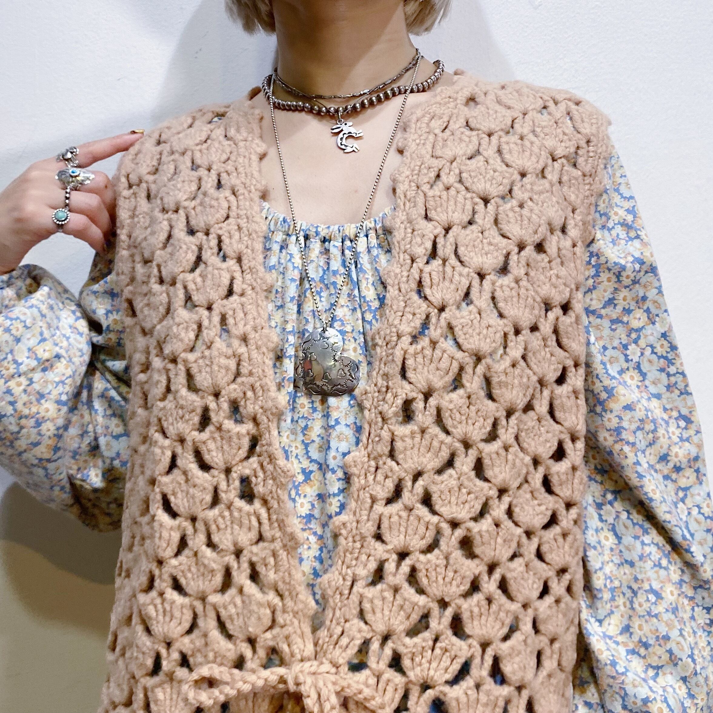 ベージュで使い勝手の良い、70年代のニットベストです。