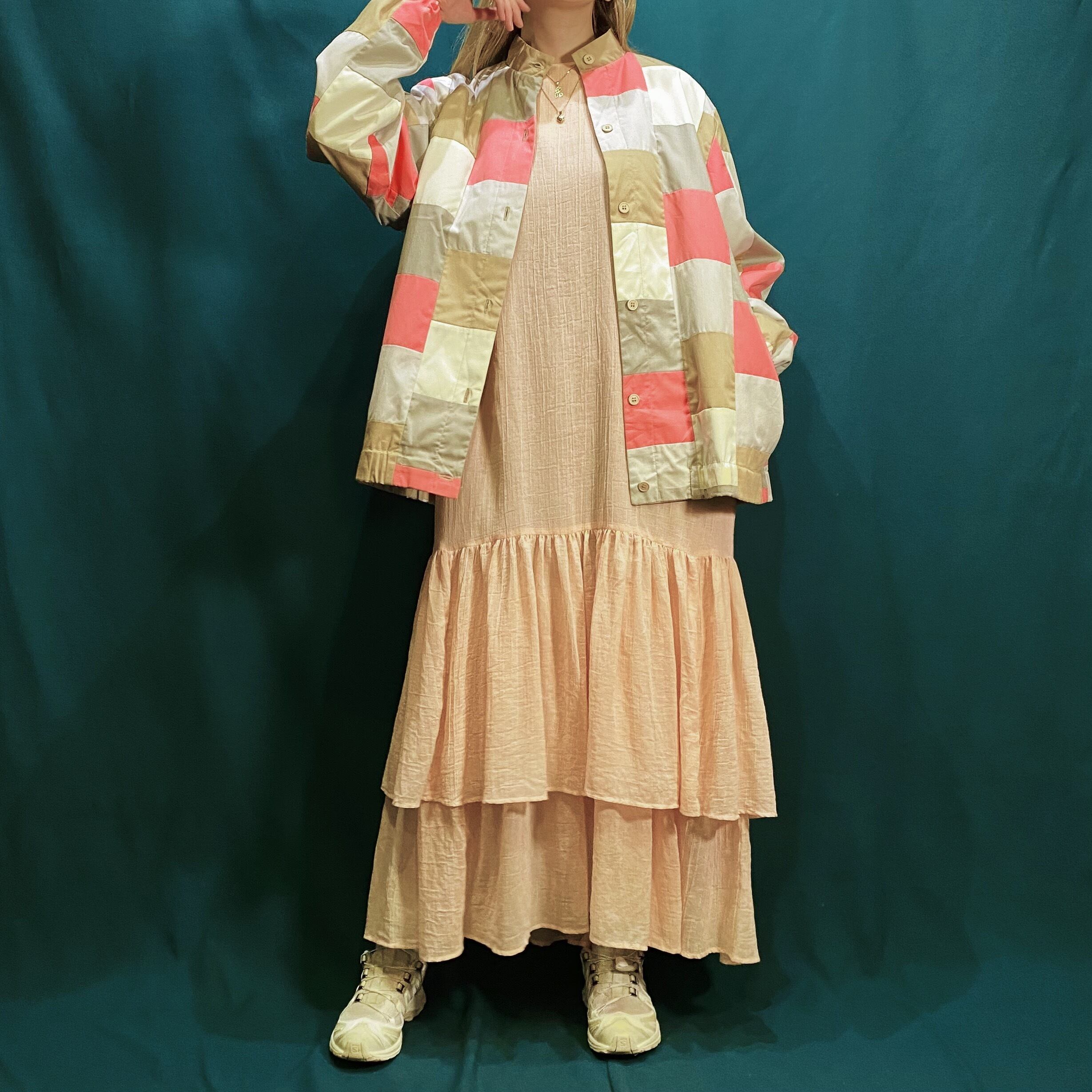 淡いピンクの色合いが可愛い、80年代のワンピースです。