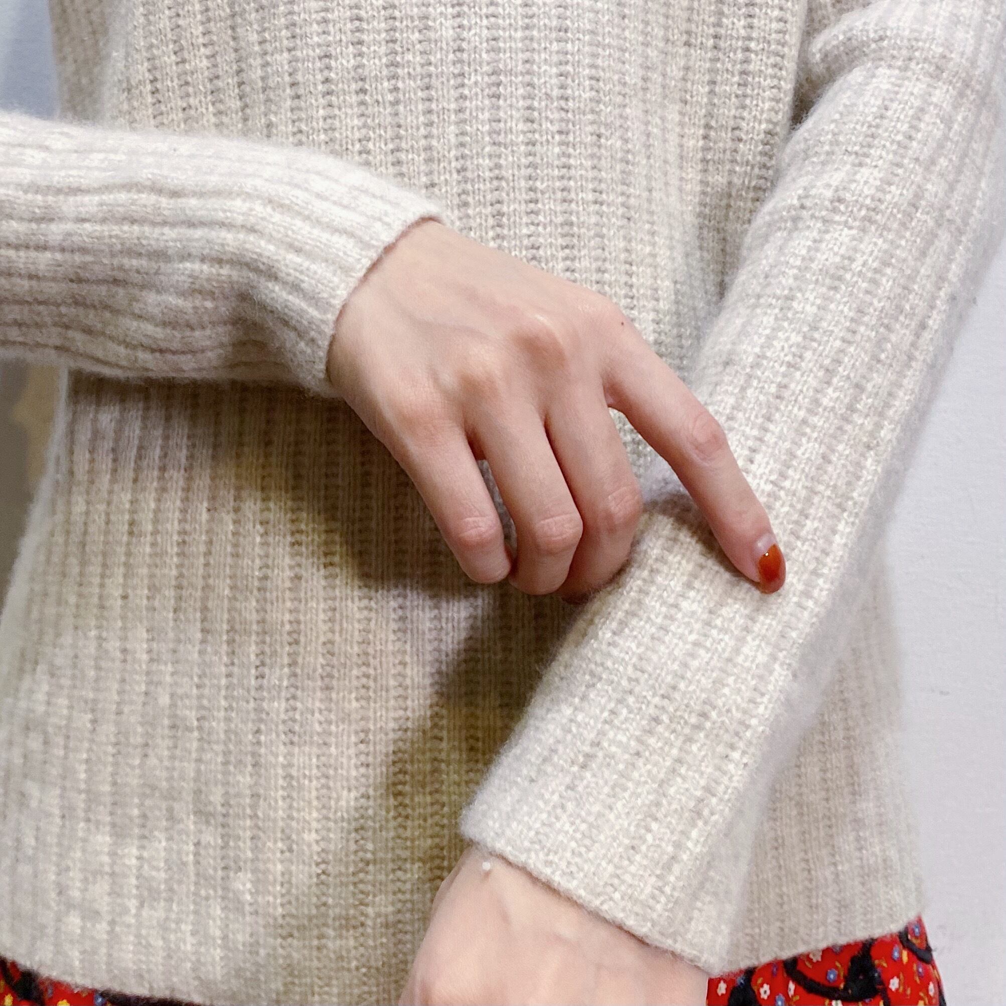 ふわふわと柔らかな肌触りが魅力のカシミヤセーターです。