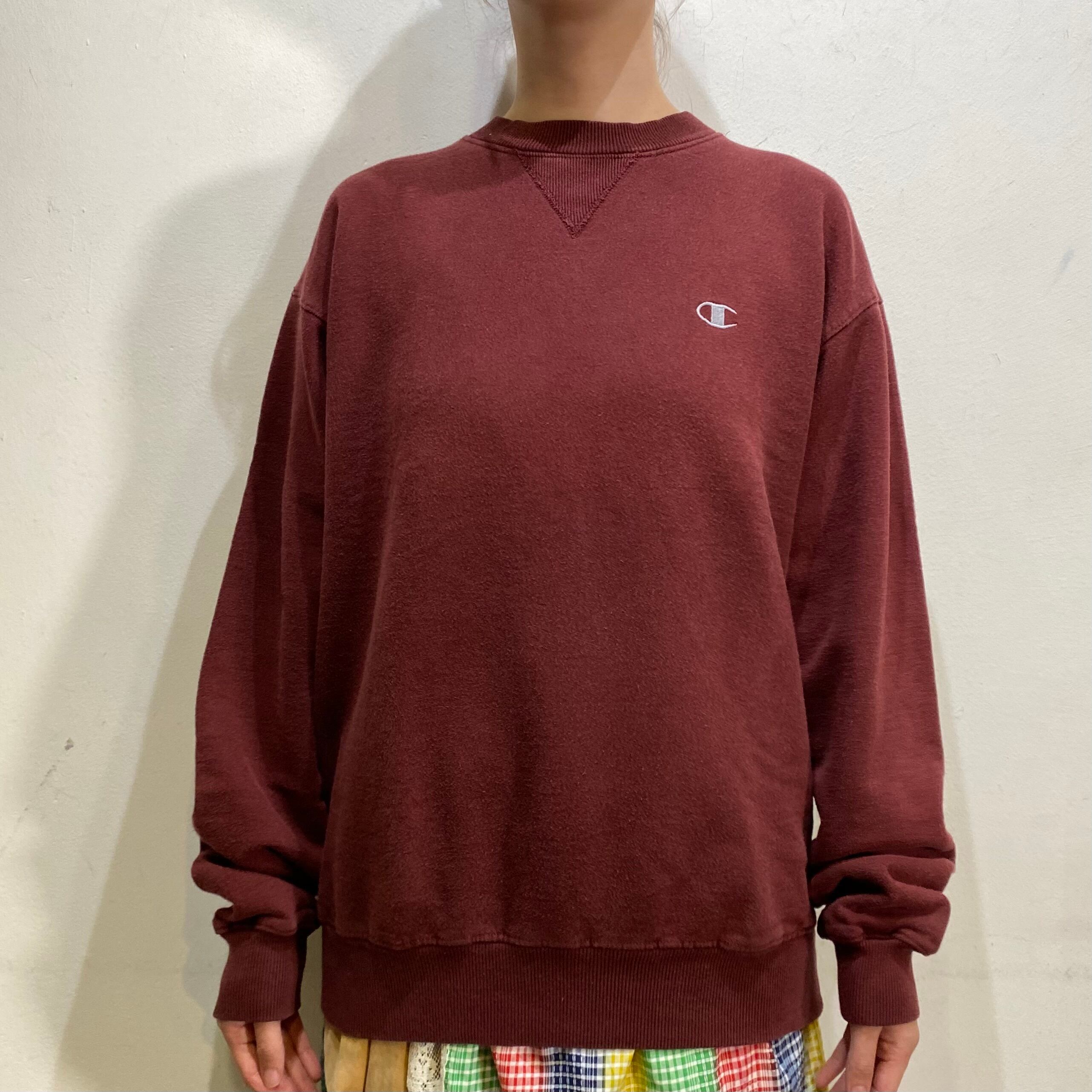 バーガンディーカラーが可愛い、championのスウェットシャツです。