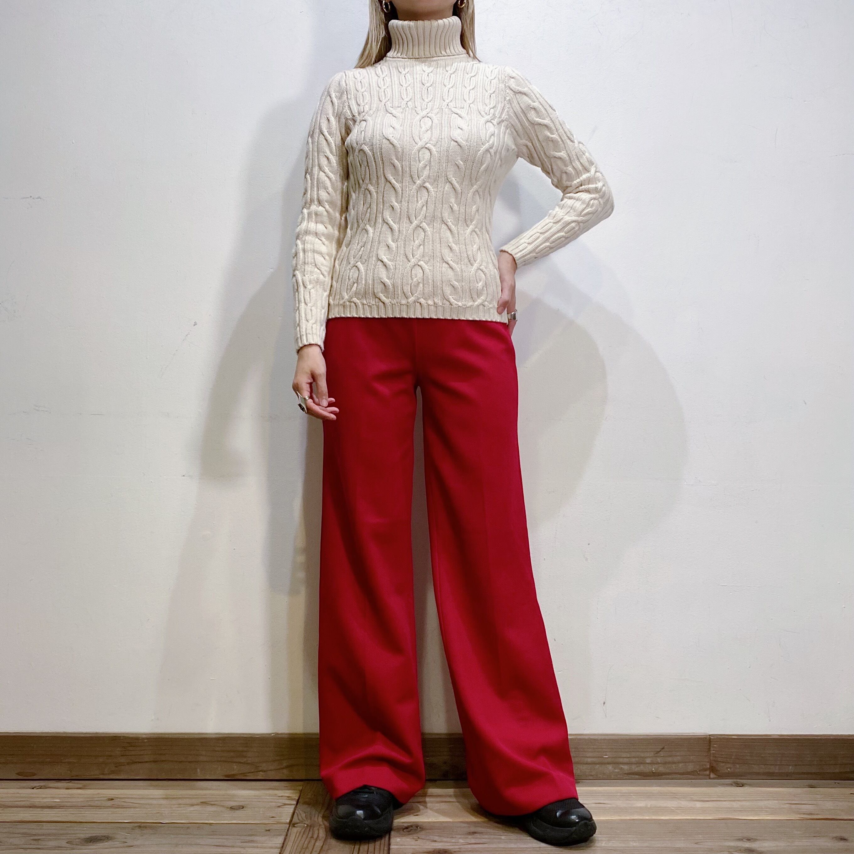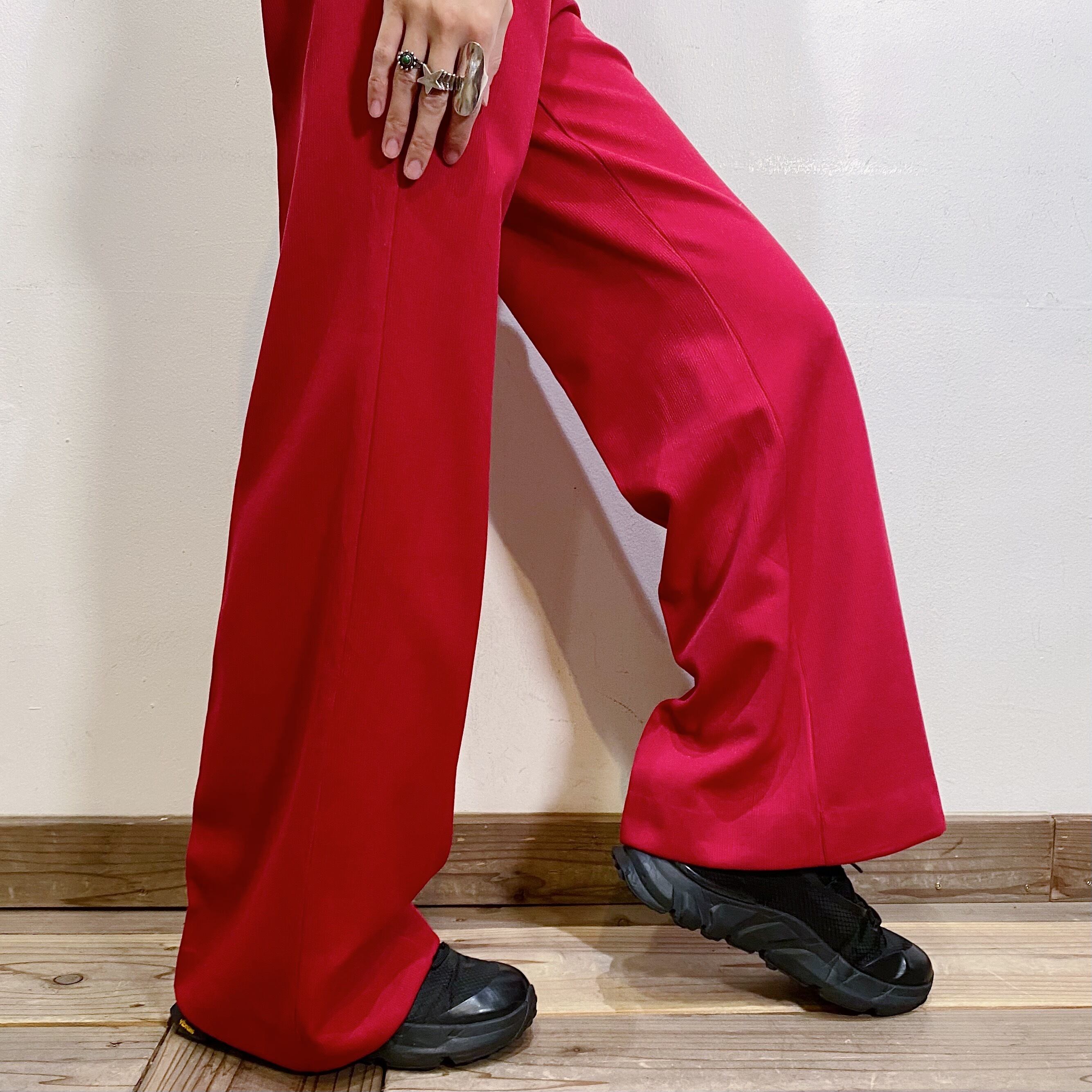 ワインレッドカラーが可愛い、70年代のポリフレアパンツです。