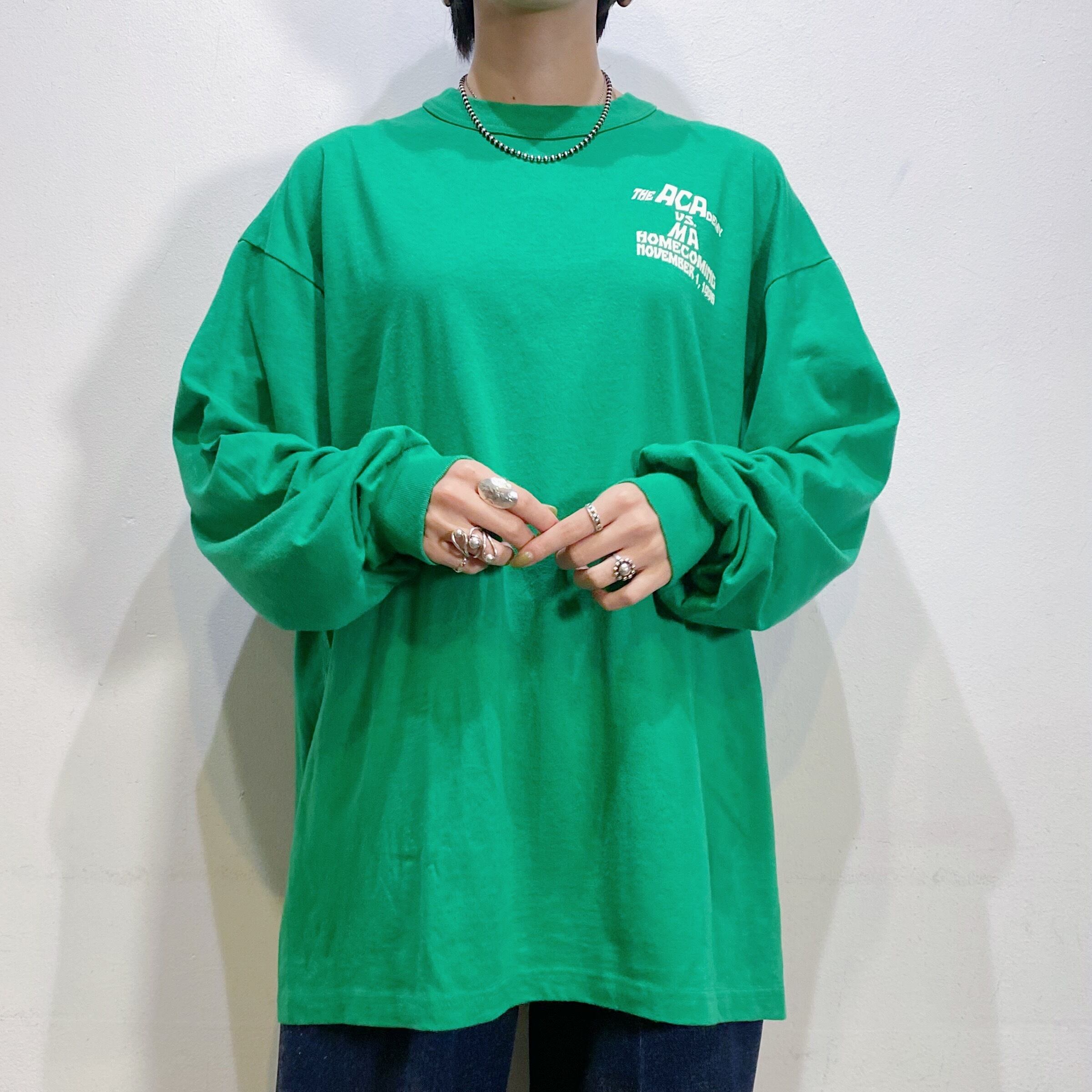 鮮やかなグリーンのボディがパッと目を惹く、90年代のロンTです。