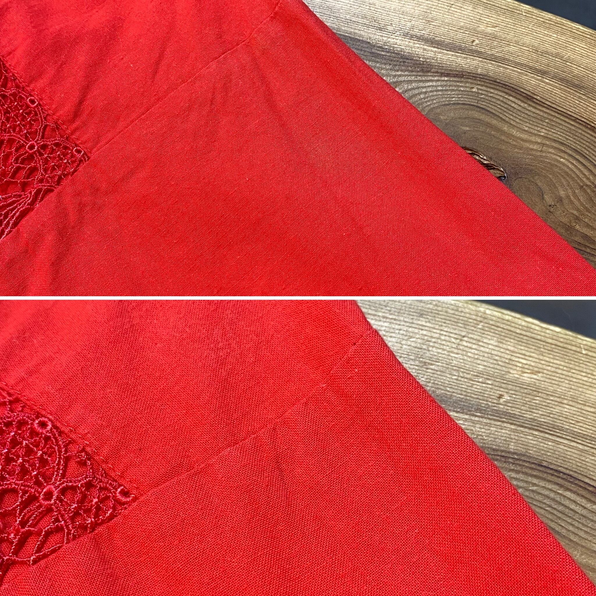 80s red and lace cotton long dress