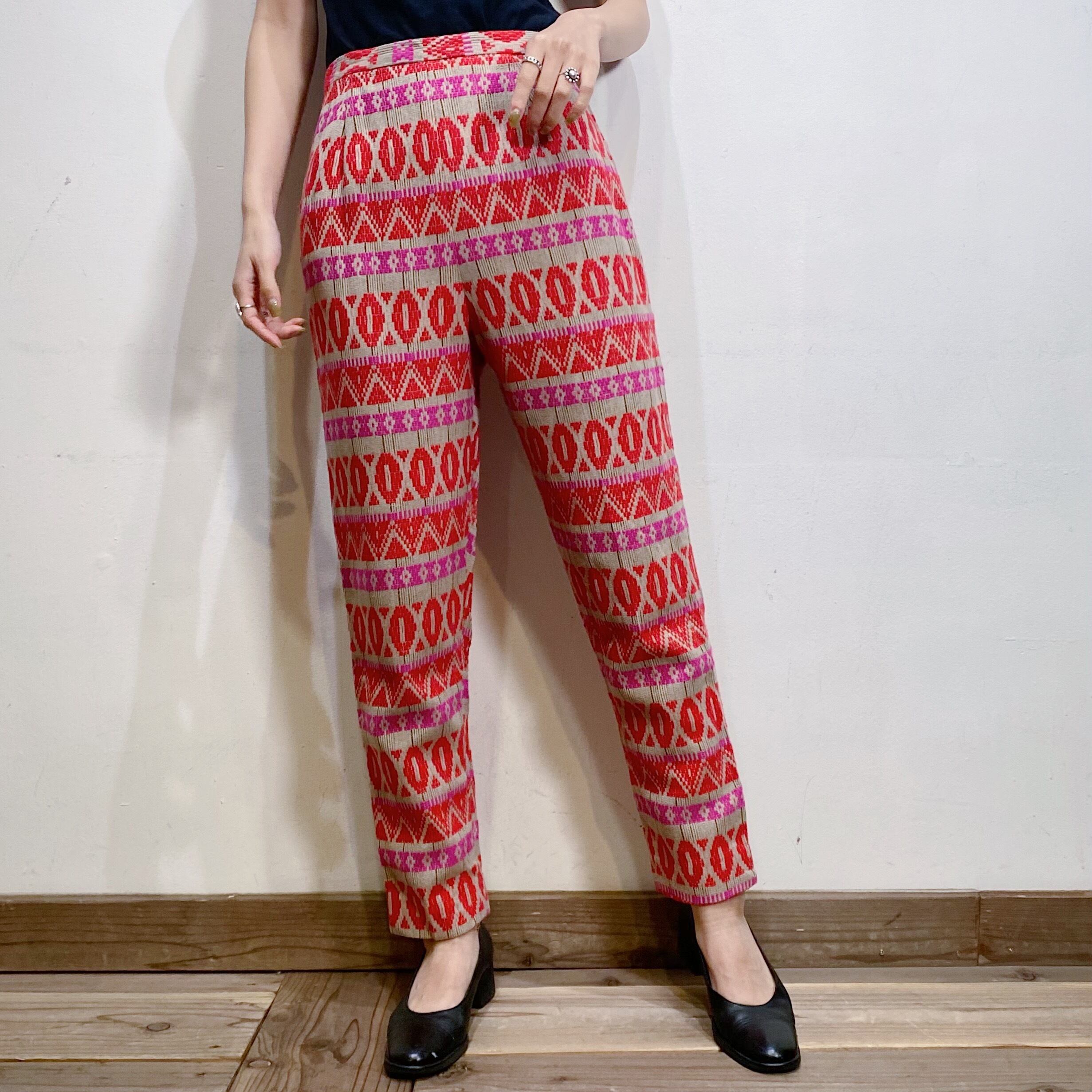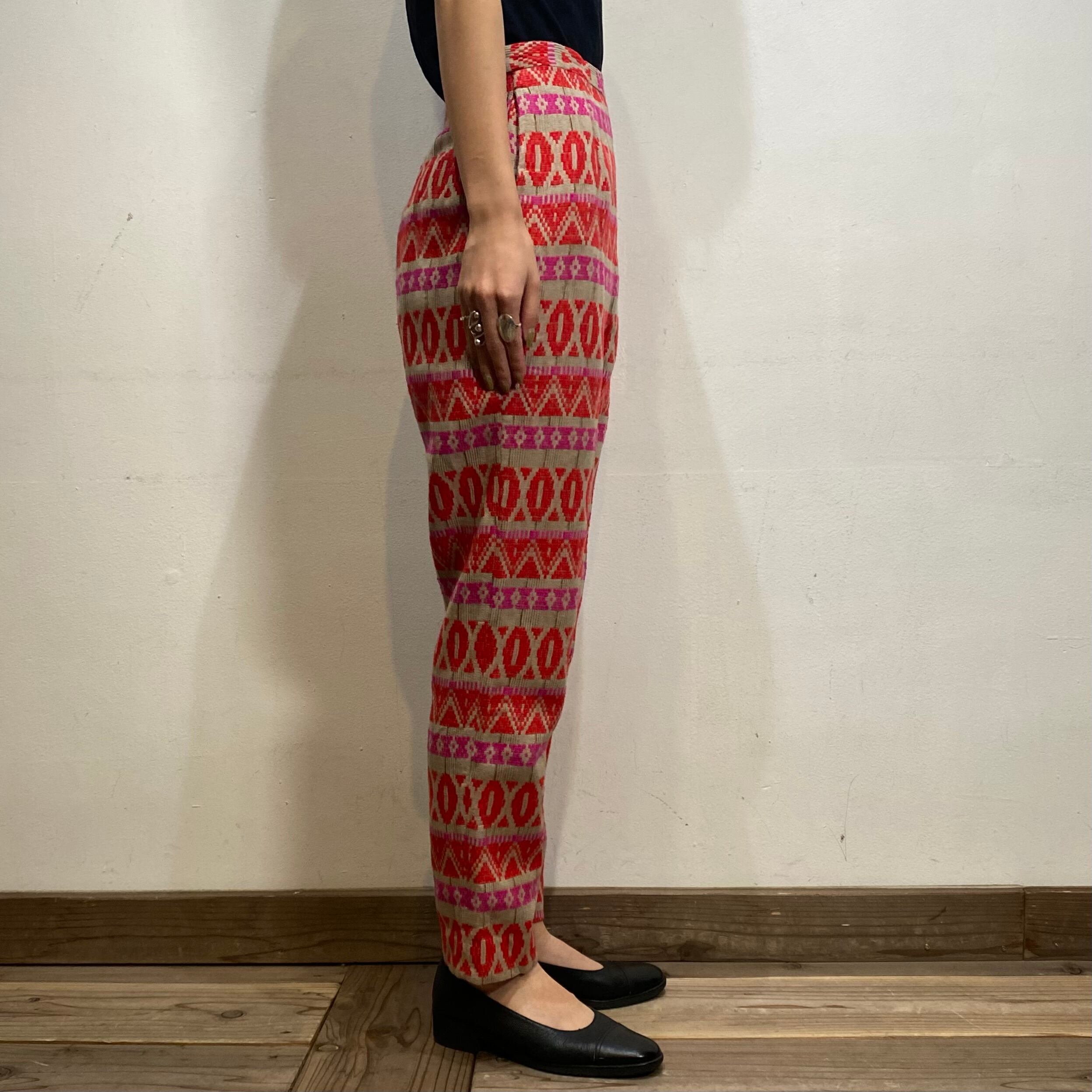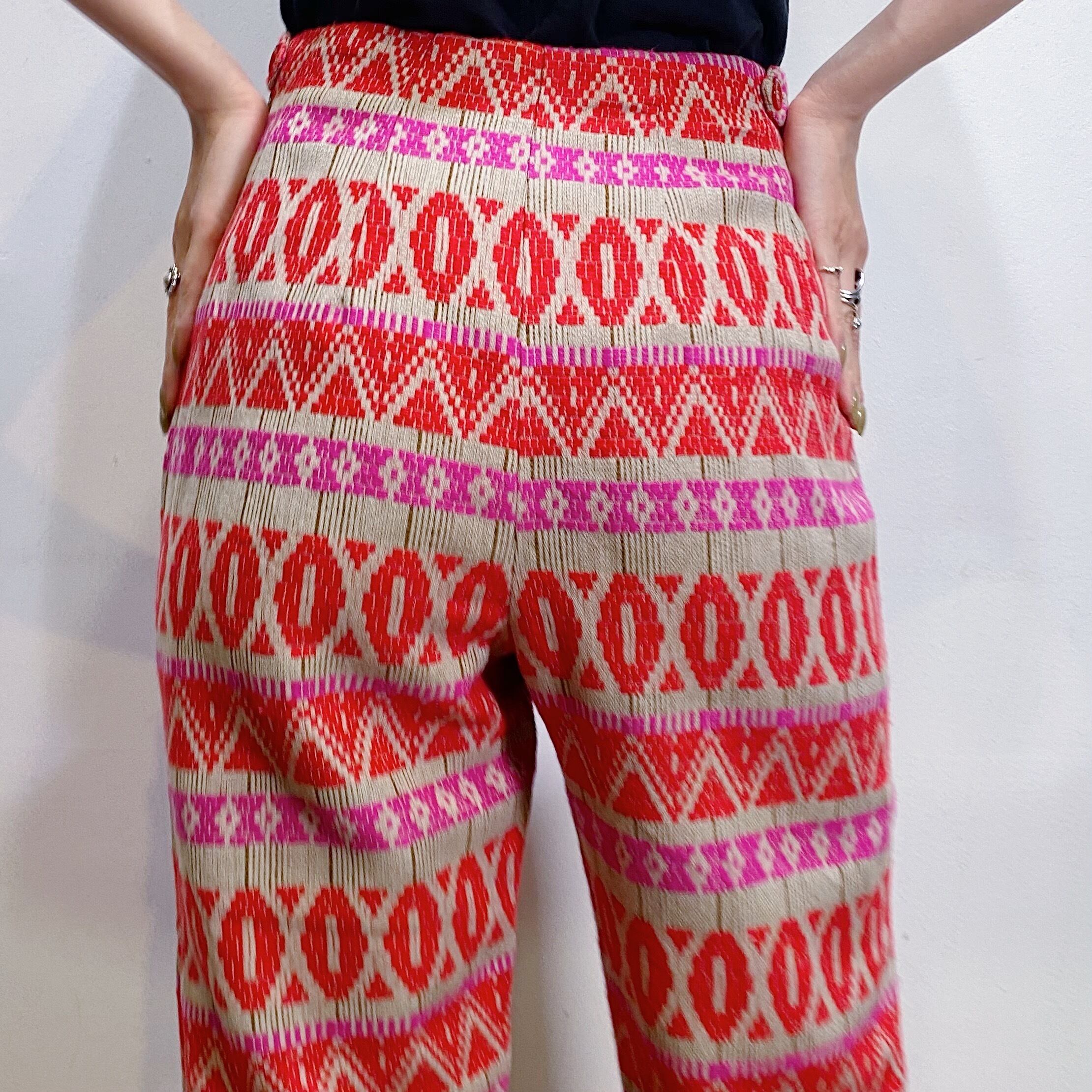 ベージュベースにピンクやレッドの色合わせが可愛い、50年代のカプリパンツです。