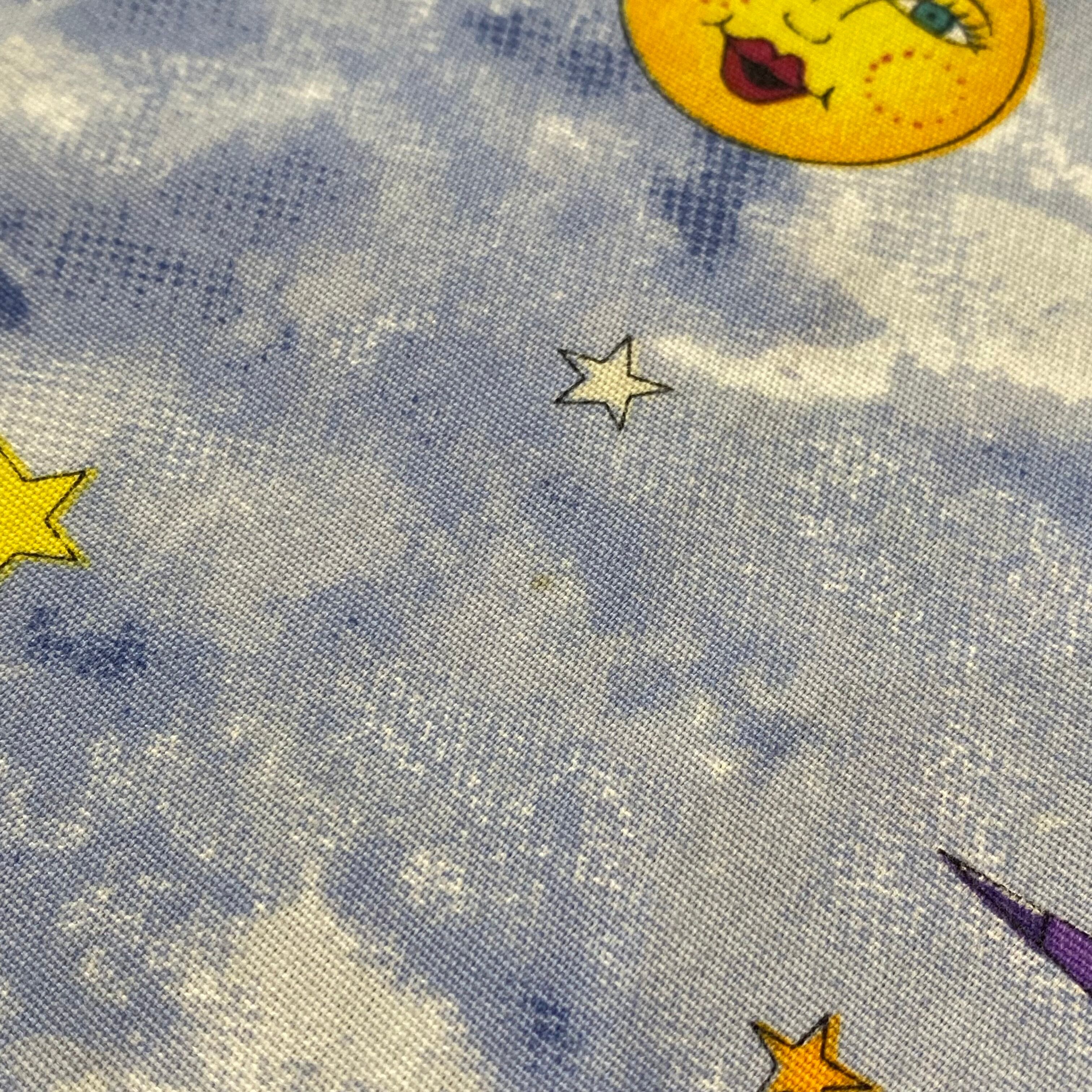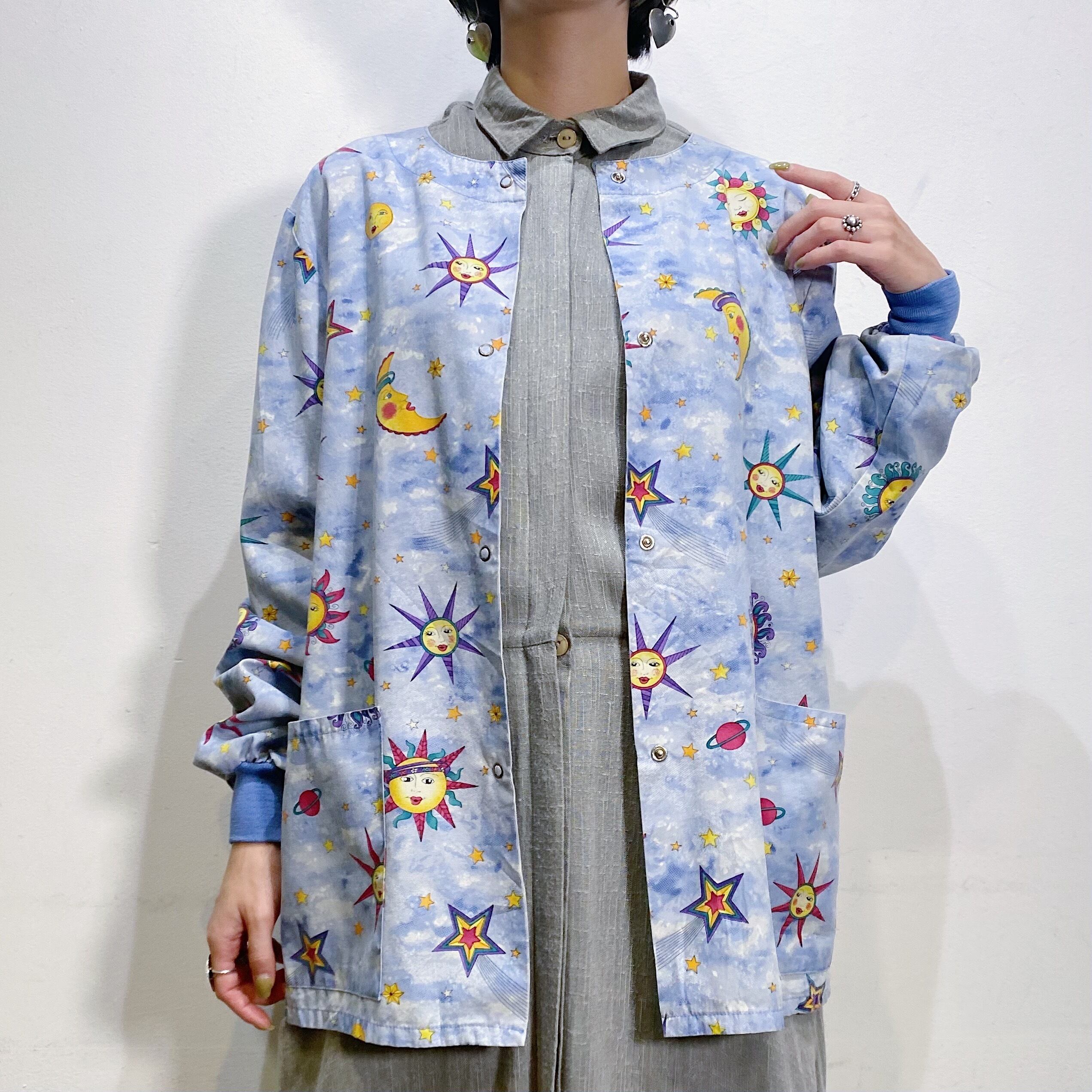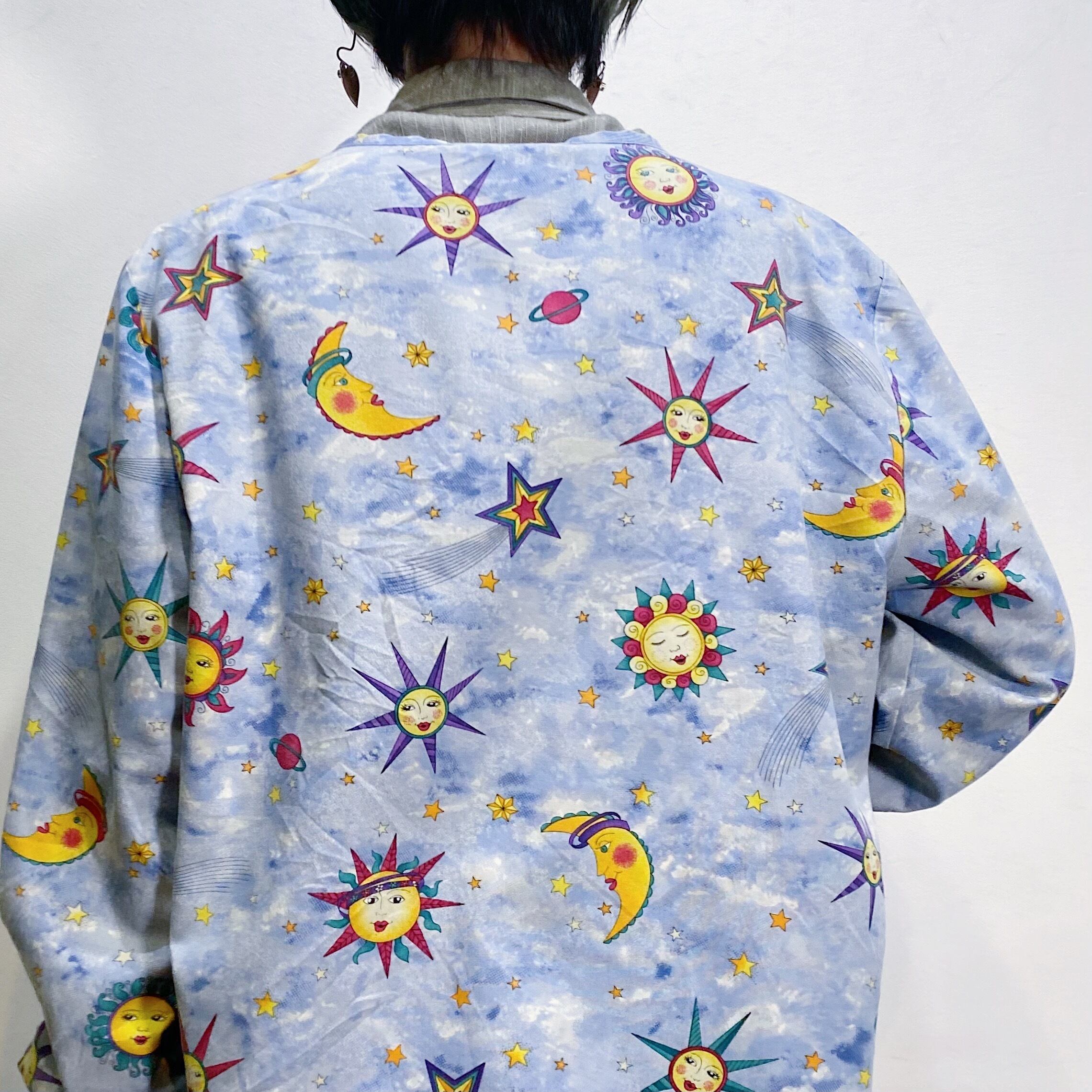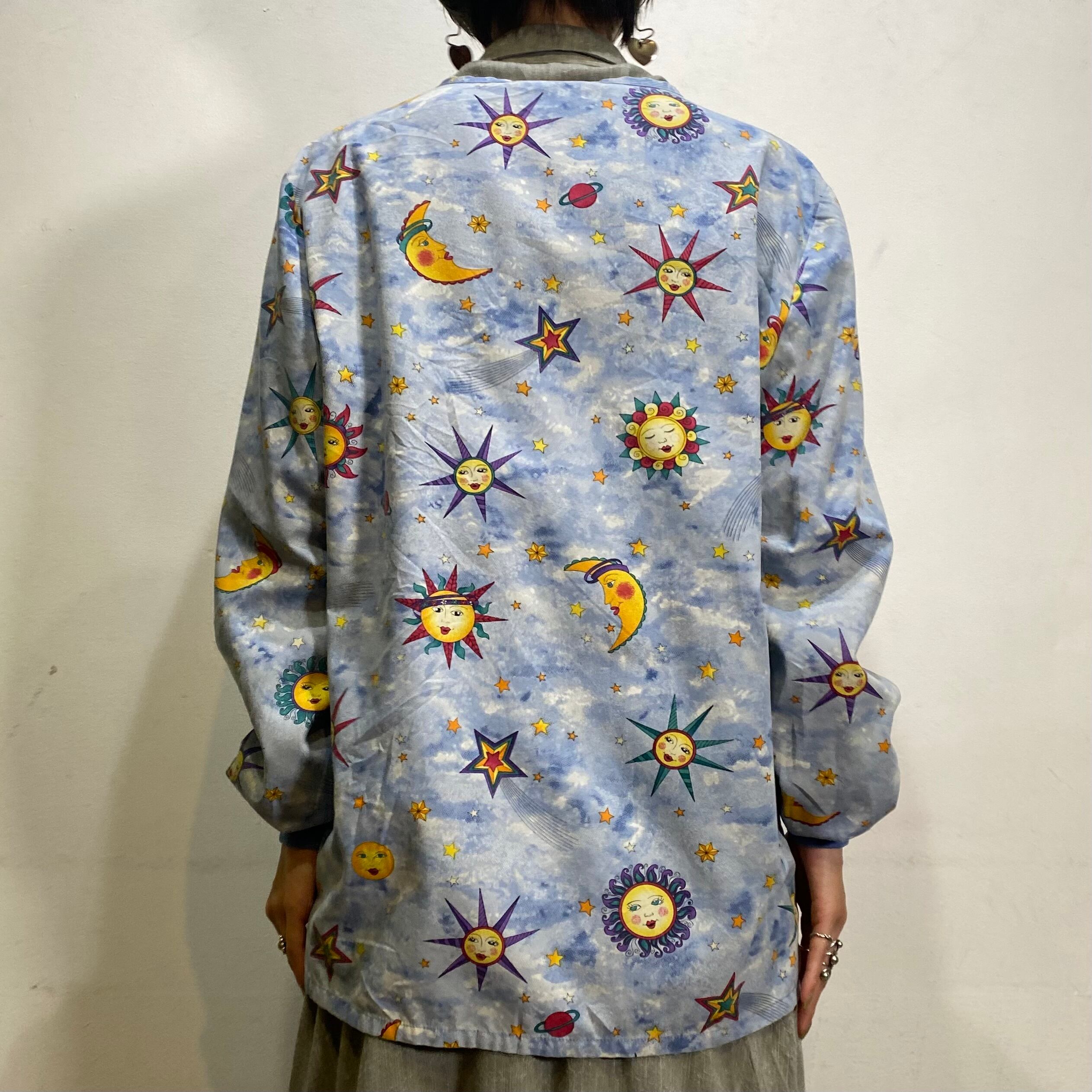 古着ならではなテキスタイルで、太陽と月の愛らしいお顔が魅力の一枚。