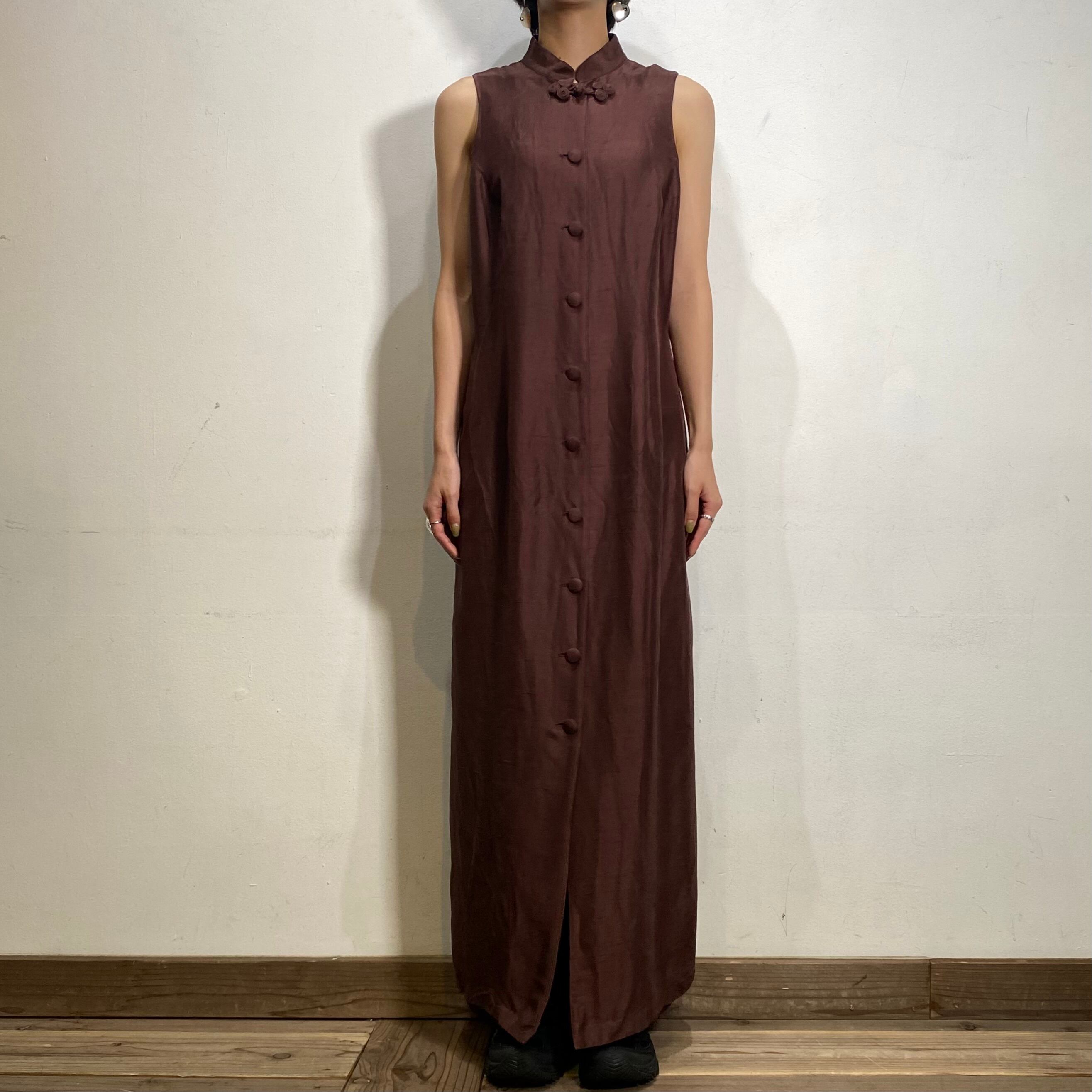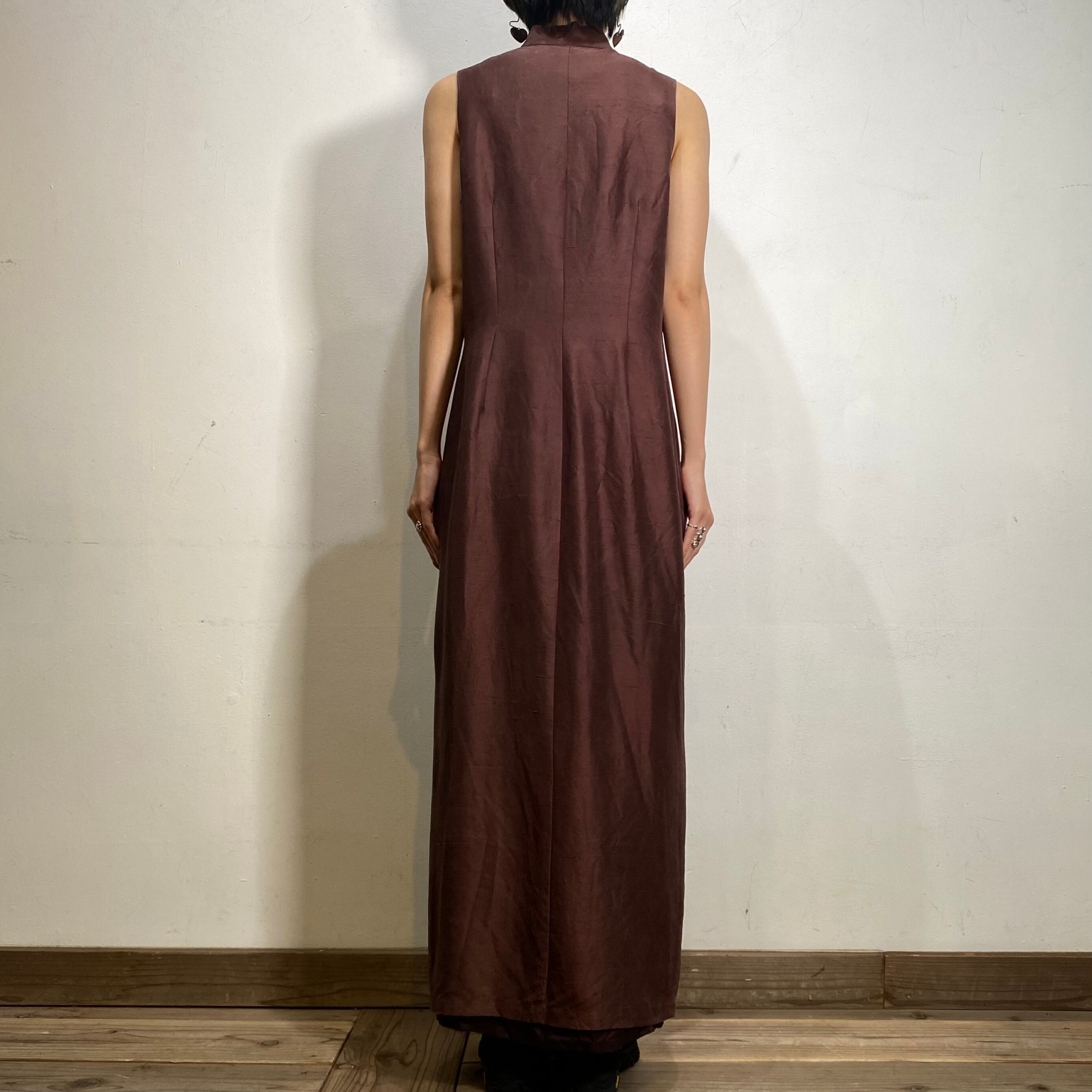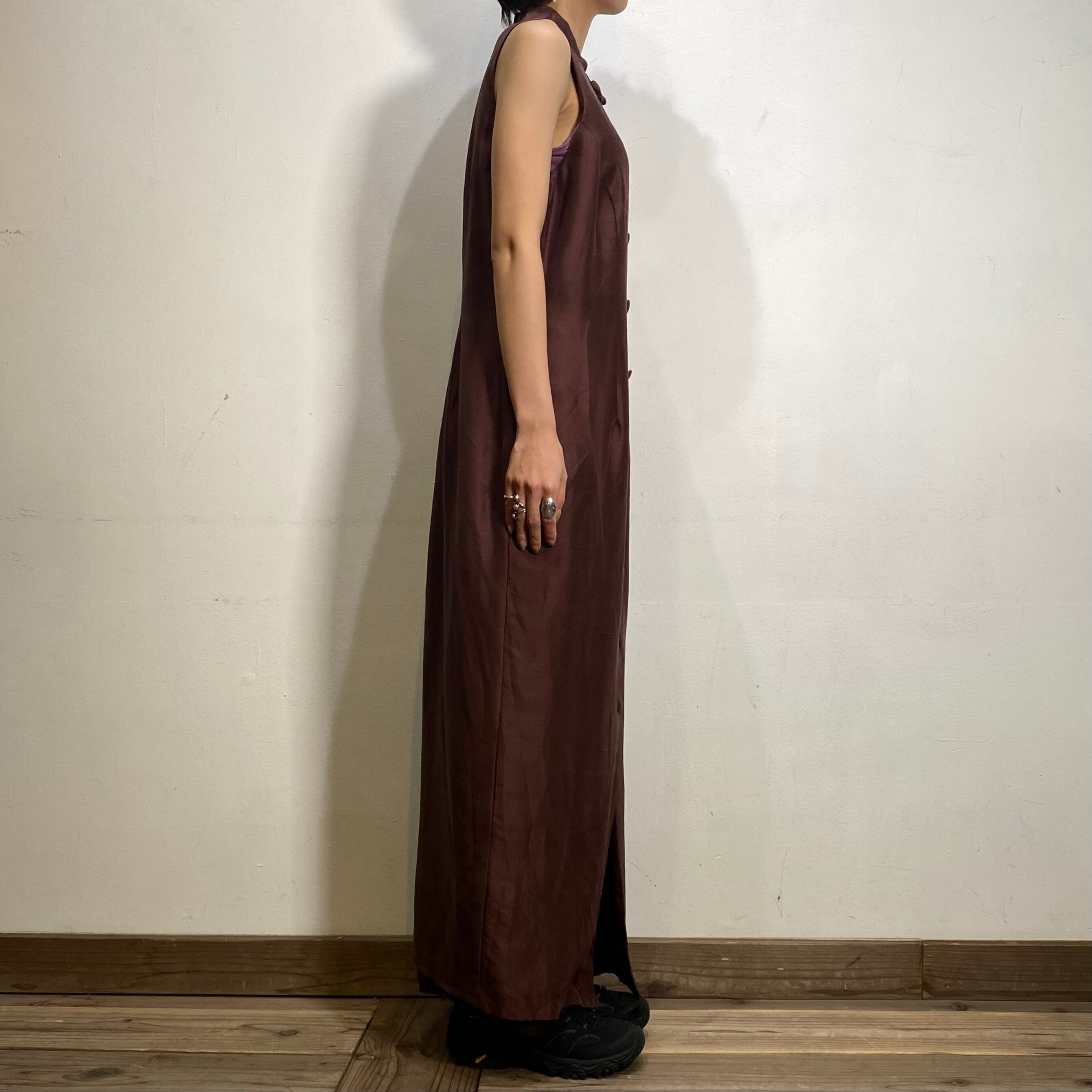 ブラウンカラーで着こなしやすい、80年代のノースリーブワンピースです。