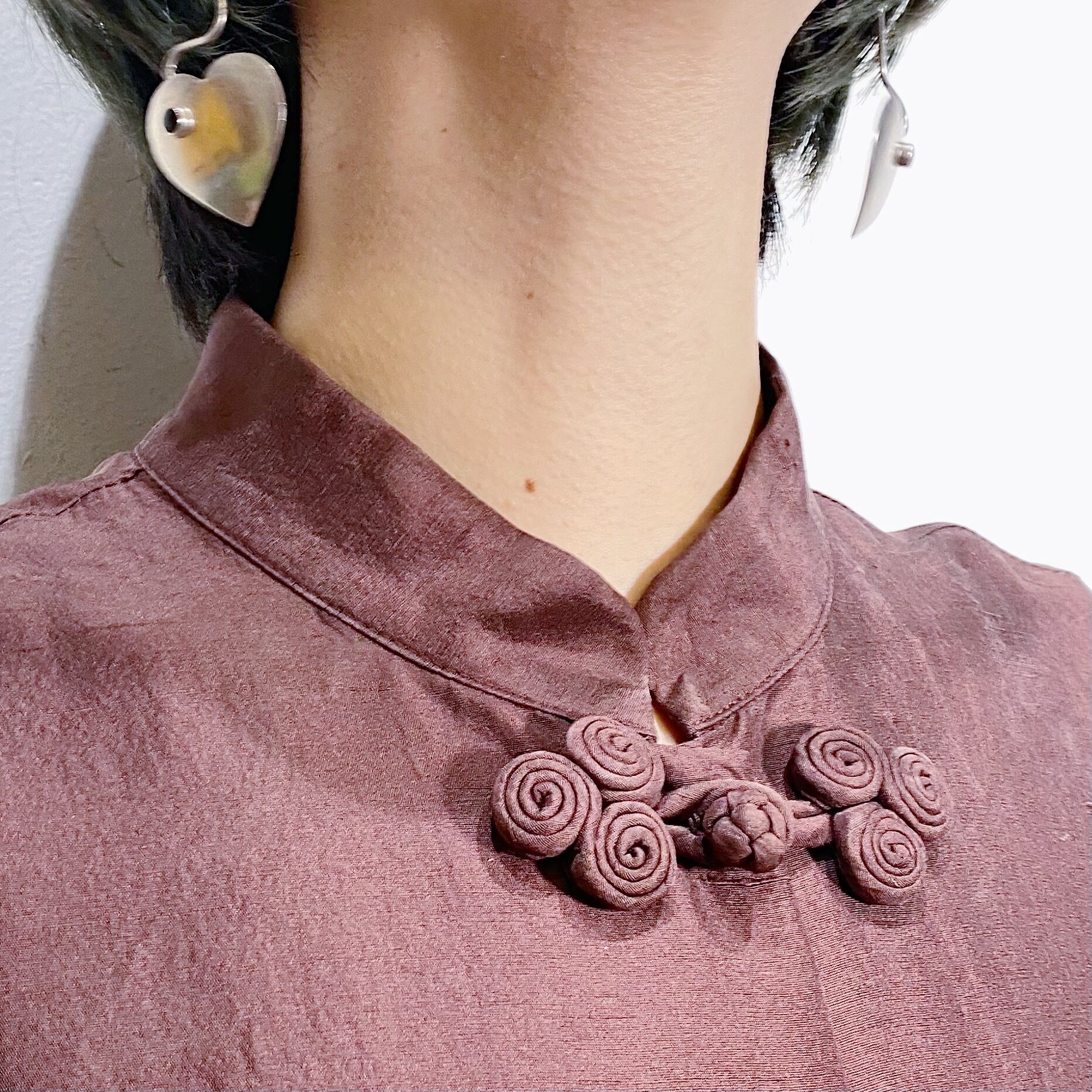 チャイナな雰囲気のある首元に、上質なシルク素材が魅力の一枚。