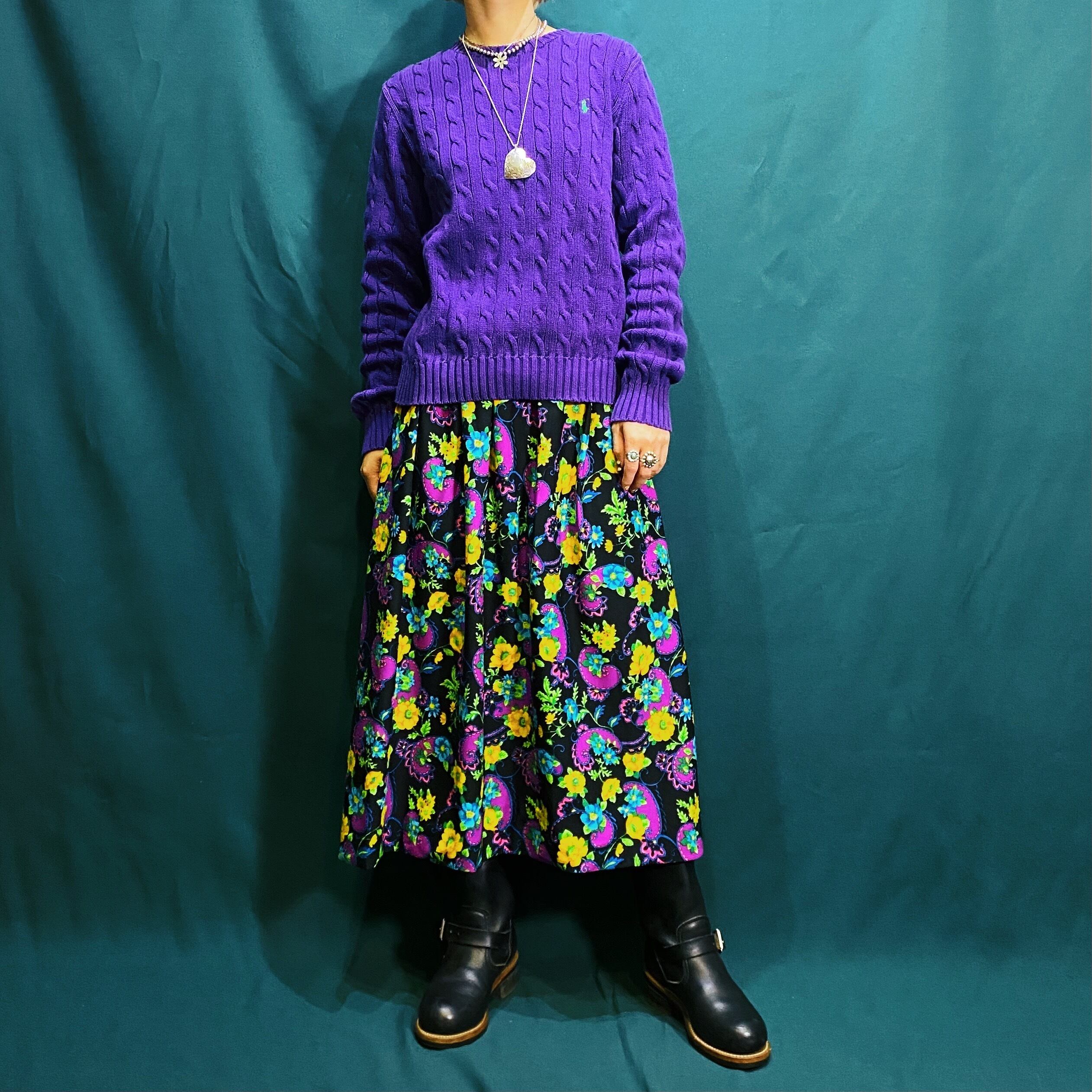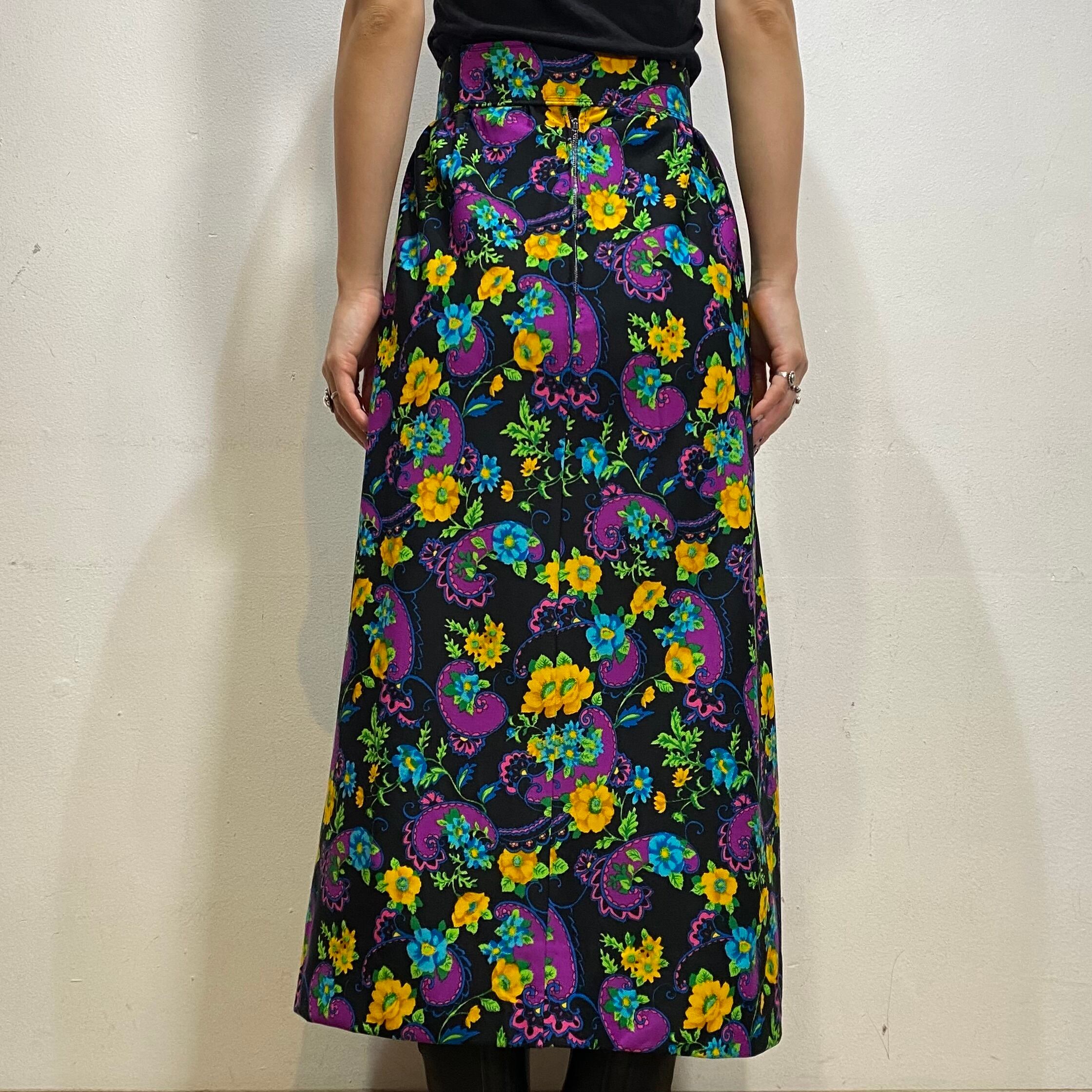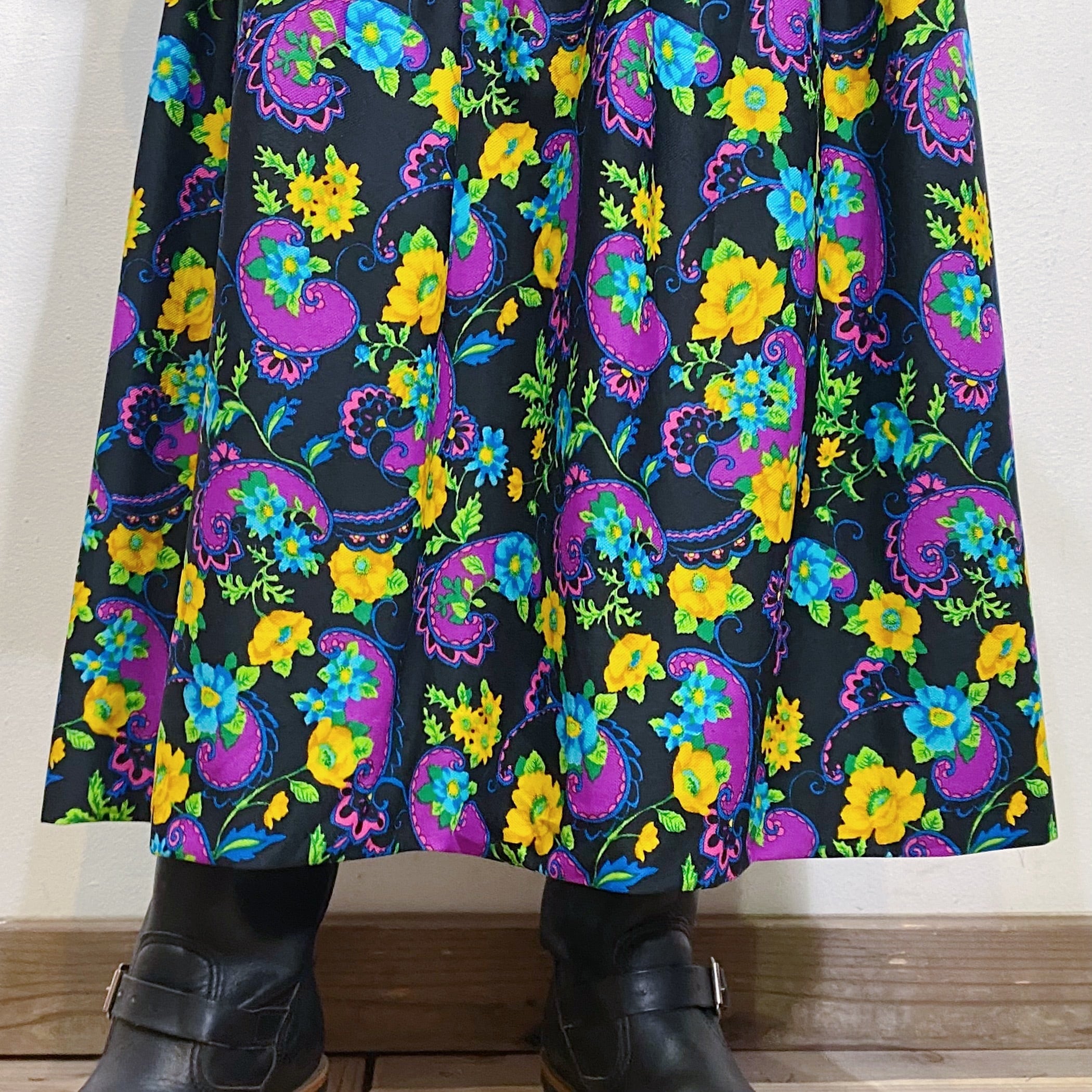 ペイズリーやお花の柄が可愛い60~70年代のロングスカートです。