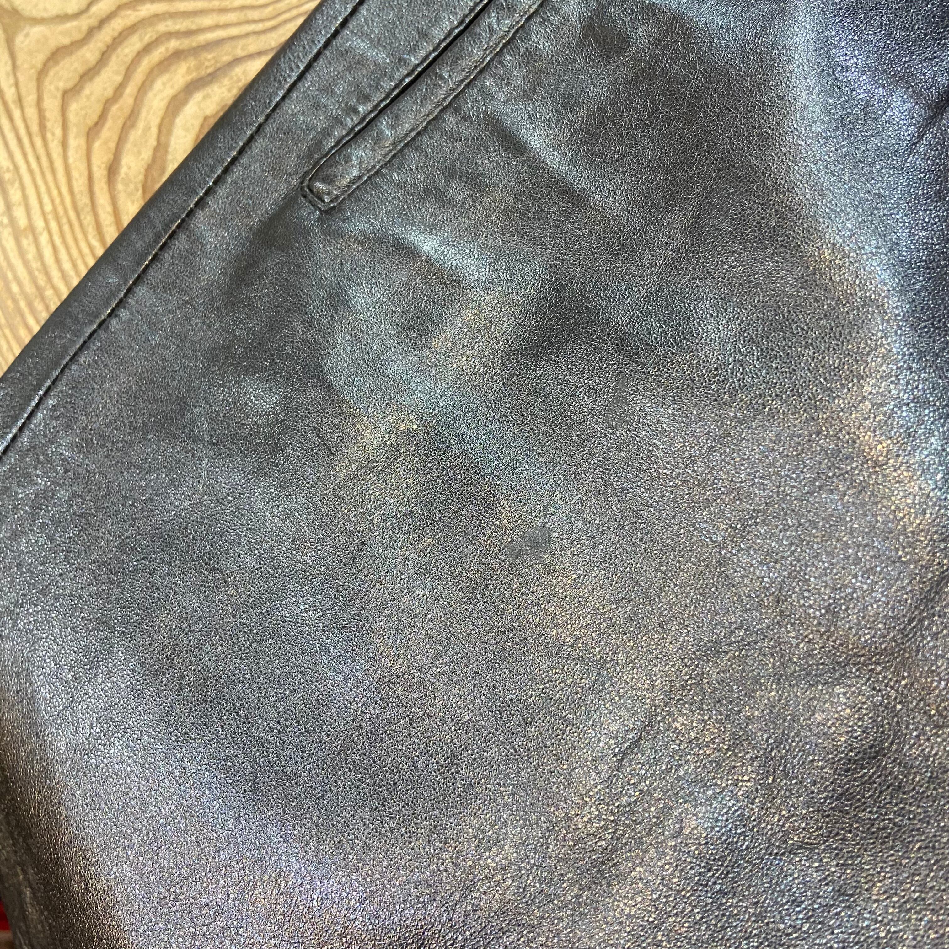 ウエスト付近・裾の方にレザーの削れが見受けられますが、目立たず使用には問題はございません。