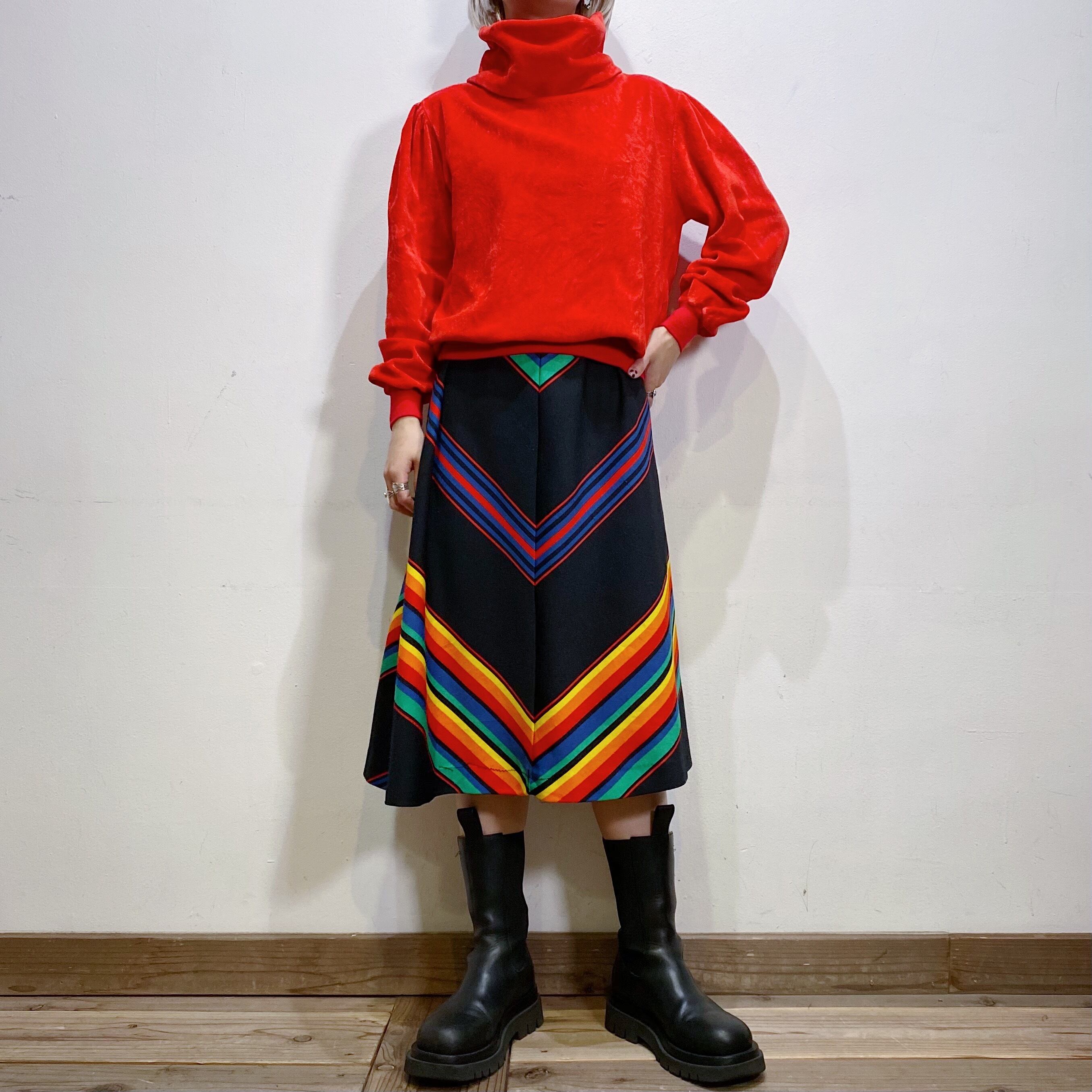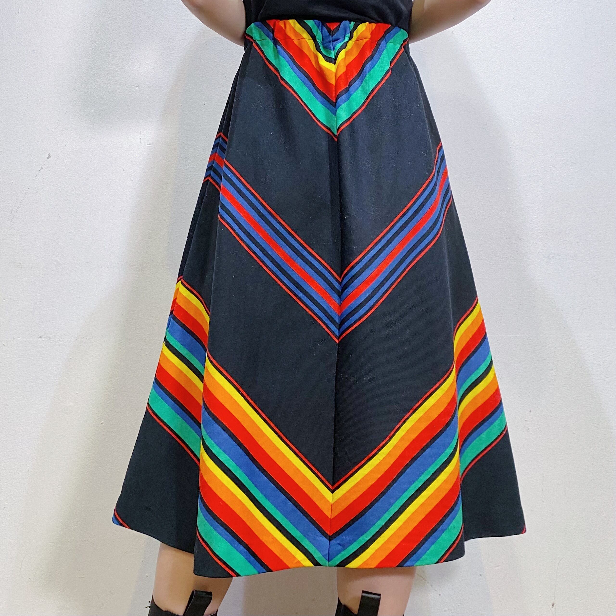 ブラックベースにレインボーのストライプが映える、70年代のスカートです。