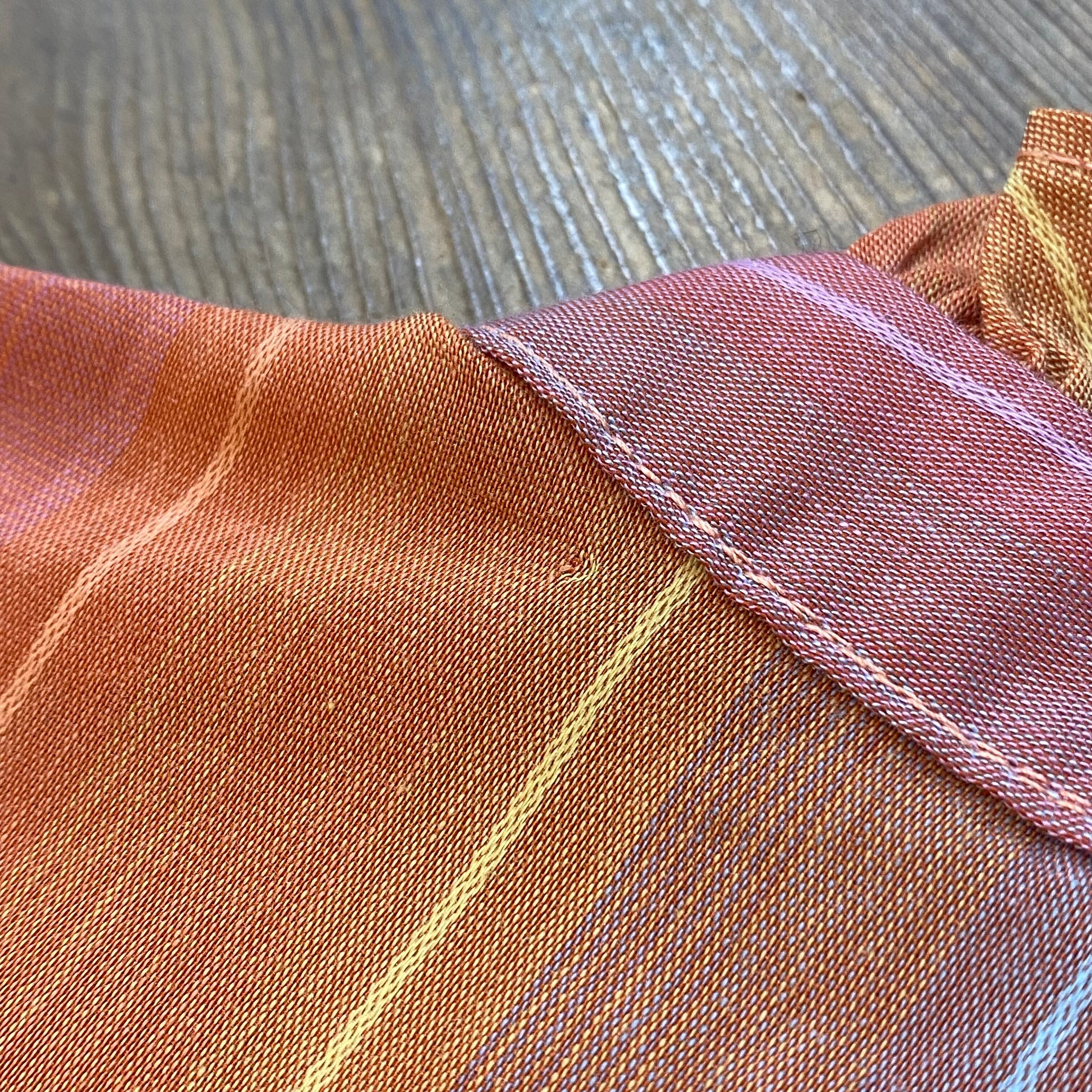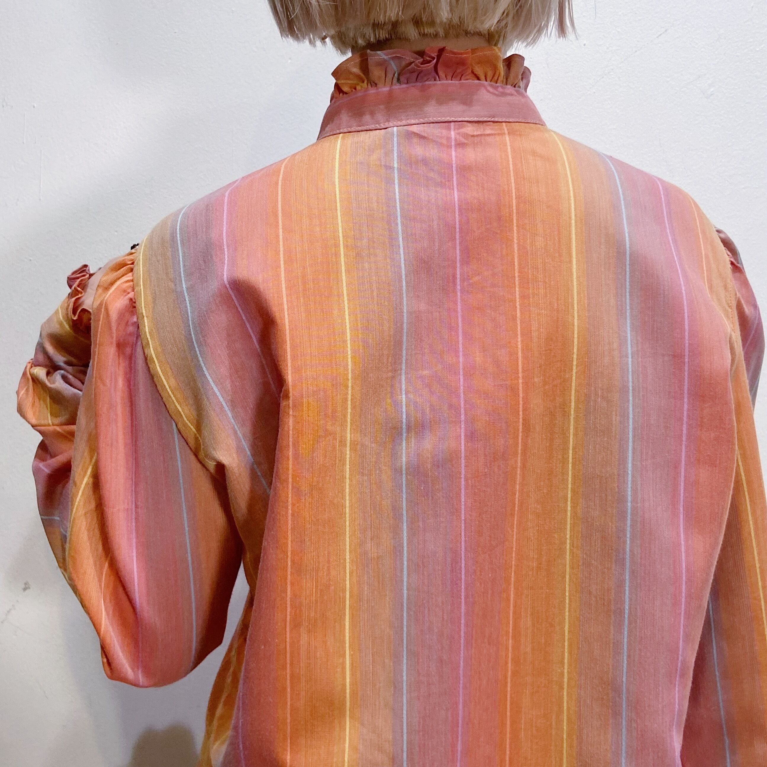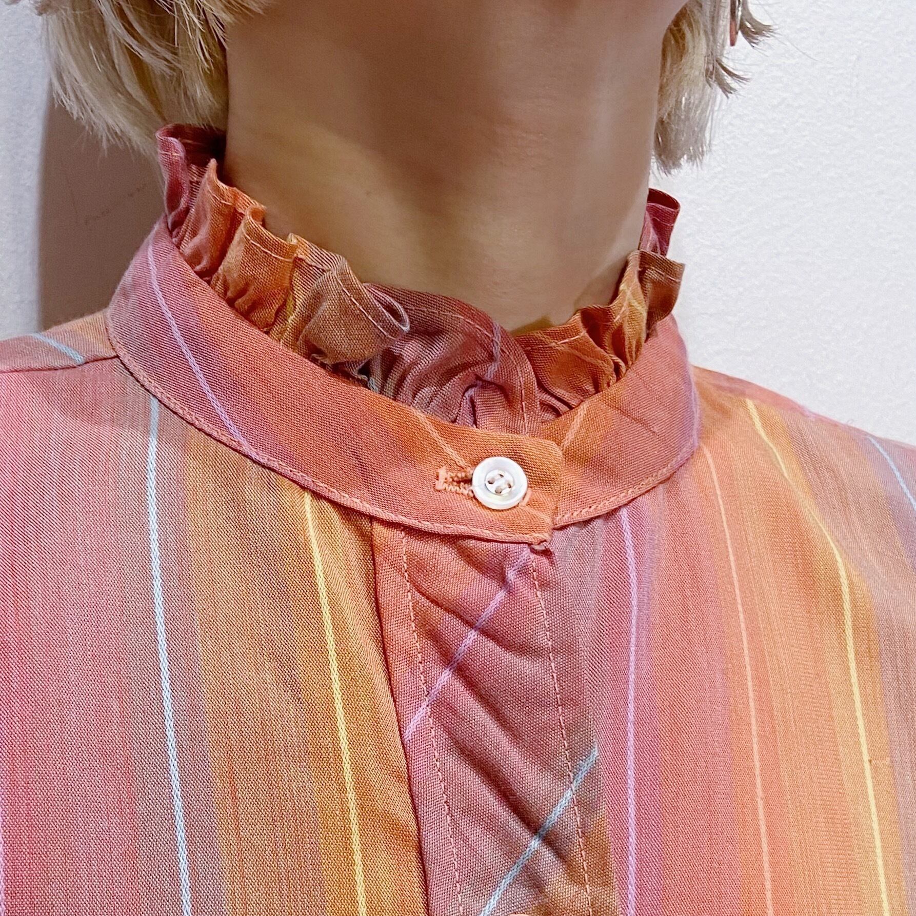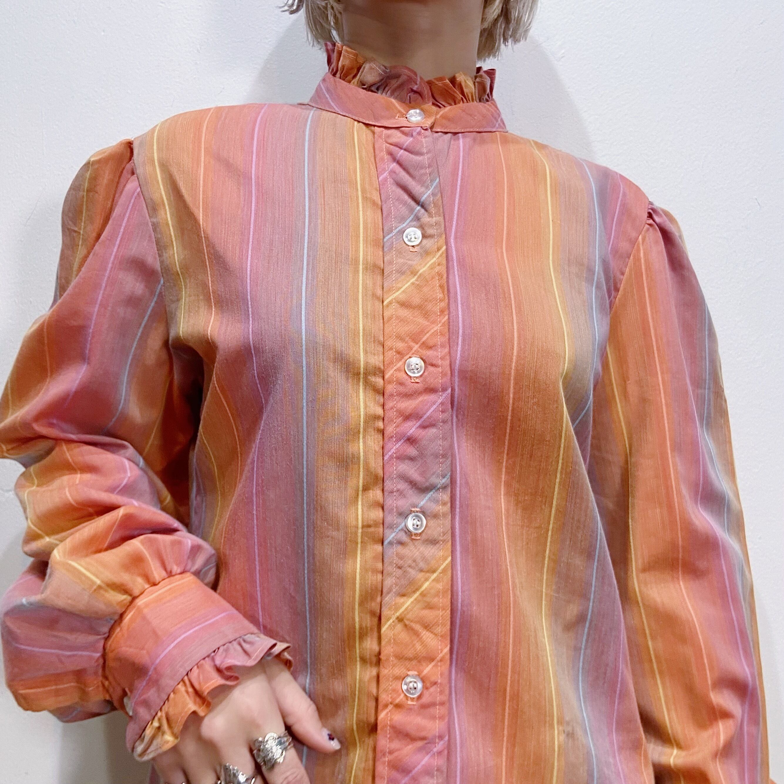 オレンジのグラデーションのような色合いが可愛い、70年代の長袖シャツです。
