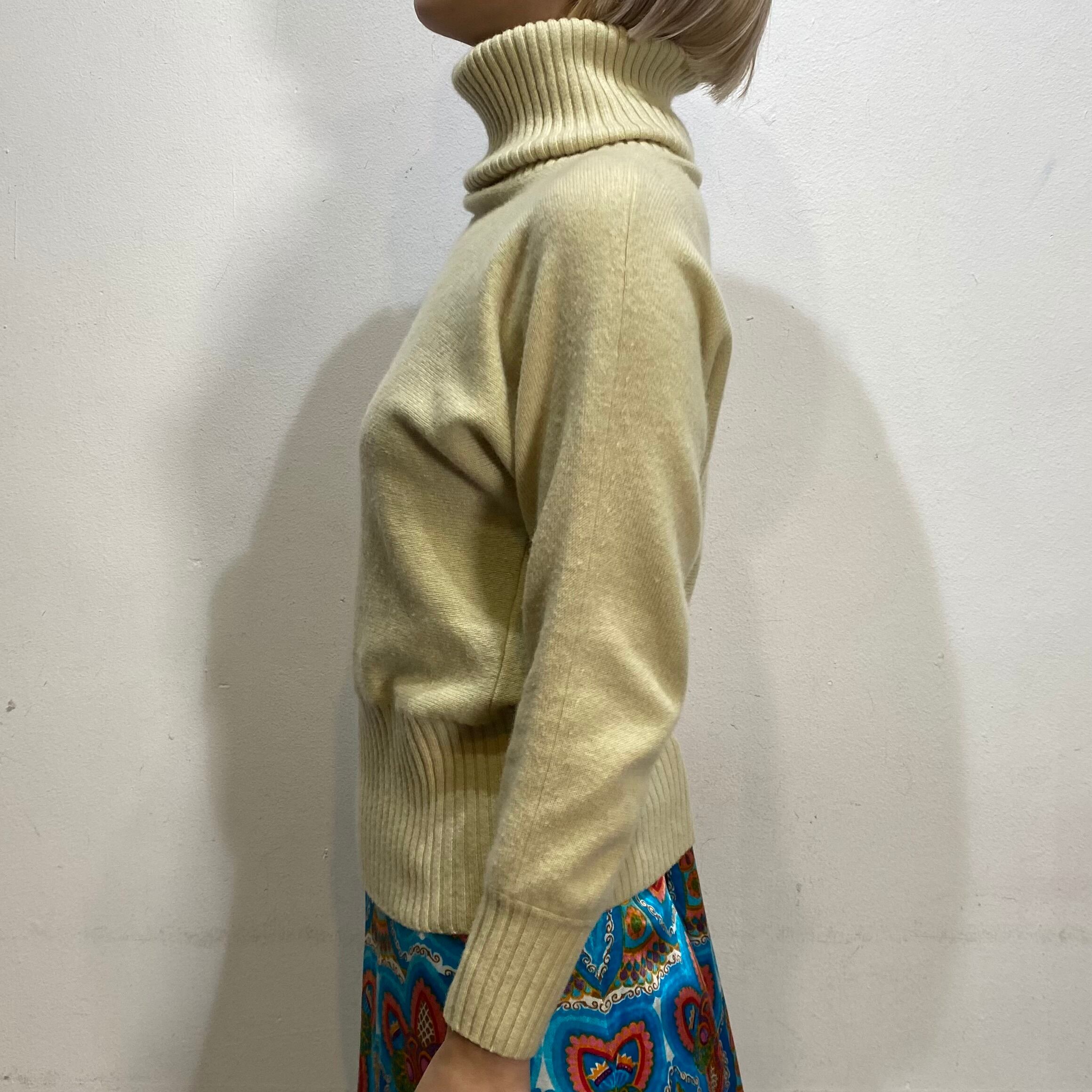こちらは落ち着きのあるレモンイエローカラーが可愛く、しっかりと高さのあるタートルネックがポイント。