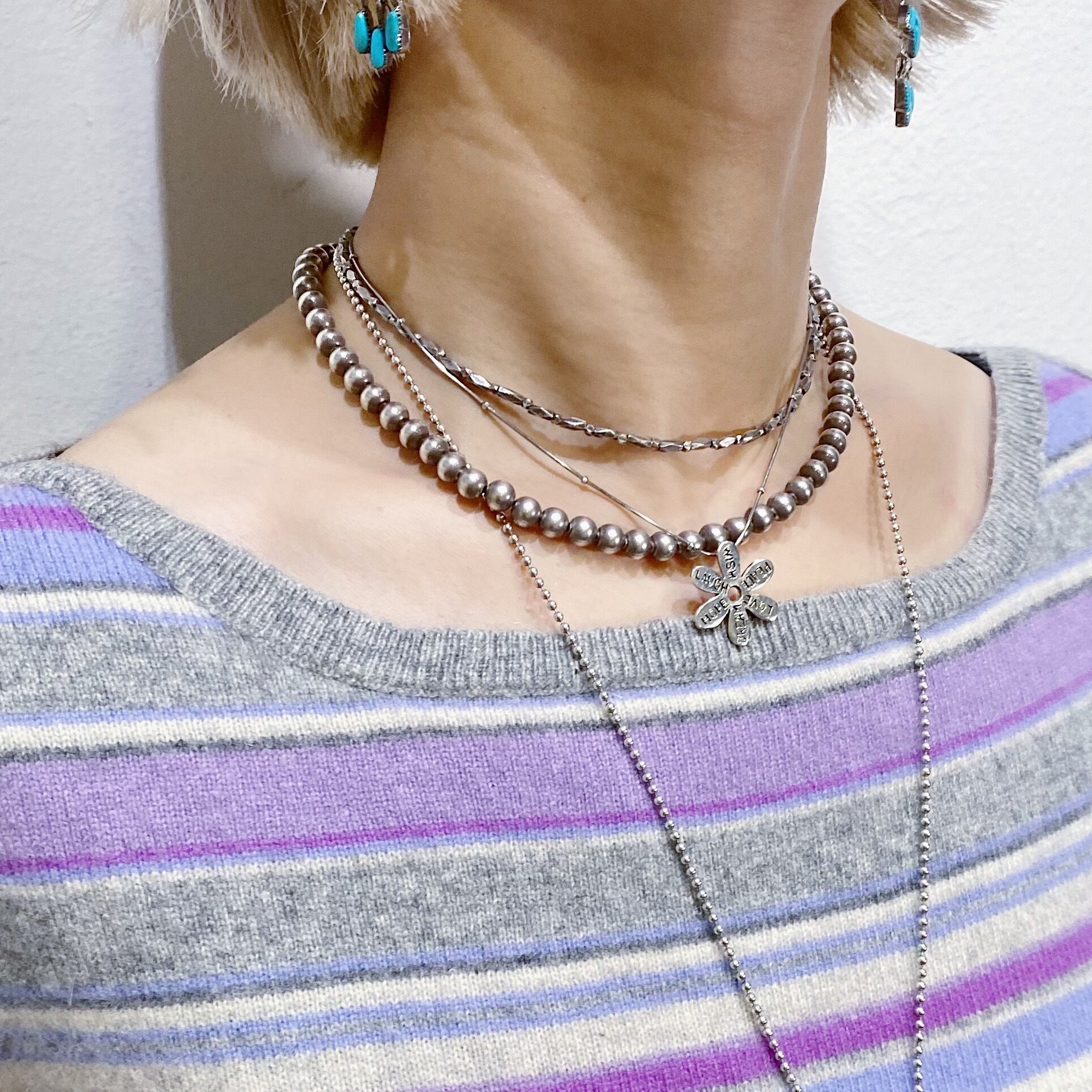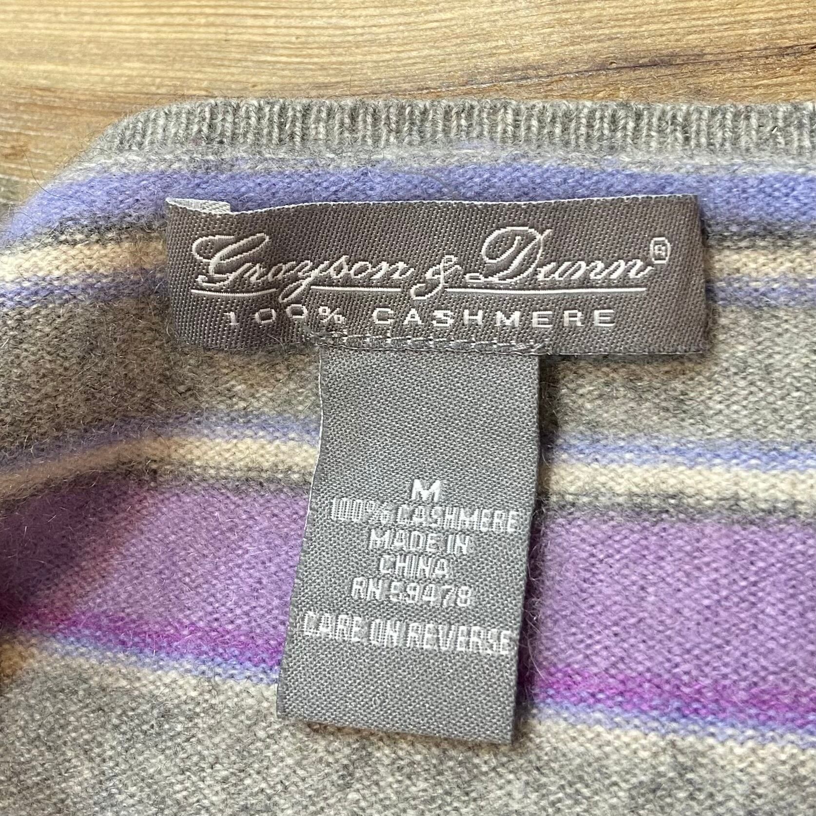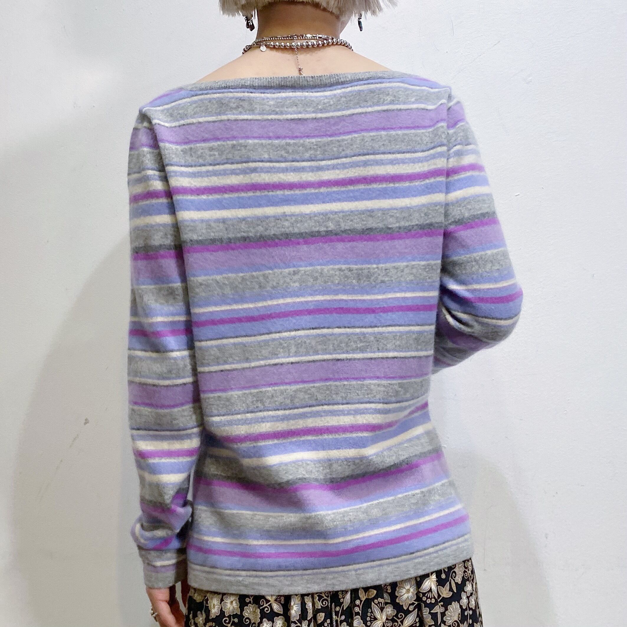 グレーとパープルのストライプの色合わせが可愛い、カシミヤセーターです。