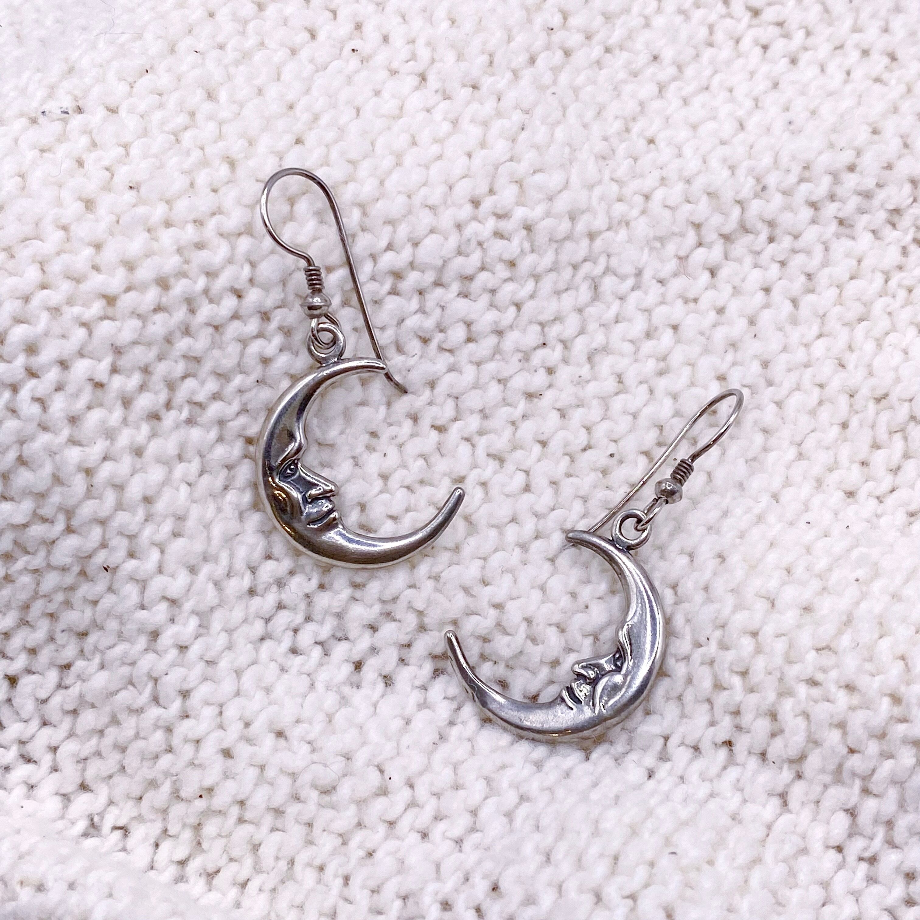 何とも言えない絶妙な表情のお月さまが可愛い、925シルバーのピアスです。