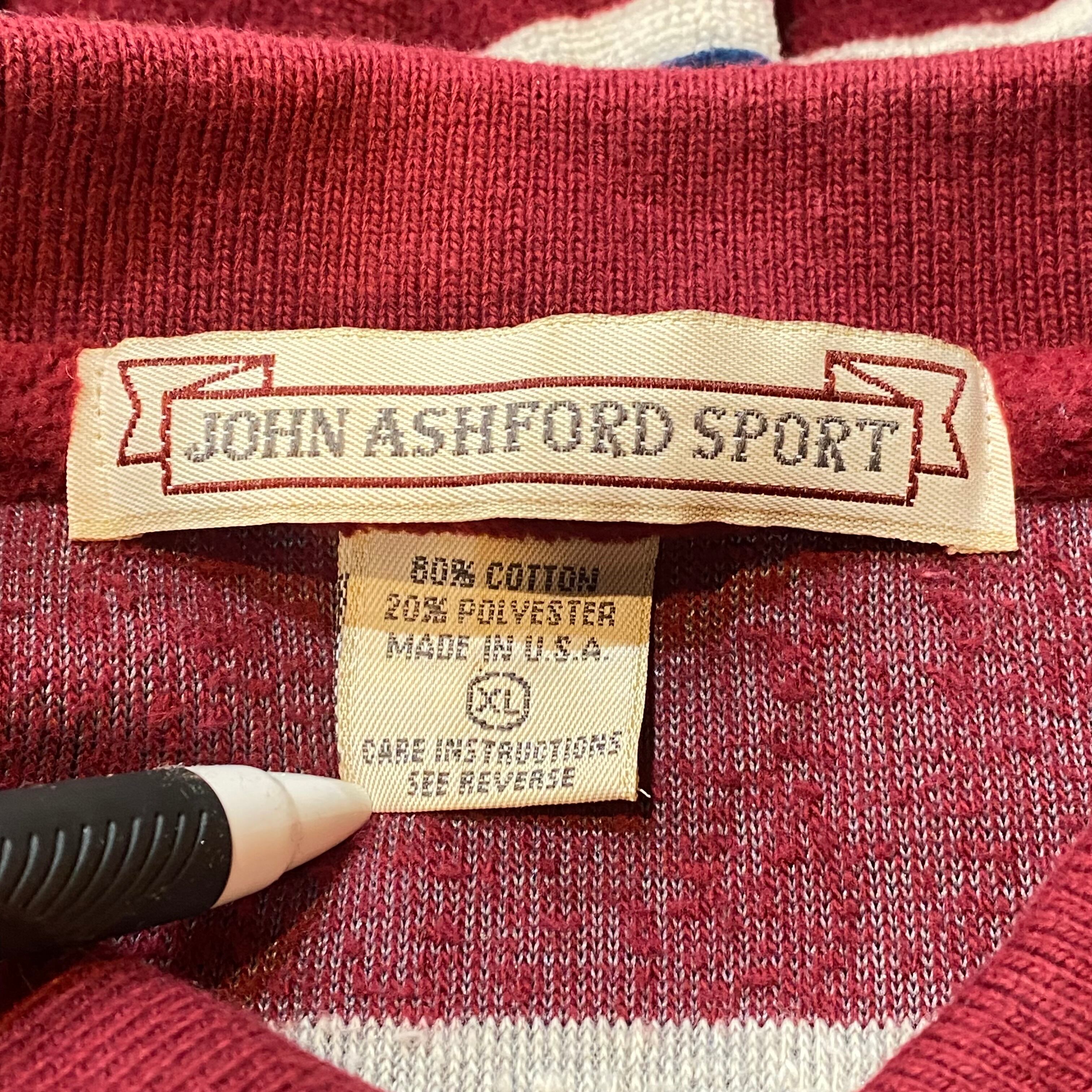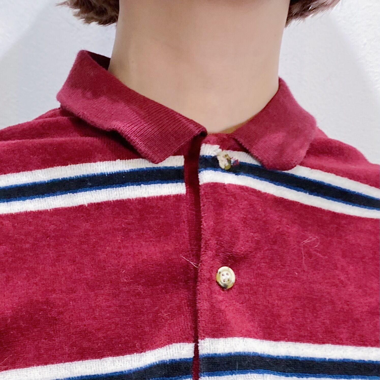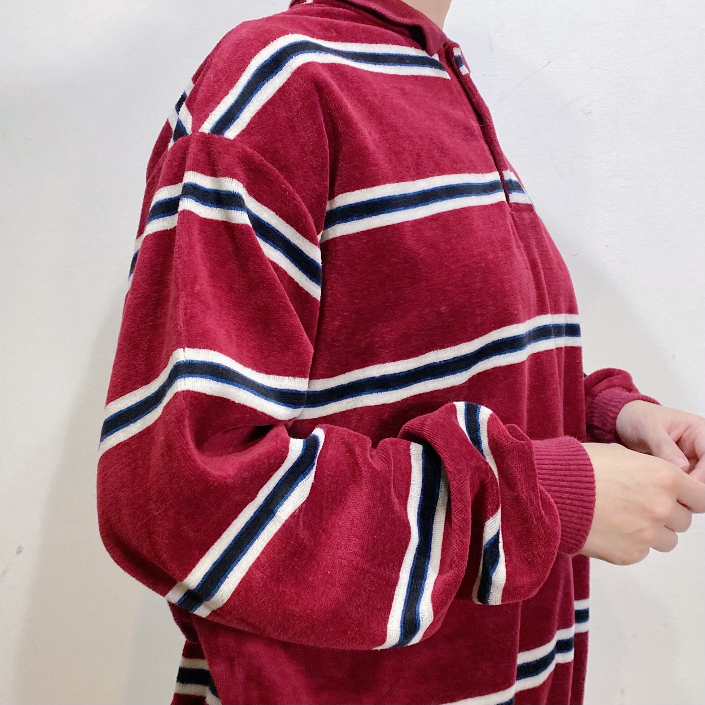 バーガンディーのストライプが可愛い、80年代の長袖トップスです。