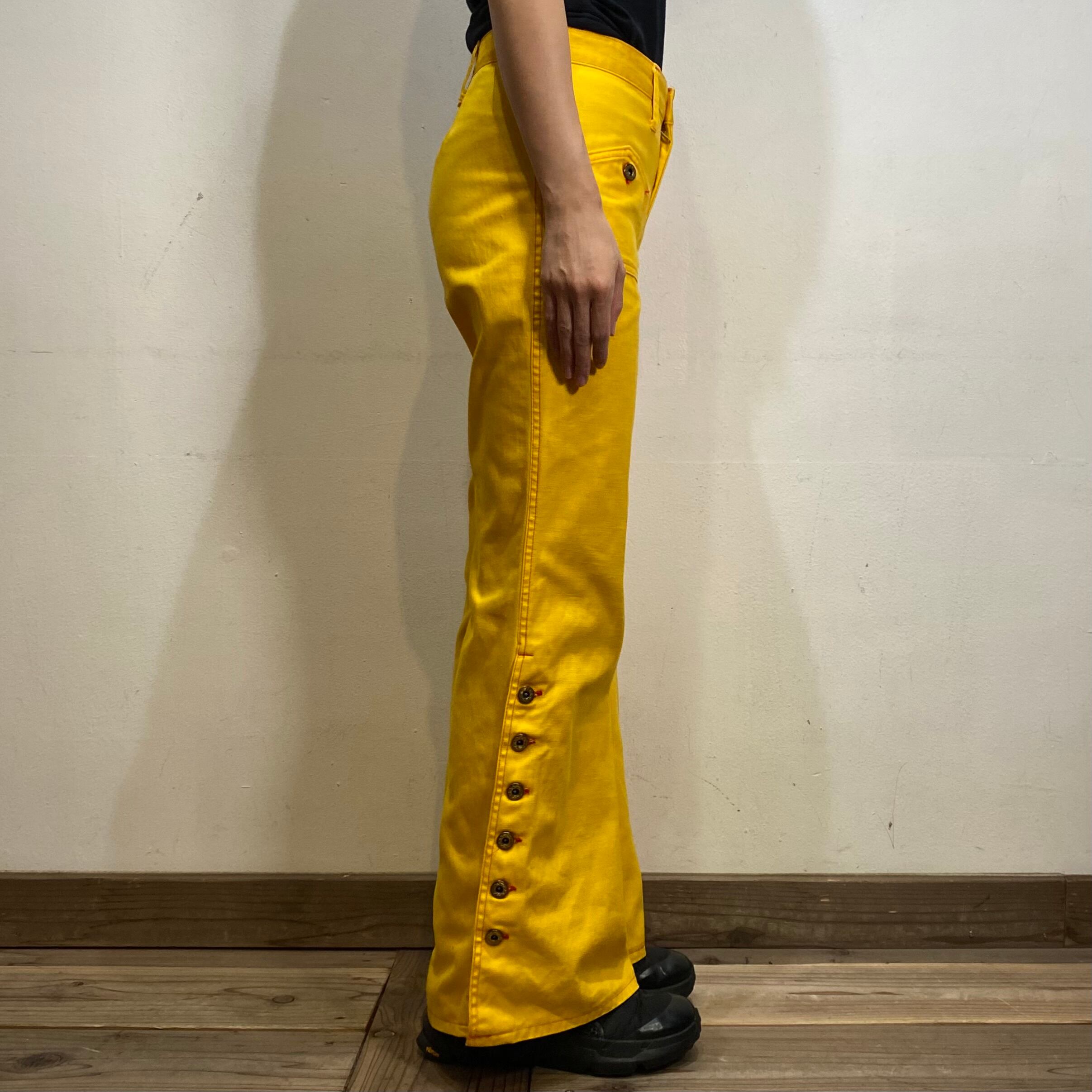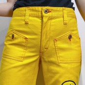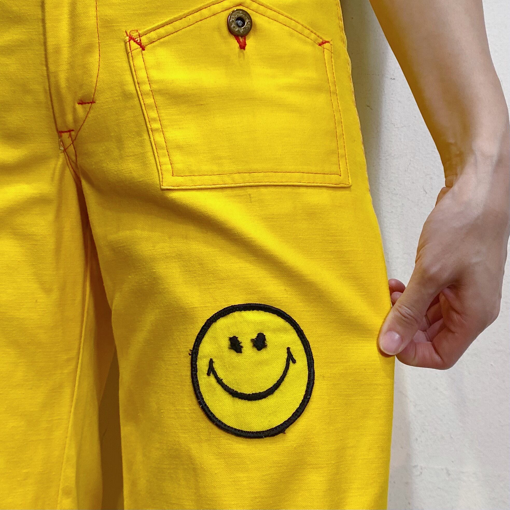 ハッピーなイエローカラーにスマイルのワッペンが可愛い、70年代のパンツです。