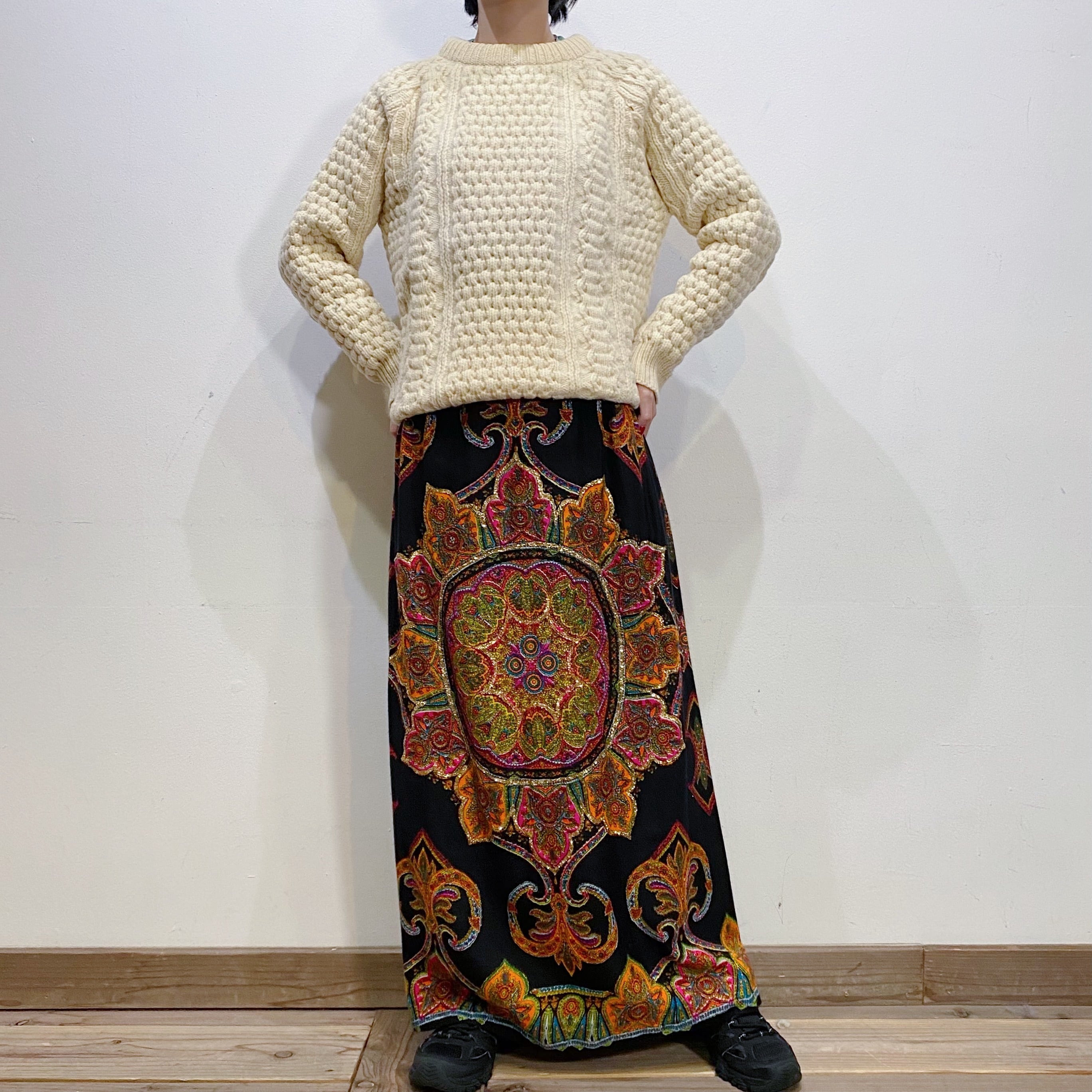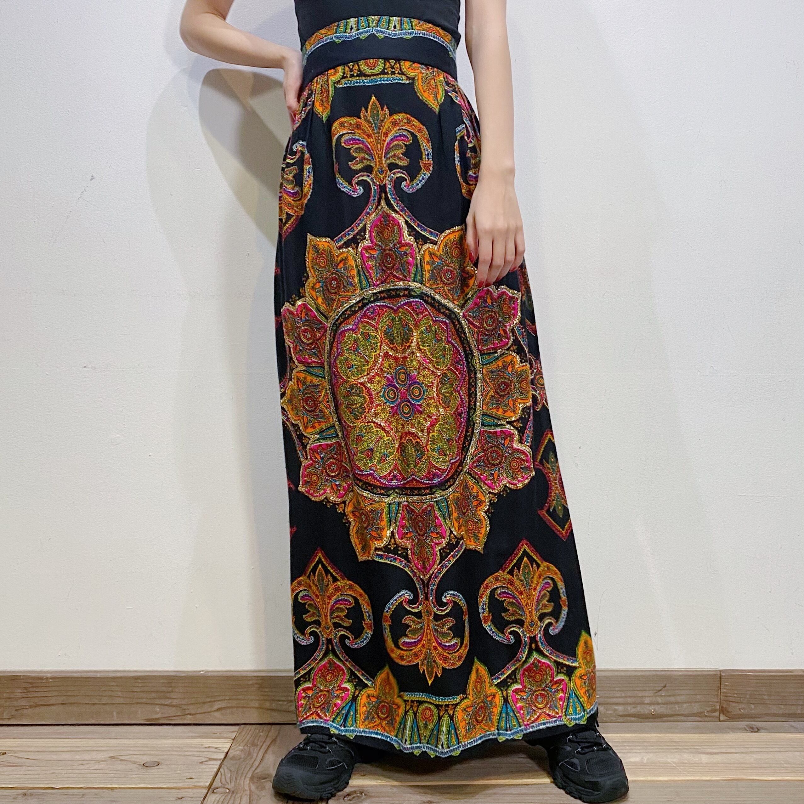 インパクトのあるサイケデリックなテキスタイルが可愛い、60~70年代のロングスカートです。