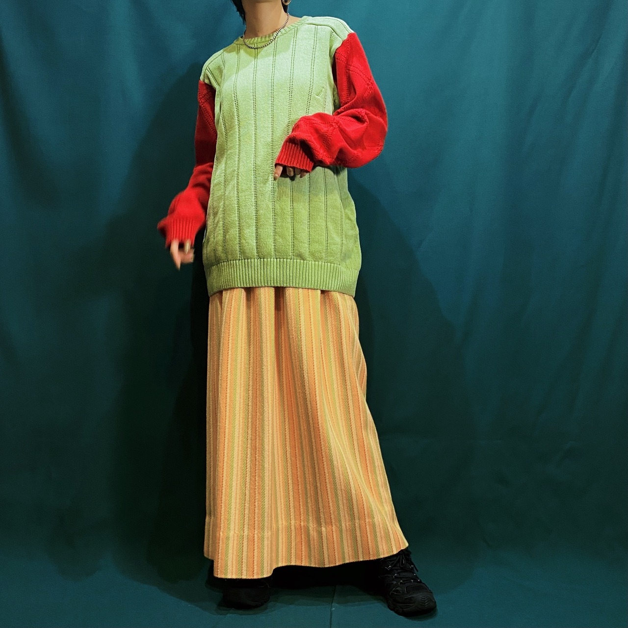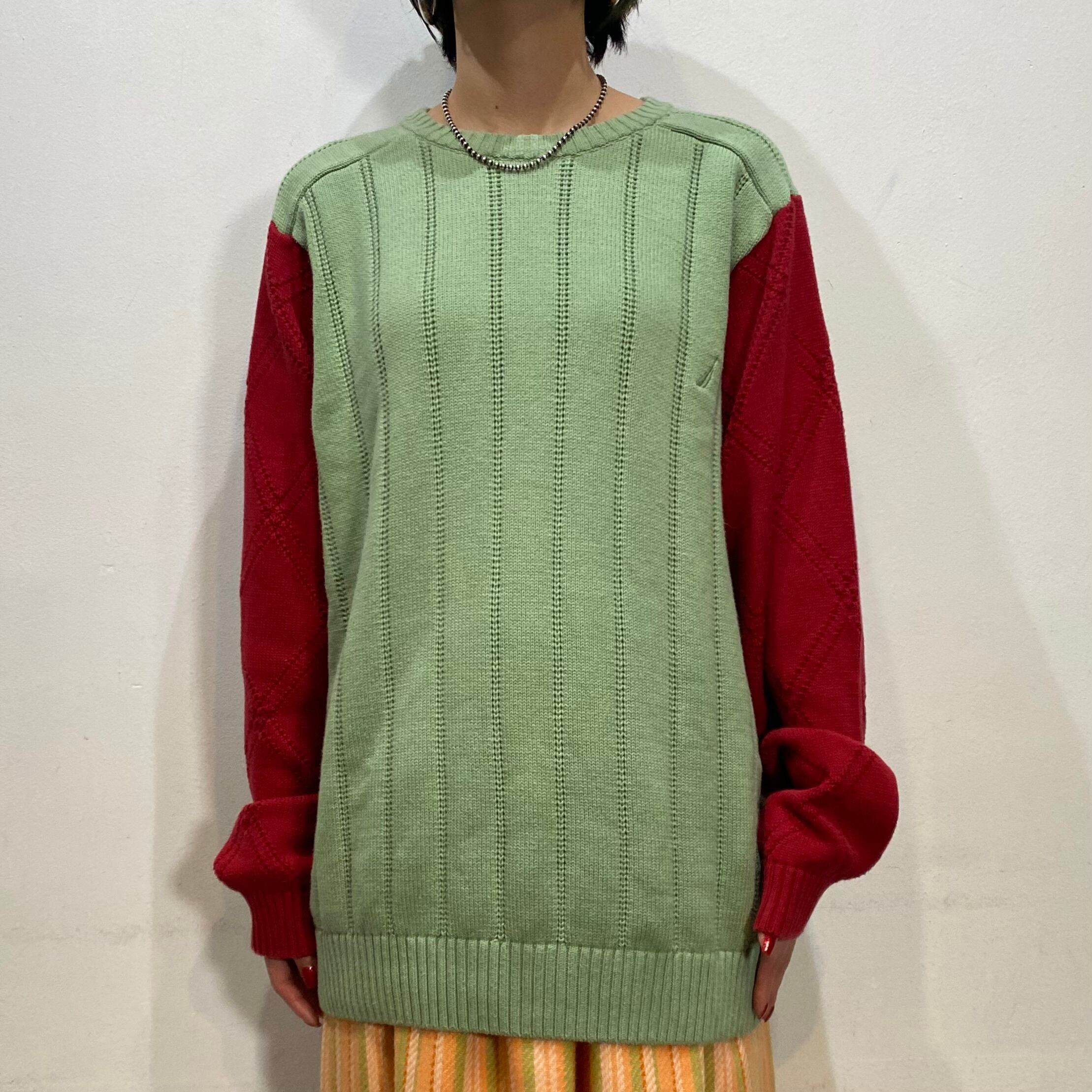 赤と黄緑の切り替えが可愛い、コットンニットセーターです。