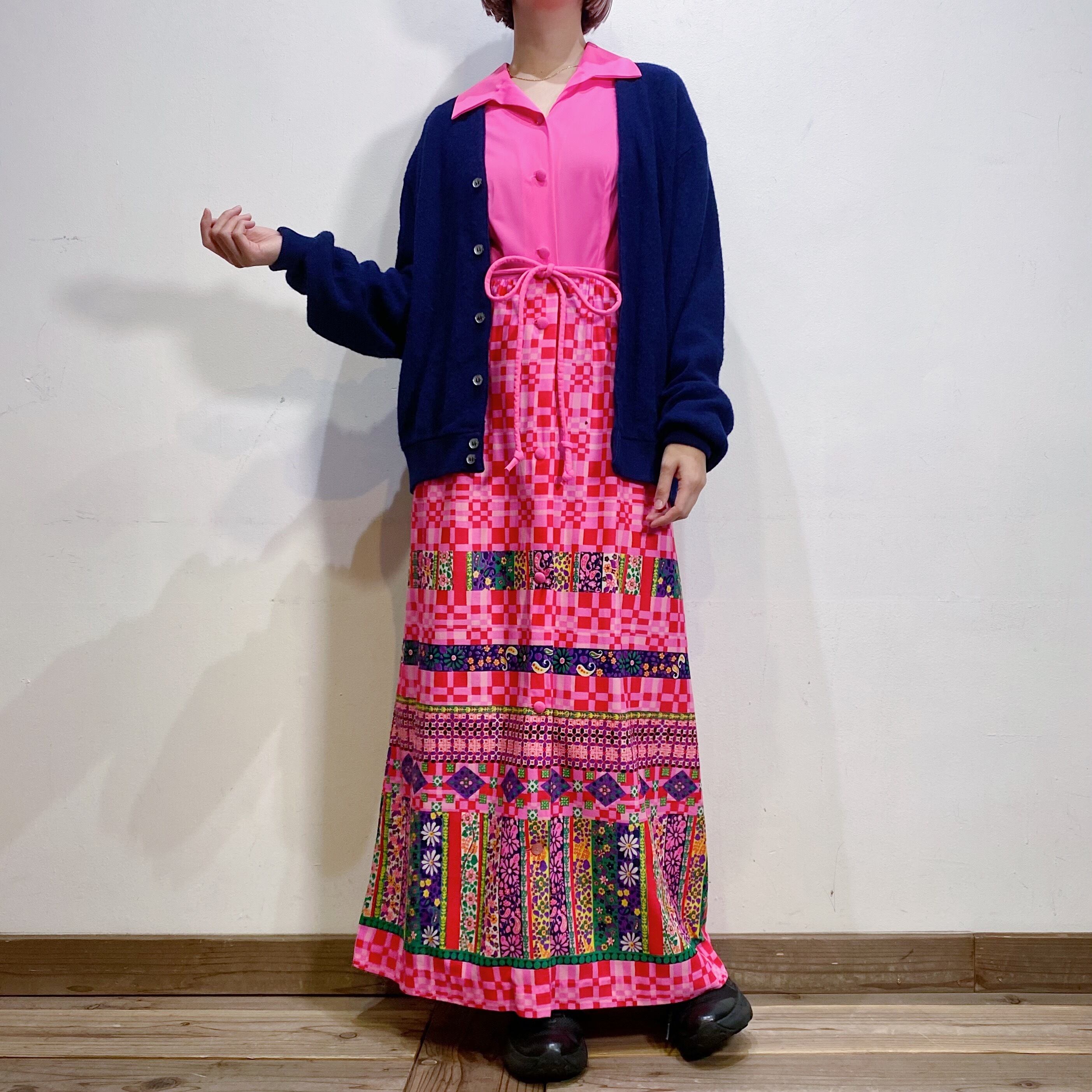 着用写真のように70sワンピースの上から羽織ったり、柄スカートに合わせても良いですね。