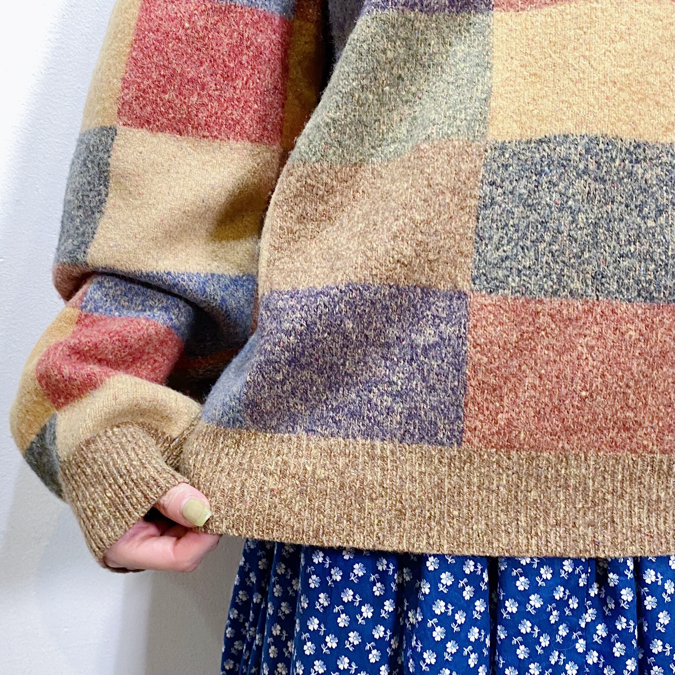 Beige plaid knit sweater