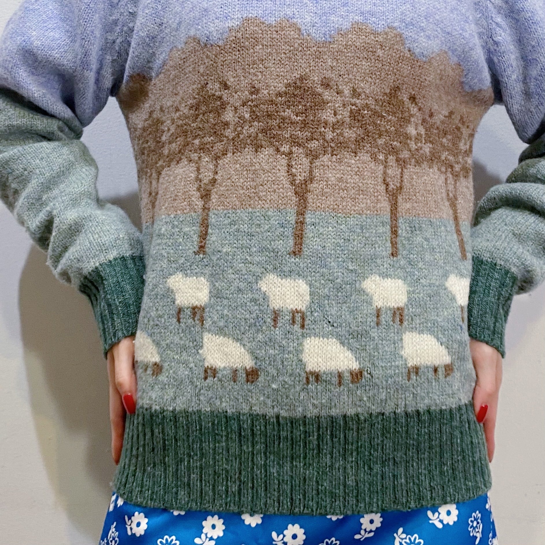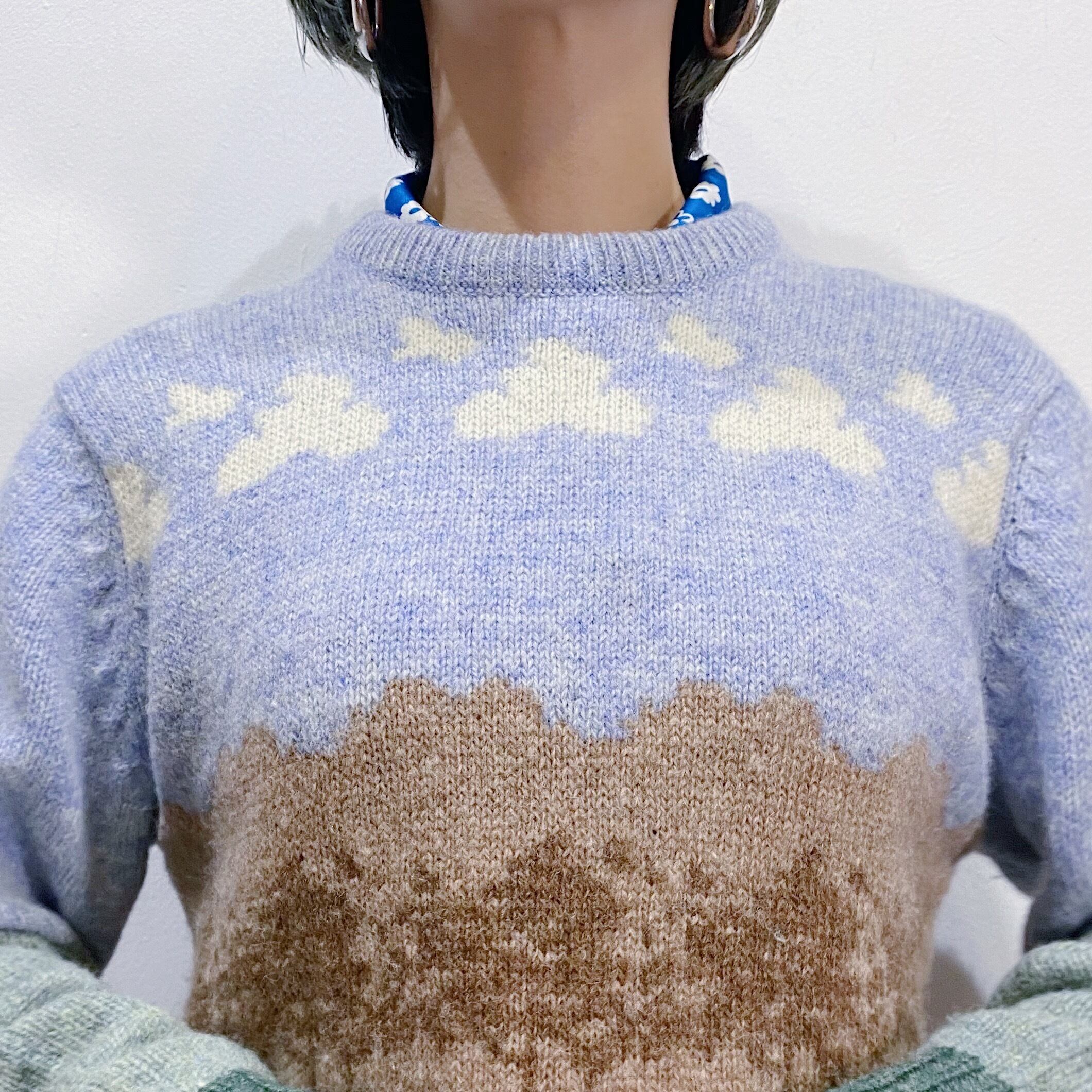 羊たちを放牧している風景が可愛いニットセーターです。