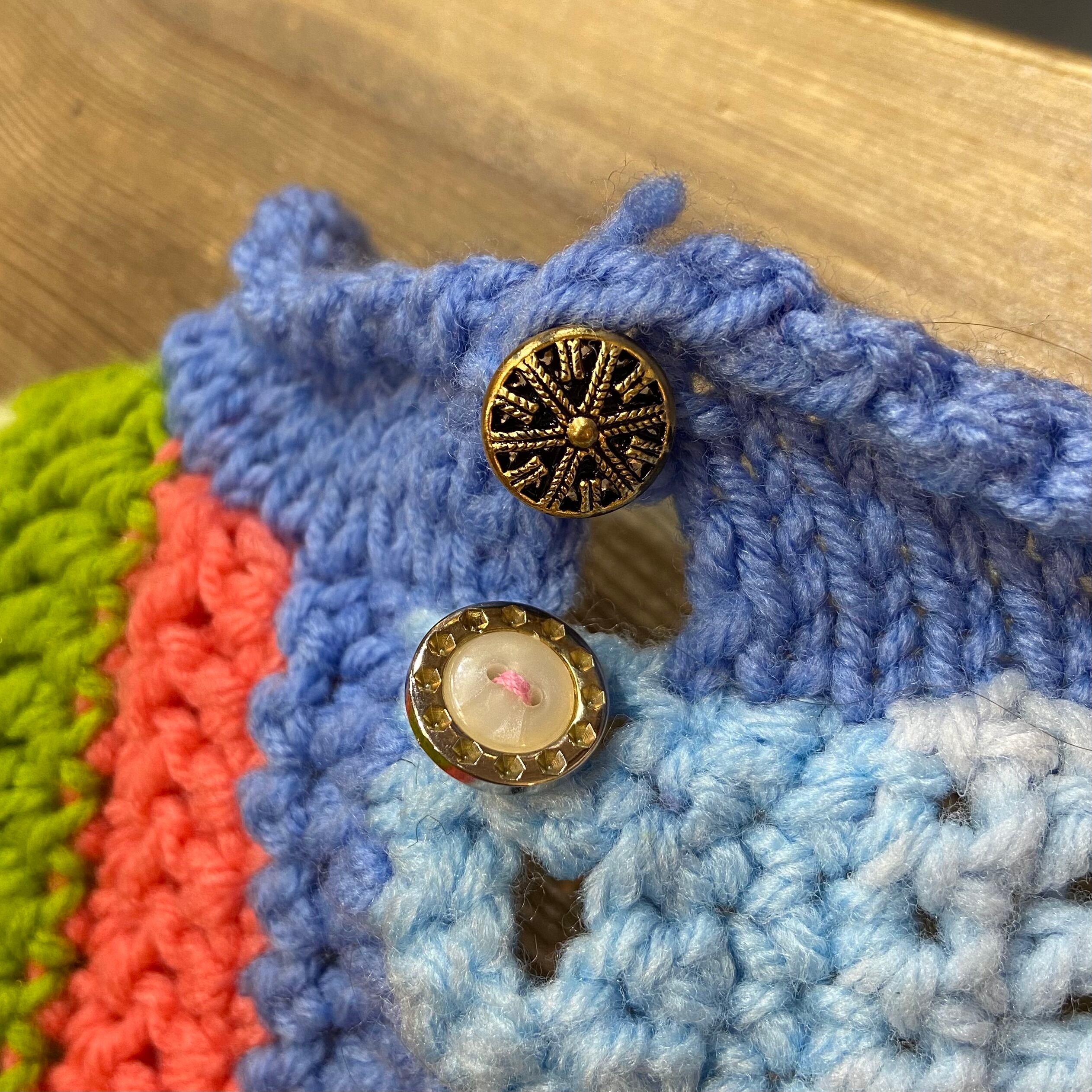 ハンドメイドデザインならではの、上下で異なるボタンが付いているのも楽しいですね。