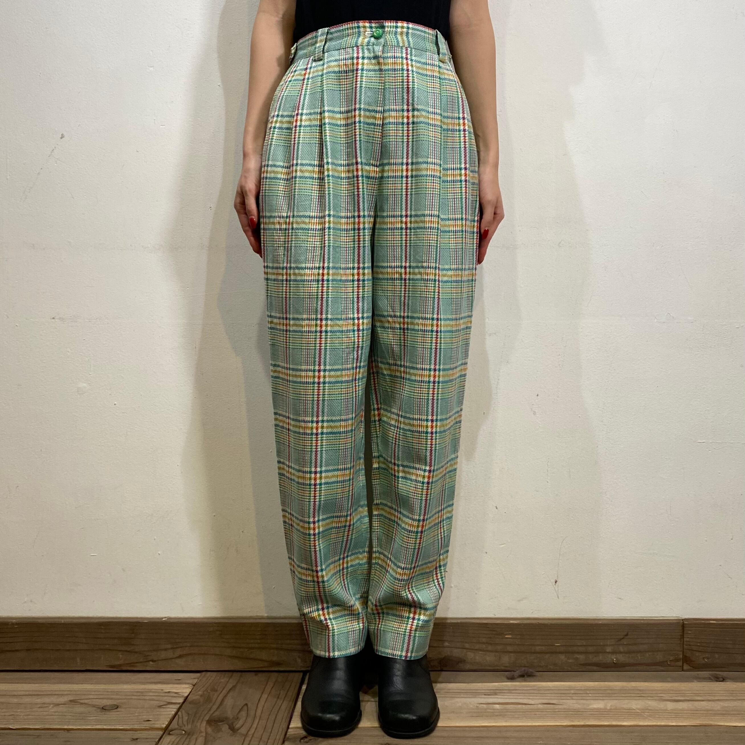 グリーンやイエローのチェック柄が可愛い、90年代頃のテーパードパンツです。